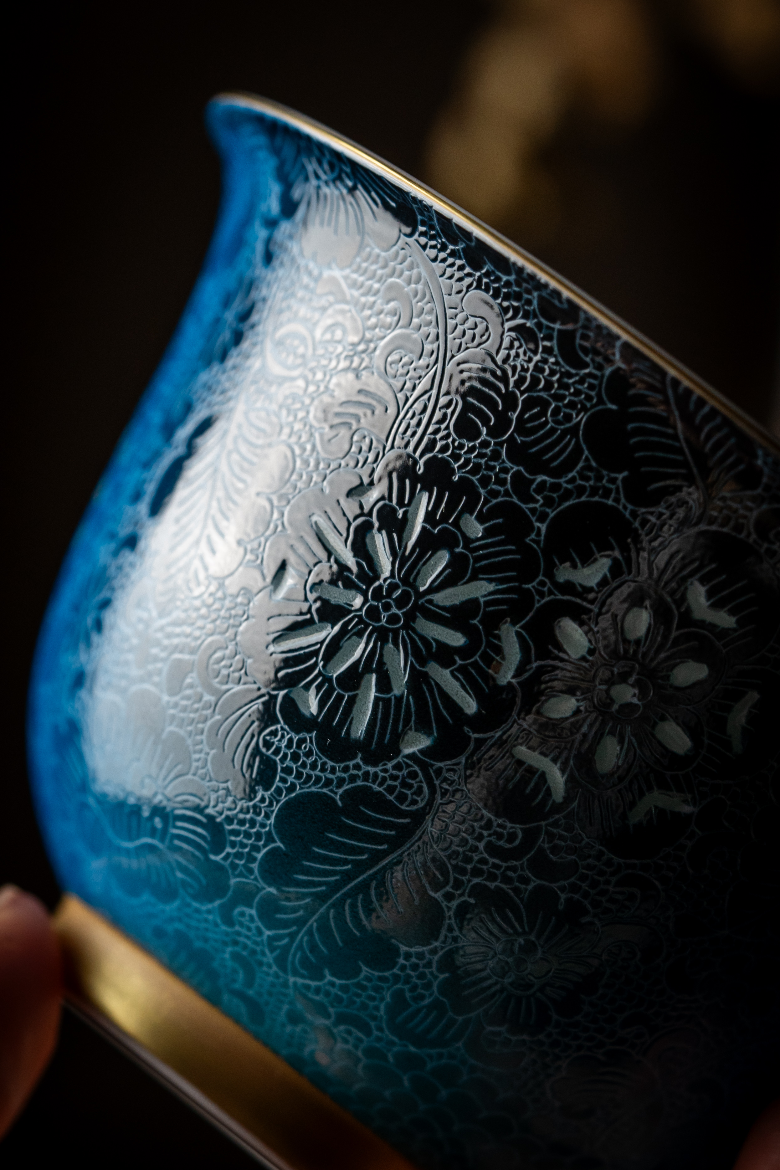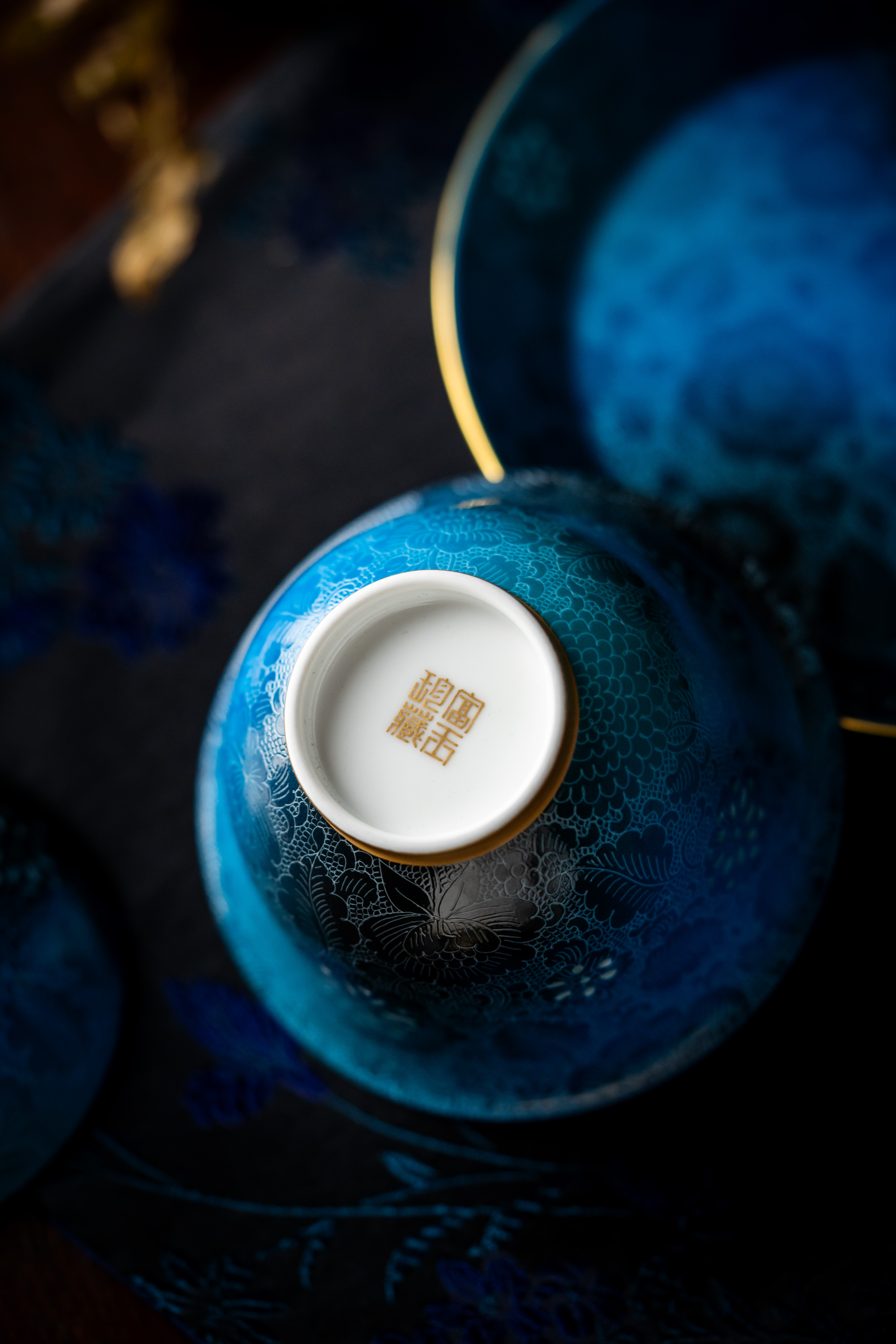 富玉窑 景德镇手工扒花描金 功夫茶具主人杯幽谷听泉万花纹盖碗茶具