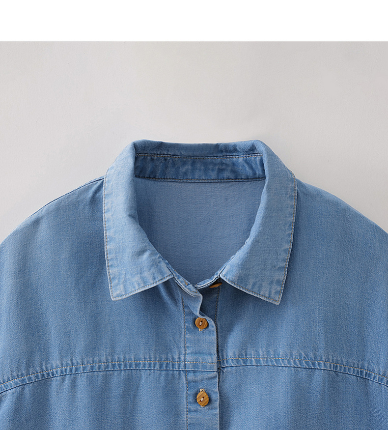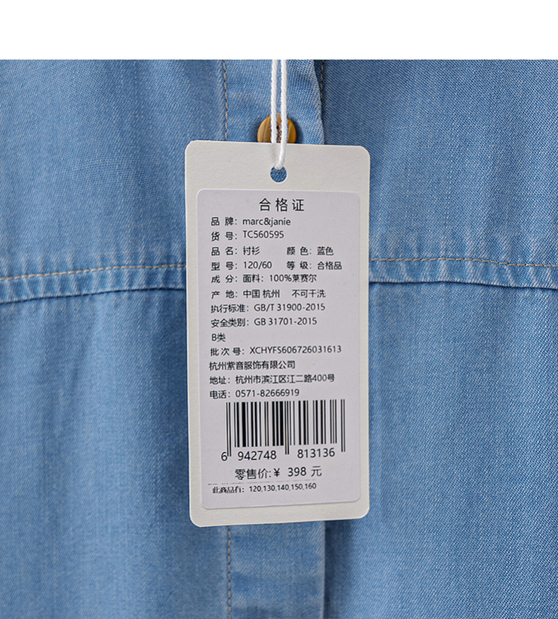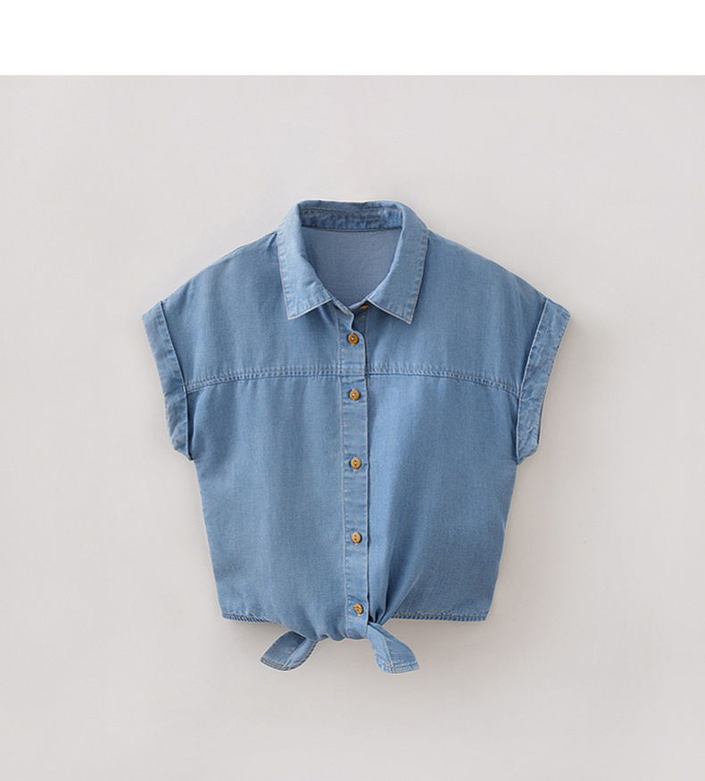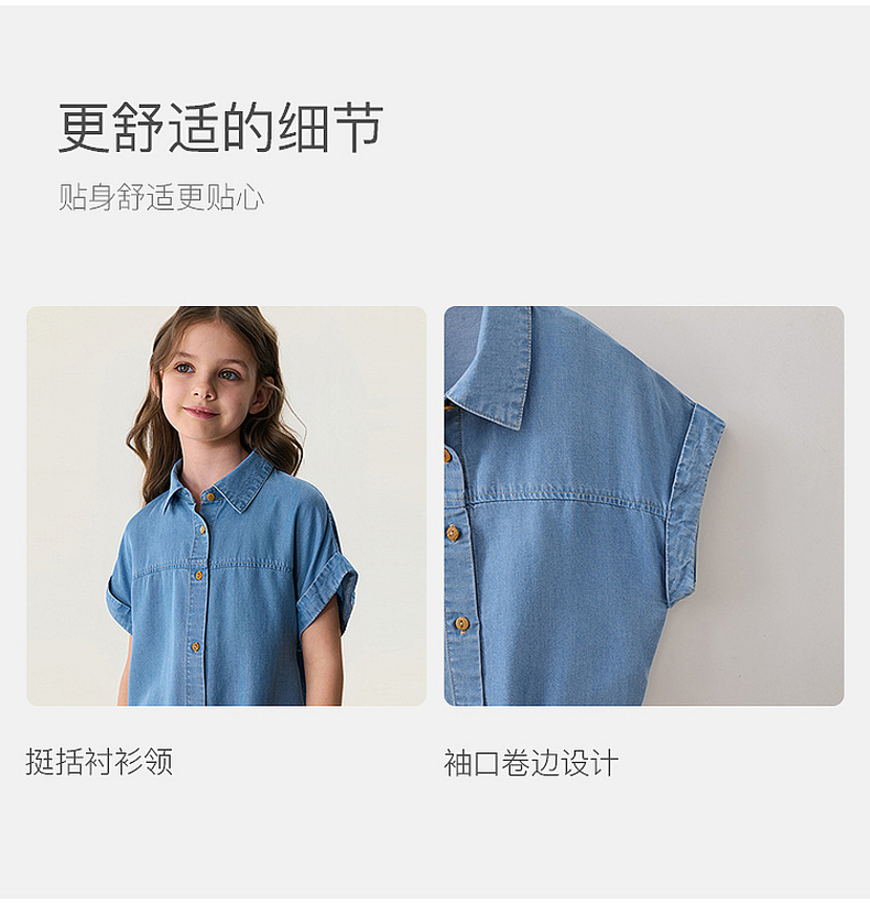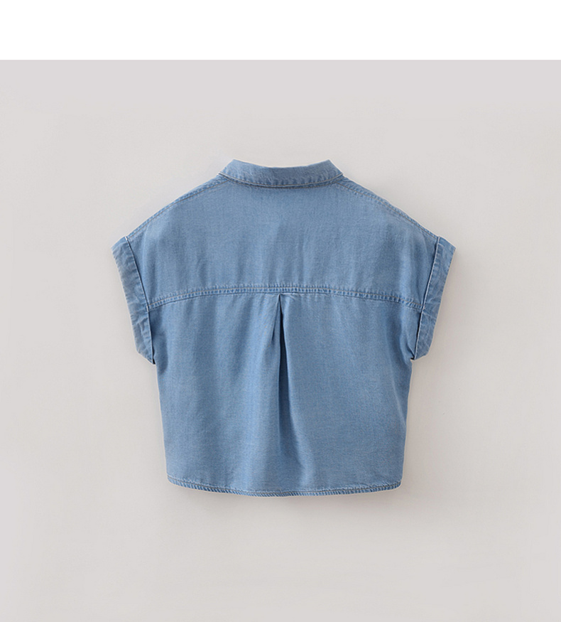 马克珍妮时髦松弛女童扭结牛仔衬衫2026年夏装新款560595