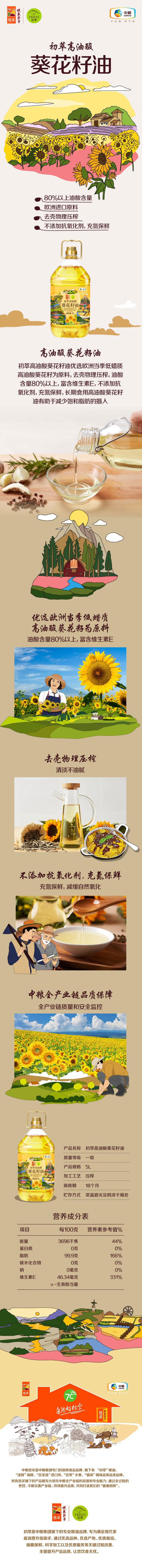 中粮初萃高油酸葵花籽油5L