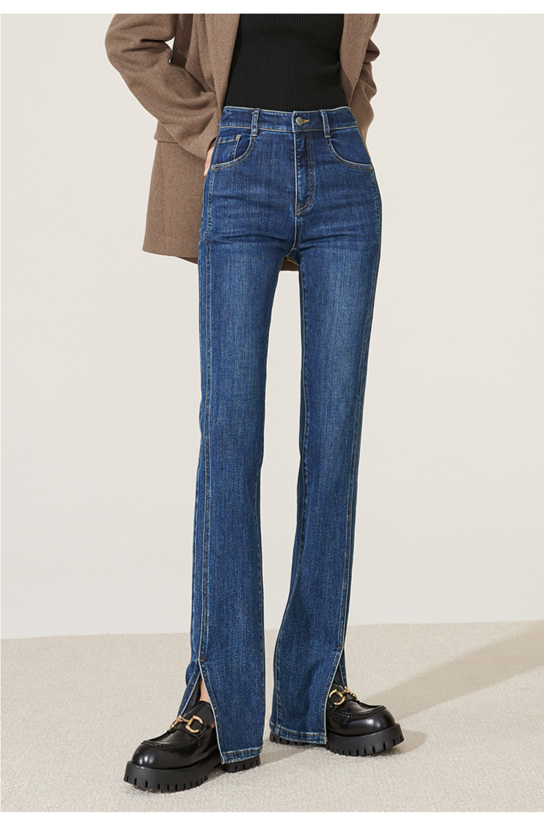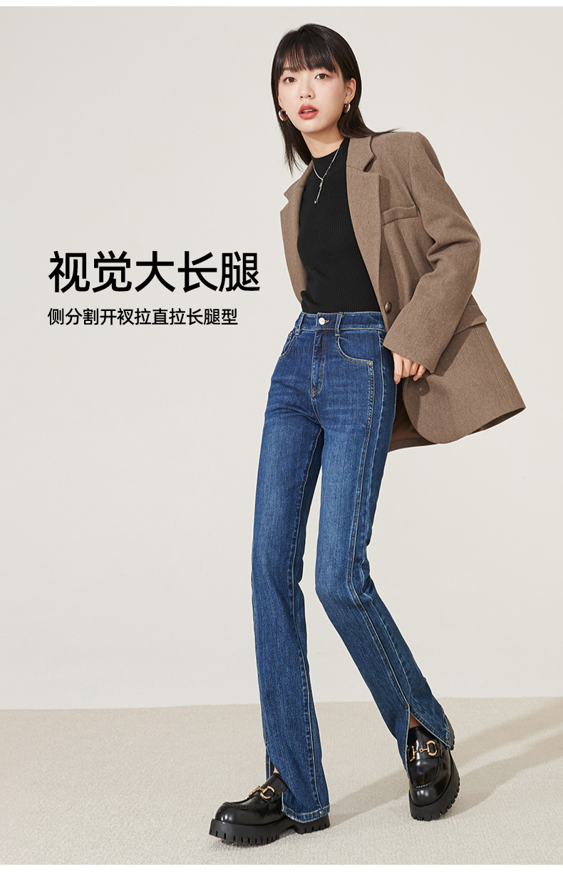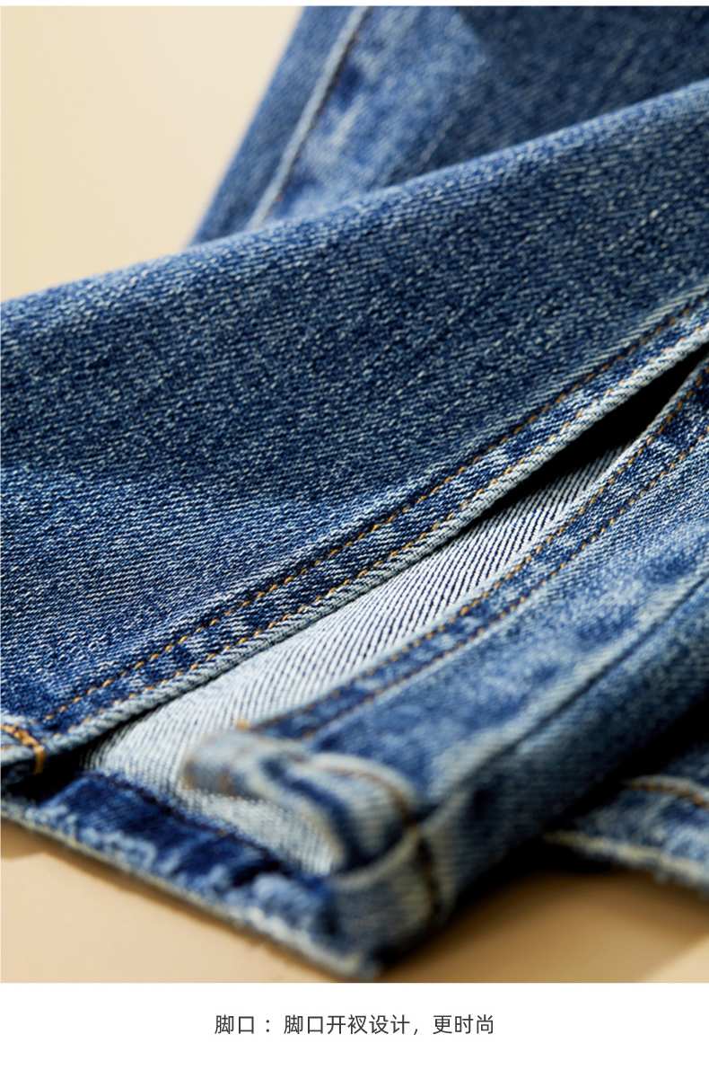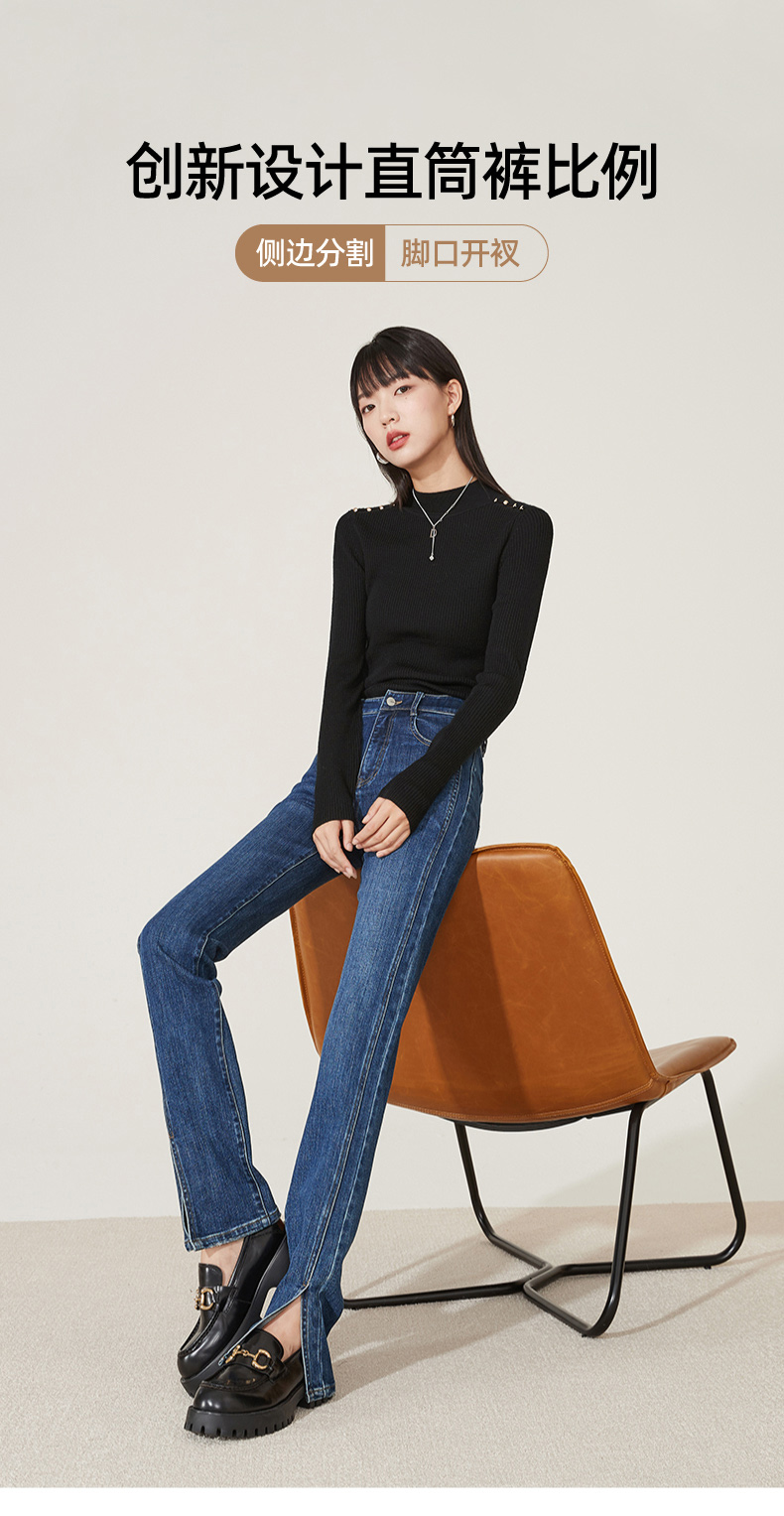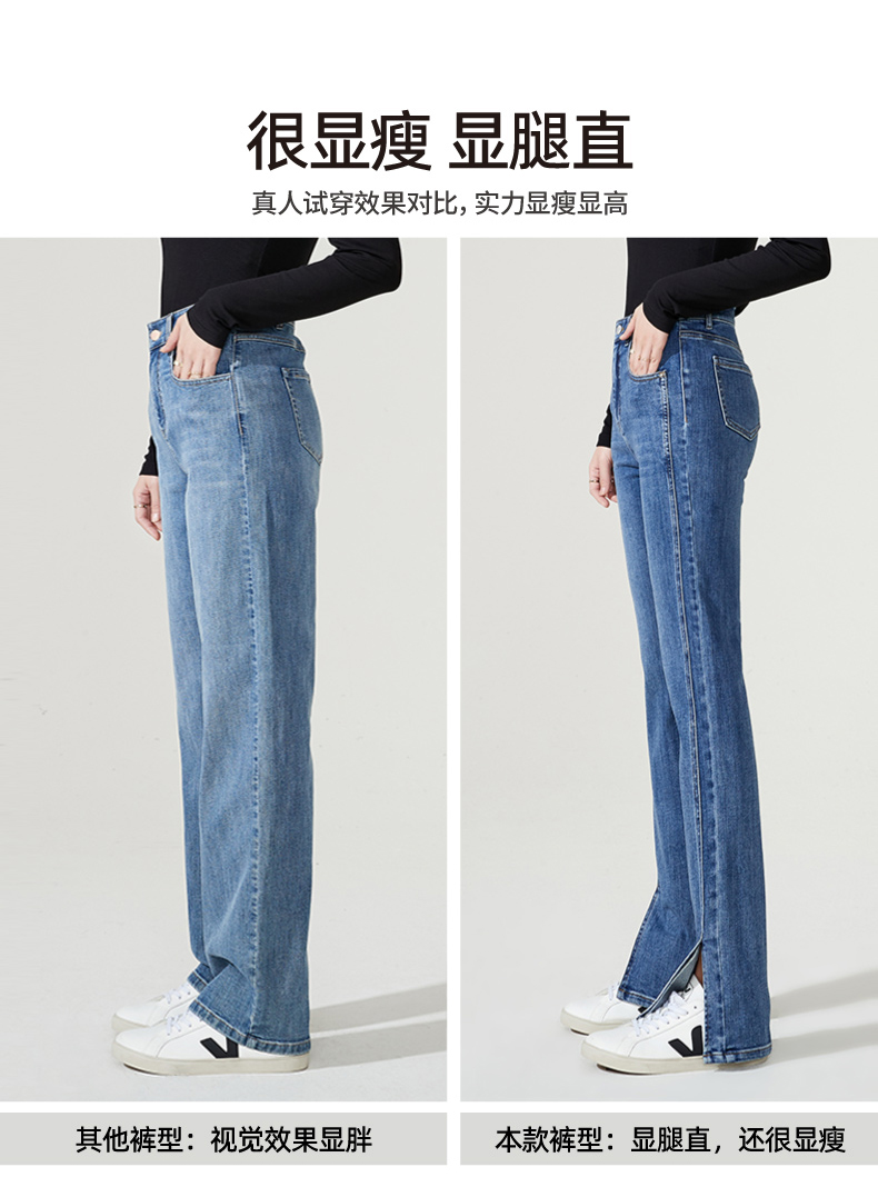 逸阳开叉牛仔裤女2023年秋季新款高腰显瘦直筒牛仔裤女烟管裤9136