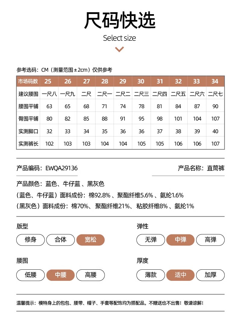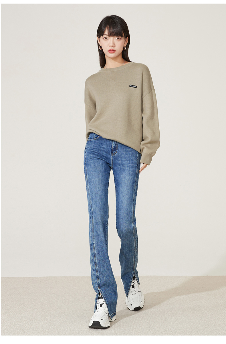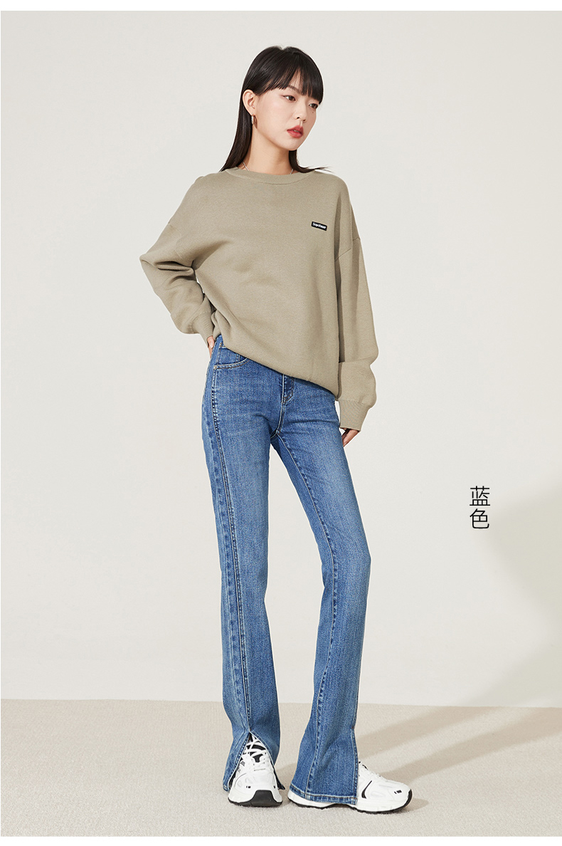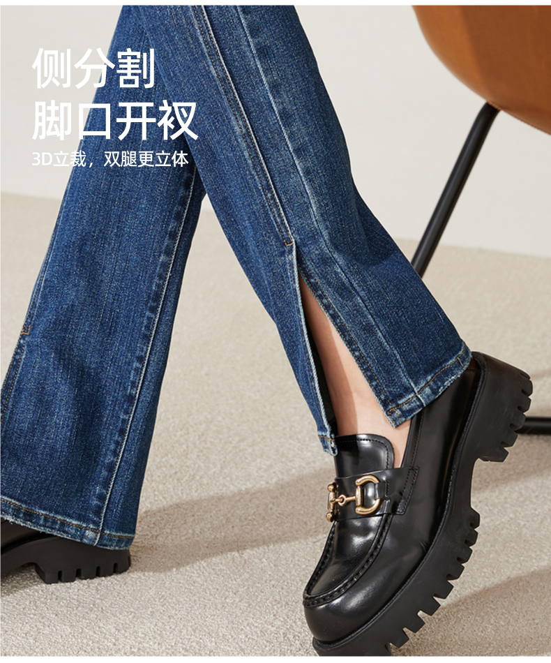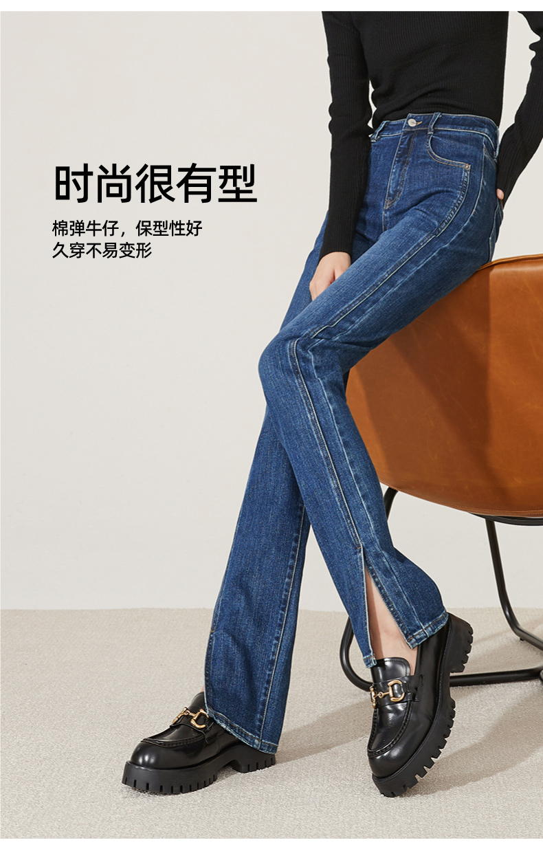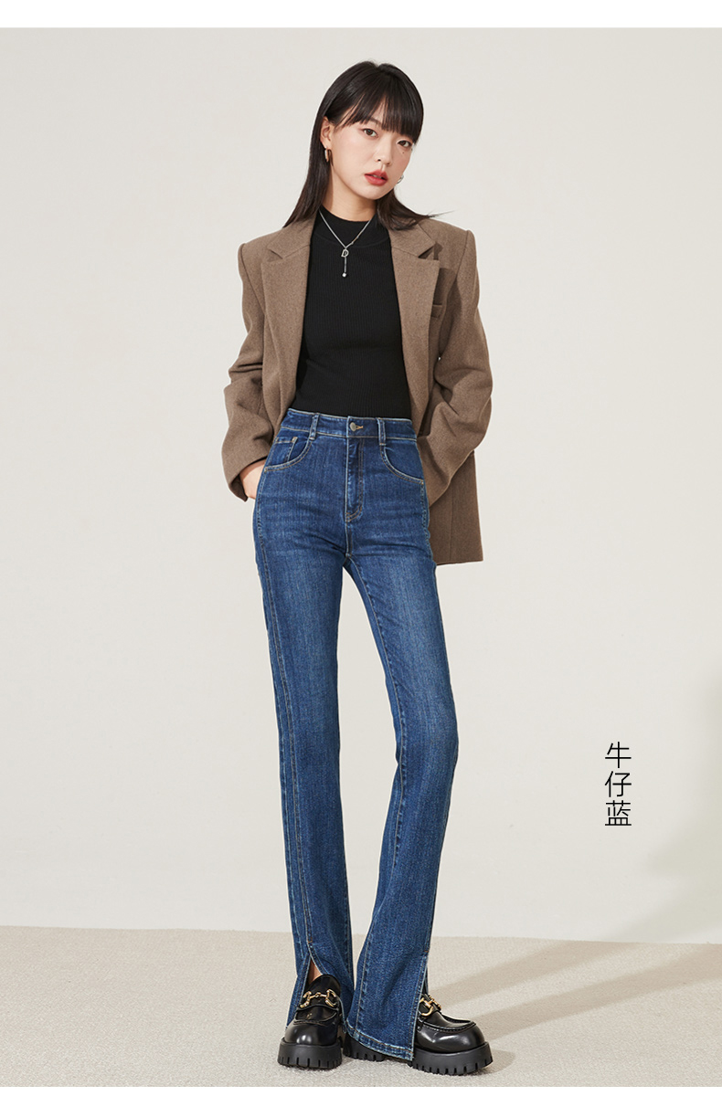 逸阳开叉牛仔裤女2023年秋季新款高腰显瘦直筒牛仔裤女烟管裤9136