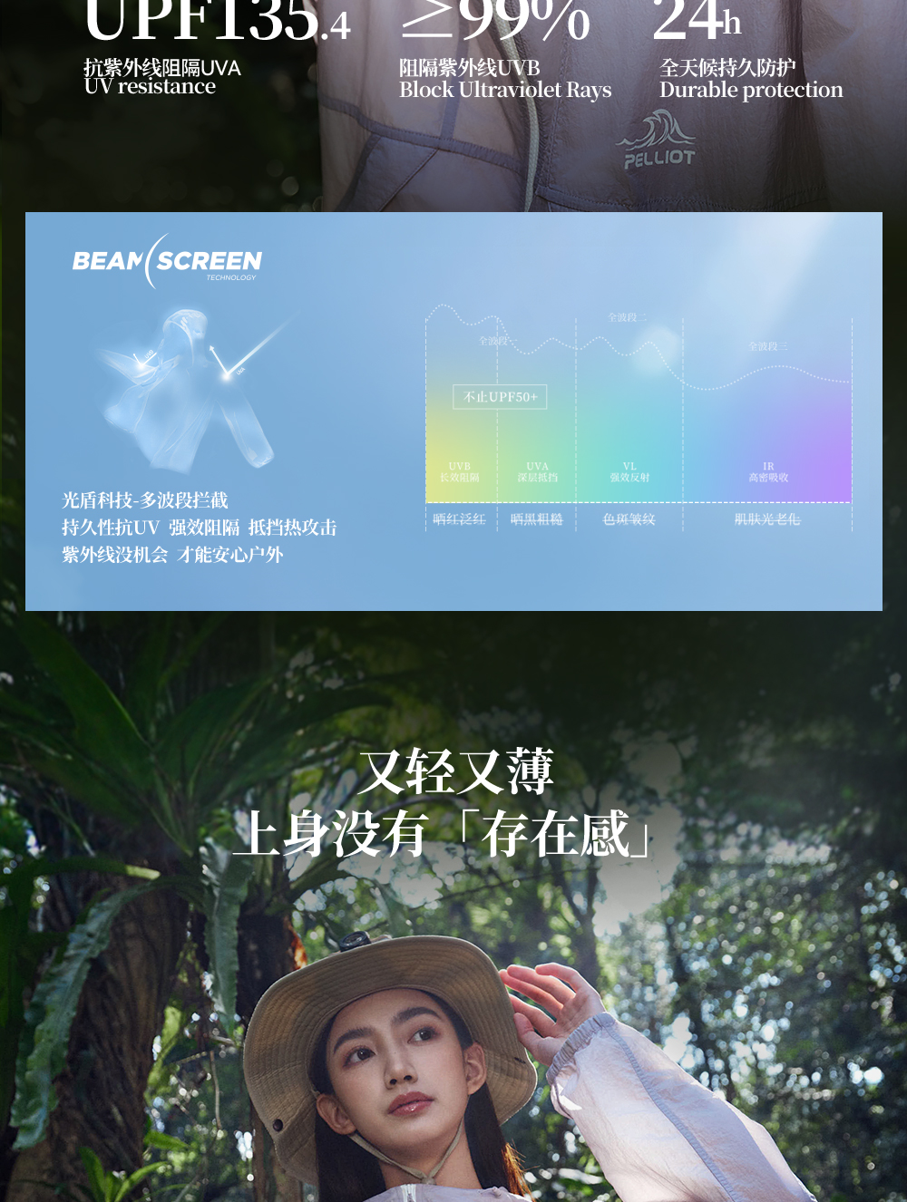 【小森林2.0】伯希和凉感防晒衣女新款户外透气宽松皮肤衣外套男