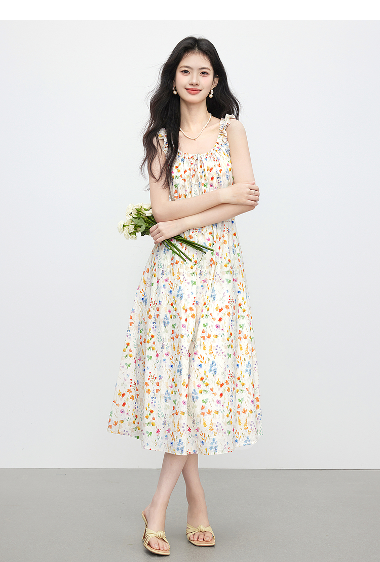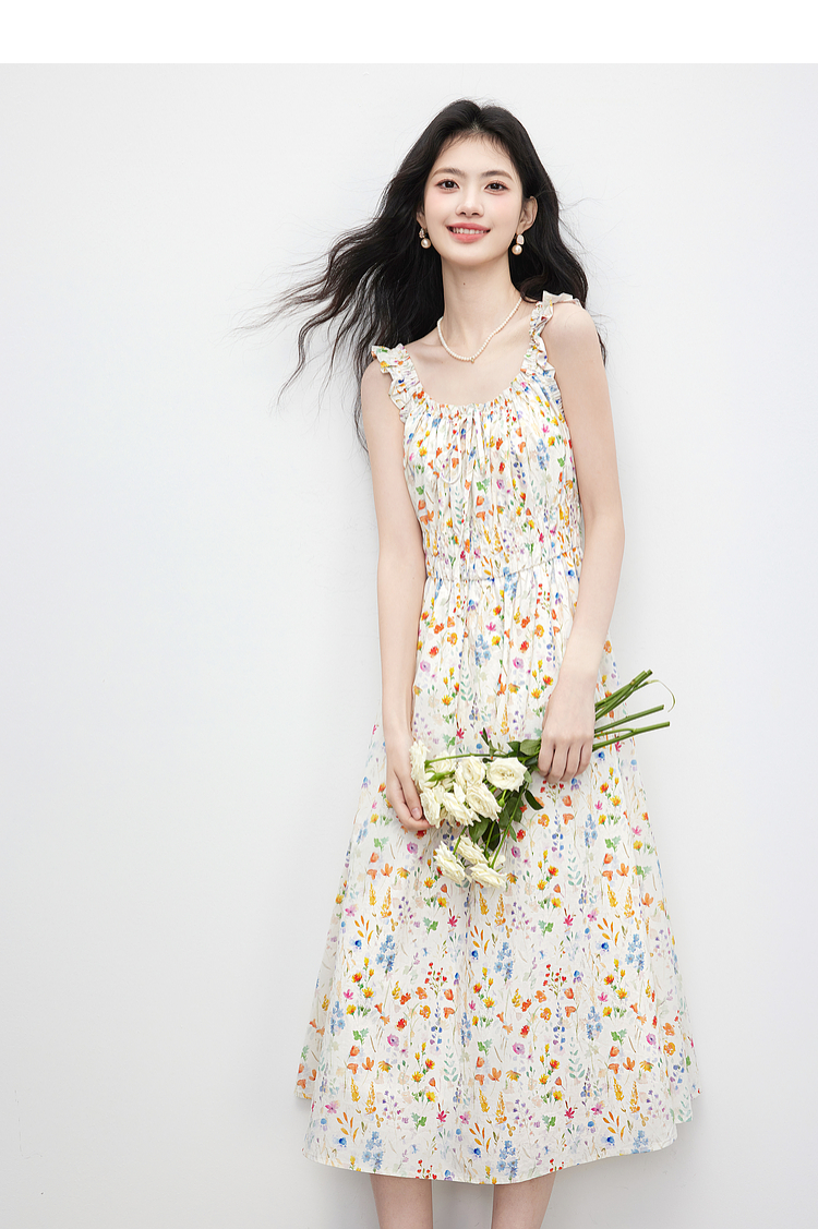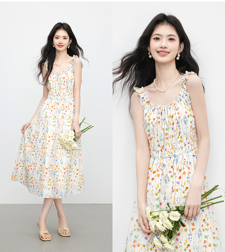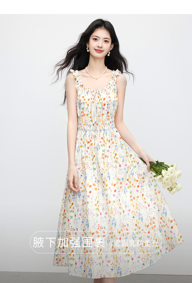 【专属特价】熙世界法式碎花吊带连衣裙女夏季新款收腰显瘦甜美气质度假风长裙