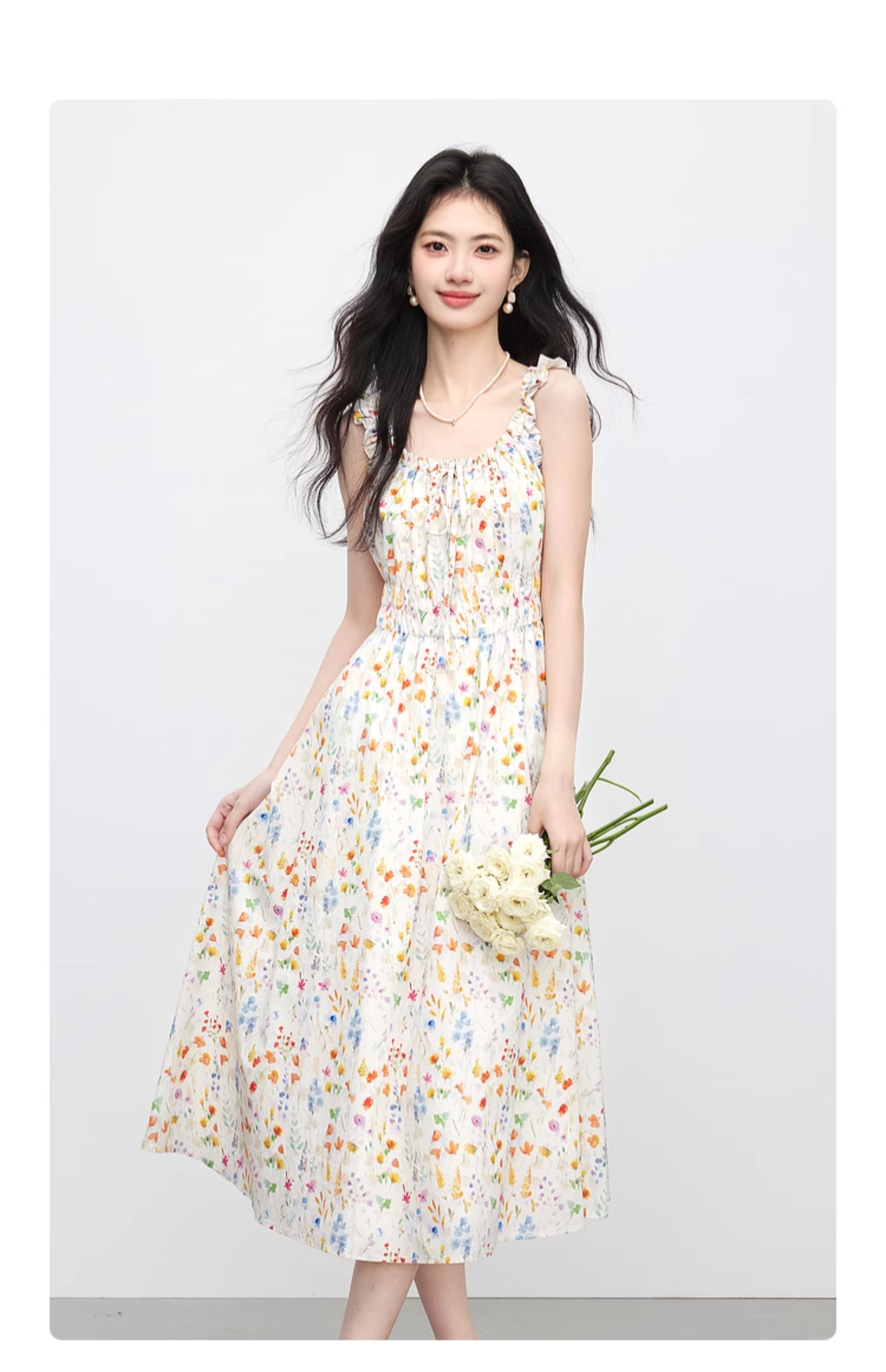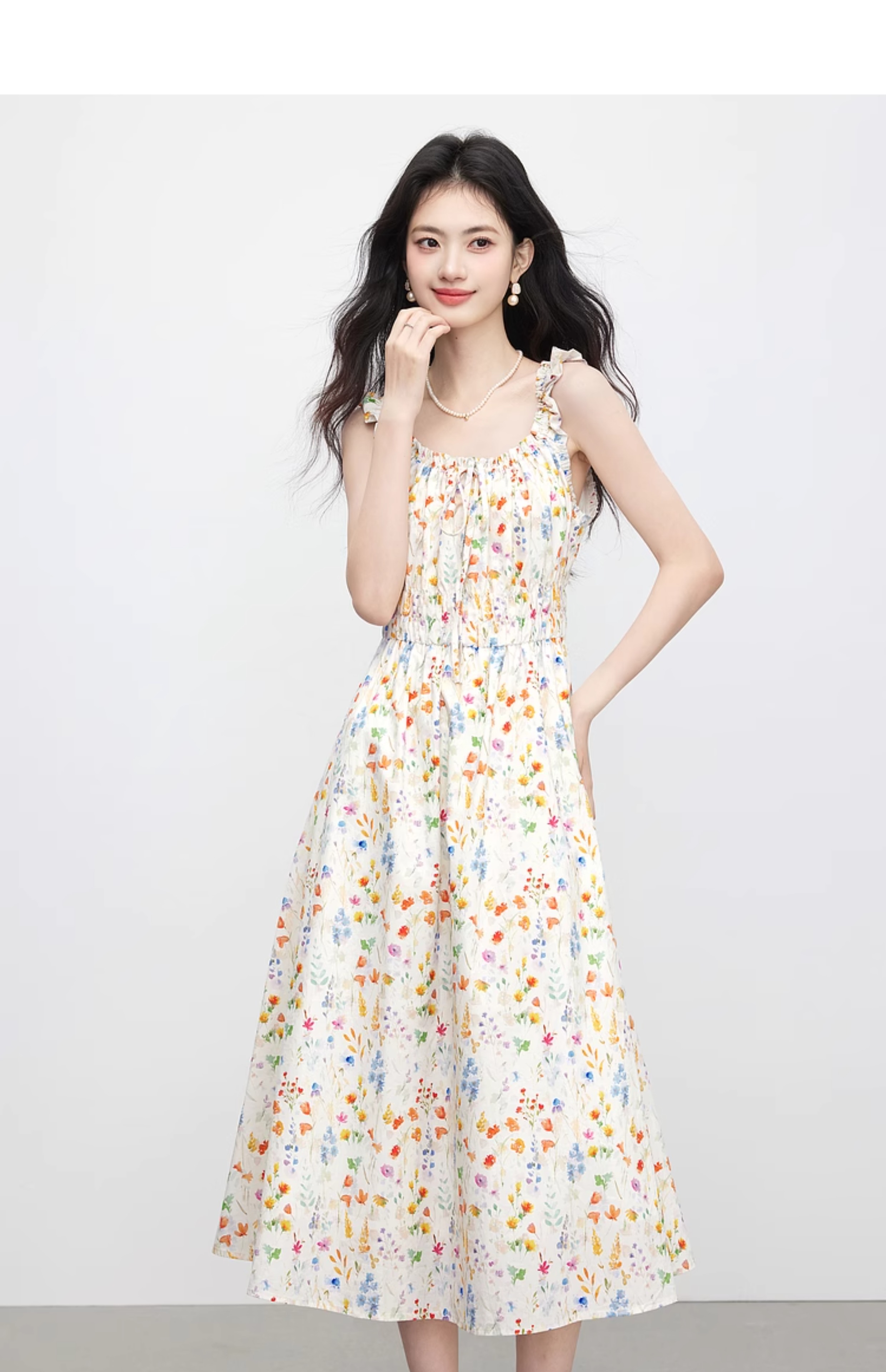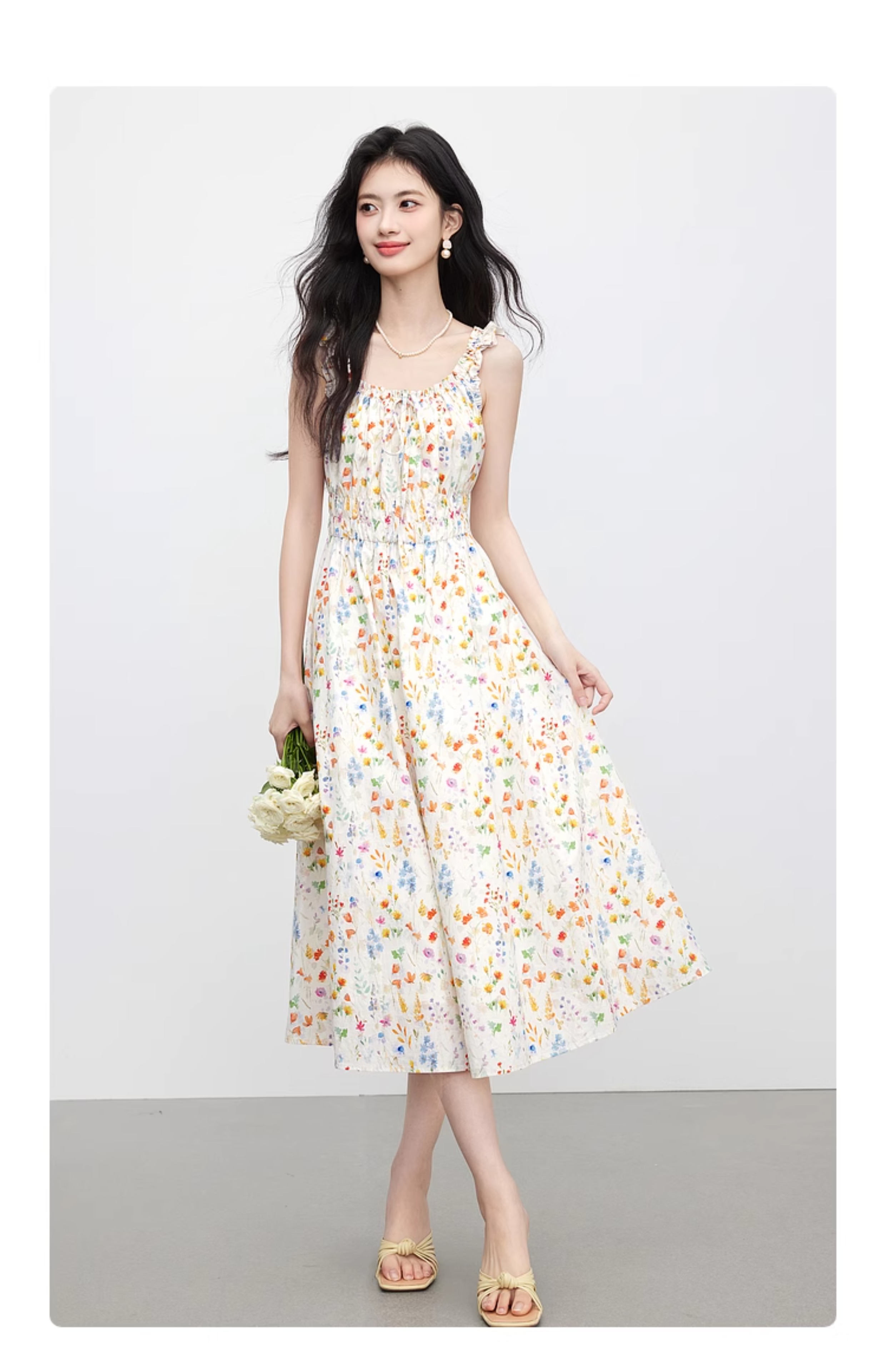 【专属特价】熙世界法式碎花吊带连衣裙女夏季新款收腰显瘦甜美气质度假风长裙
