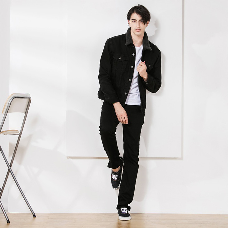 Levi's李维斯男式 工装外套黑/深灰色全棉牛仔布+羔羊绒内绒加厚保暖毛领牛仔夹克 705980032JPY带授权招加盟代理