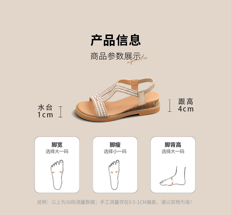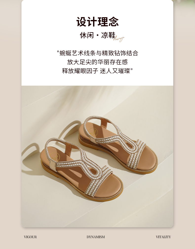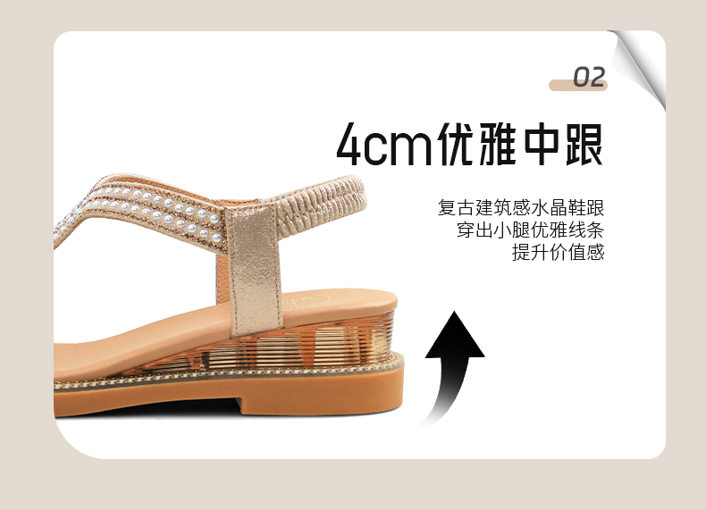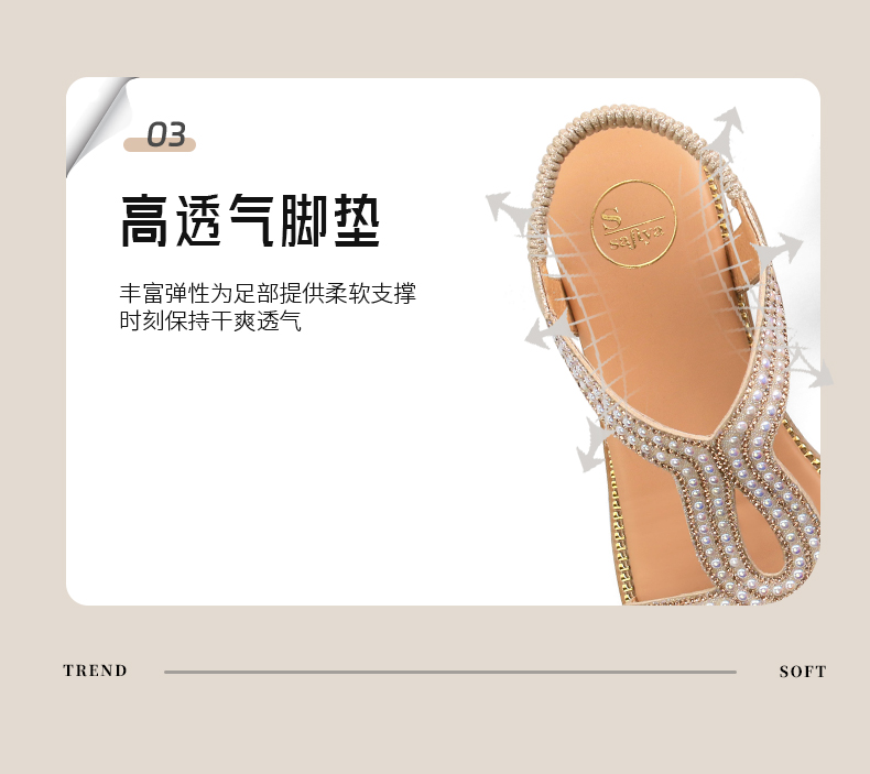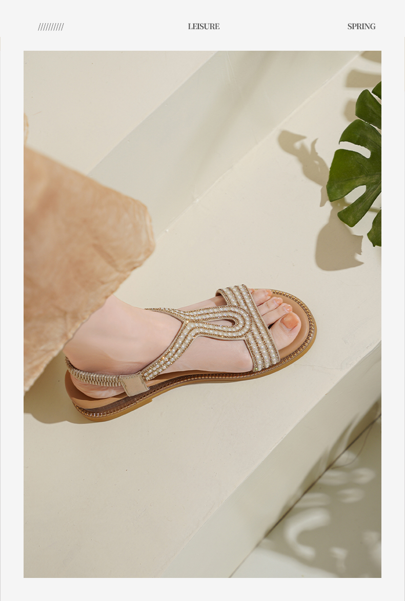 Safiya/索菲娅2025波西米亚闪钻珍珠露趾休闲坡跟罗马仙女鞋SFD2115349