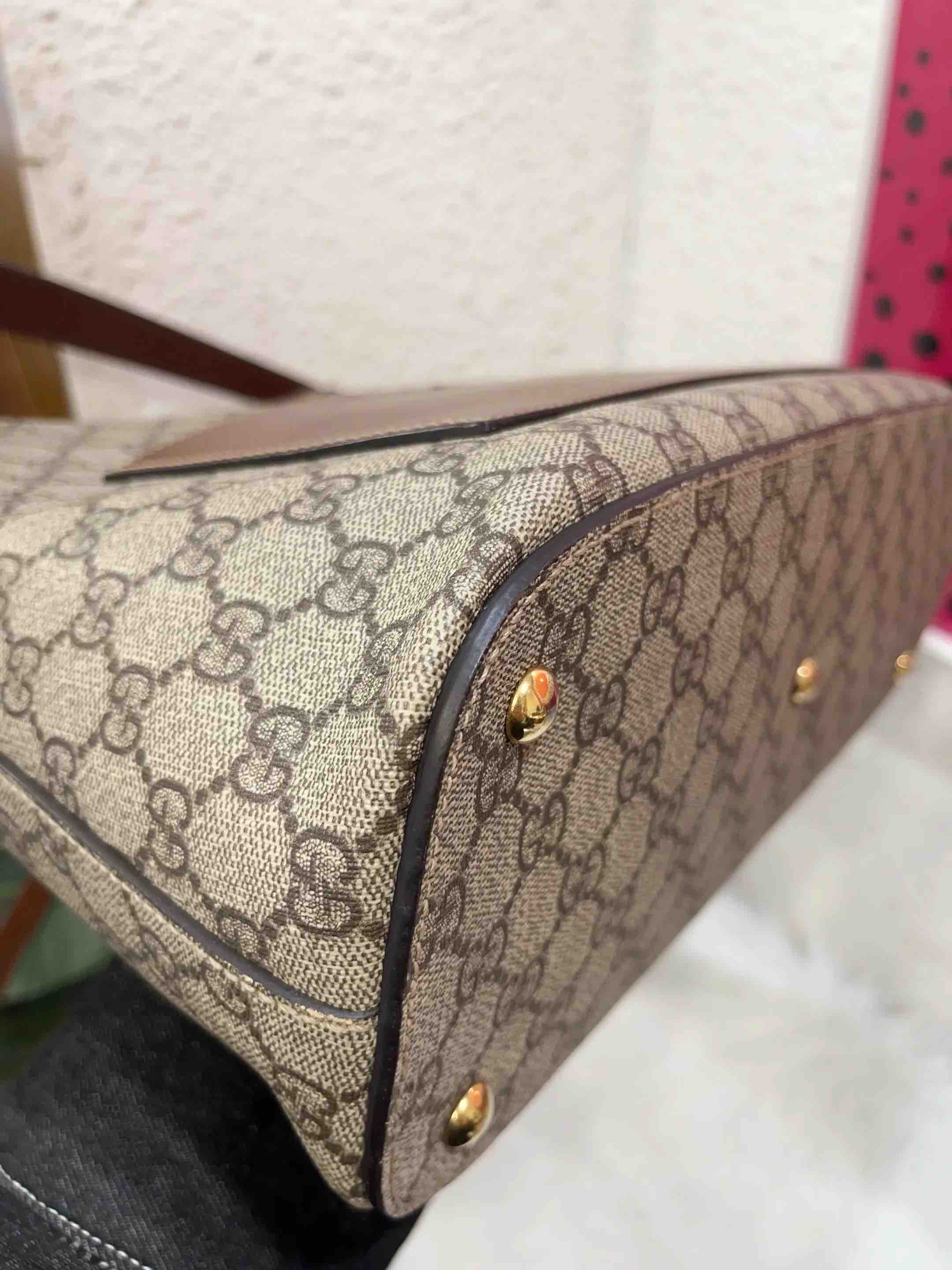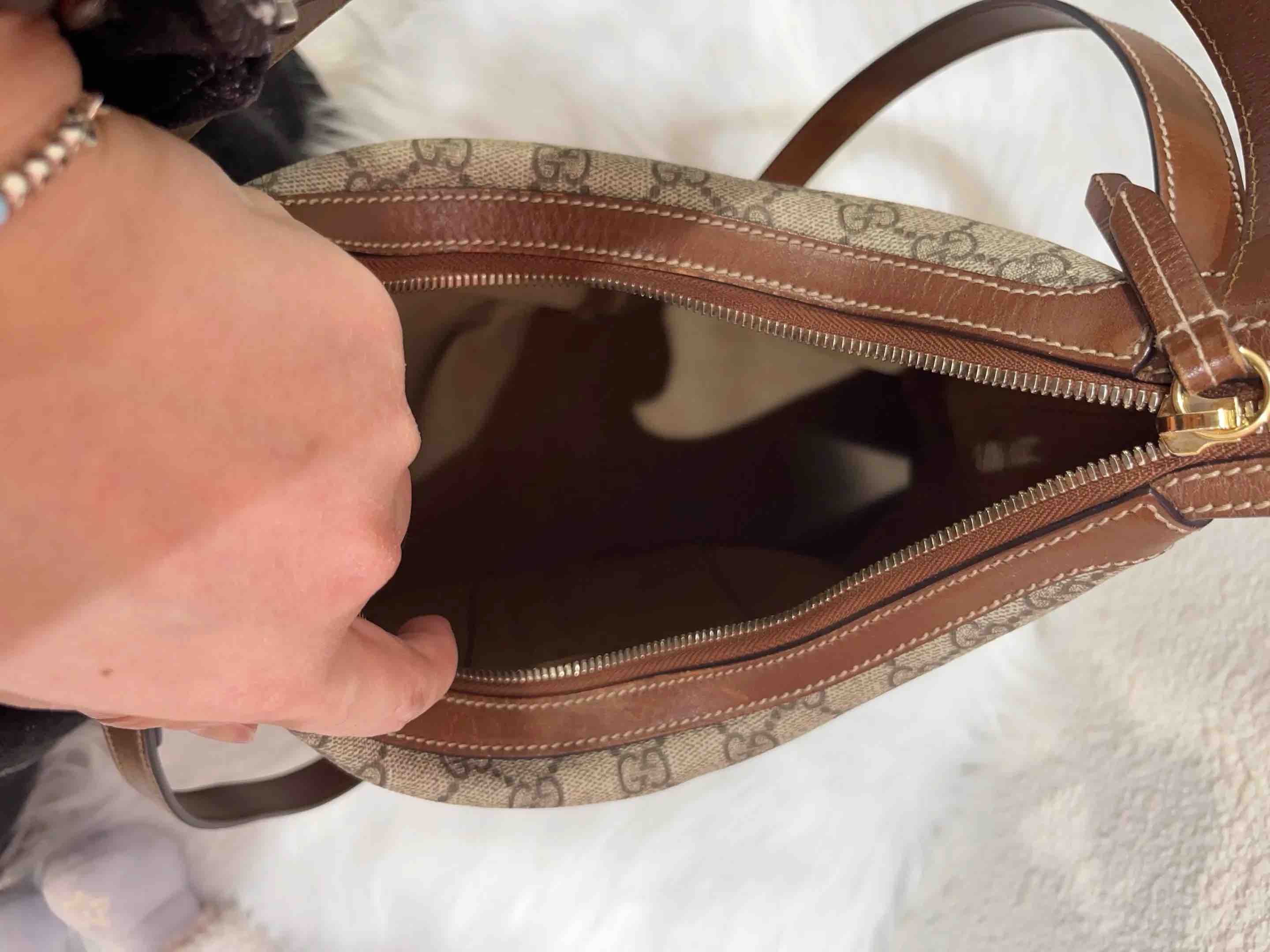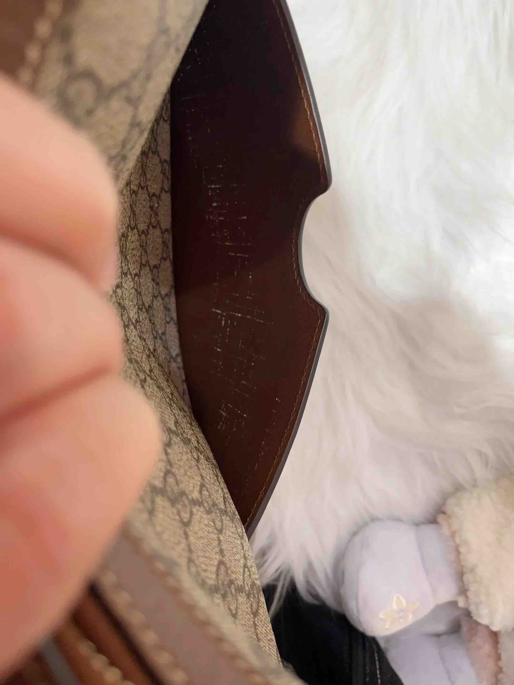 【商品详情】正品二手 Gucci Hobo 老花拼皮 棕色 中号 单肩包🍎95新 33×25 配件:肩带。包口配皮正常使用感。复古百搭 容量充足