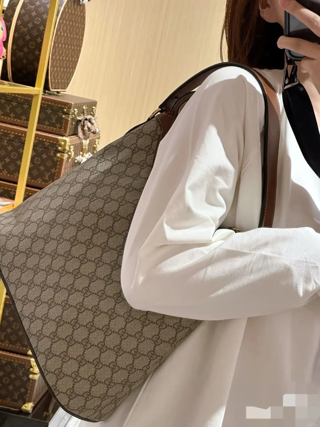 Gucci Hobo 老花拼皮 棕色 中号 单肩包