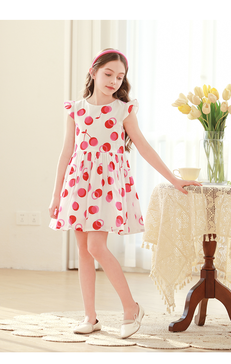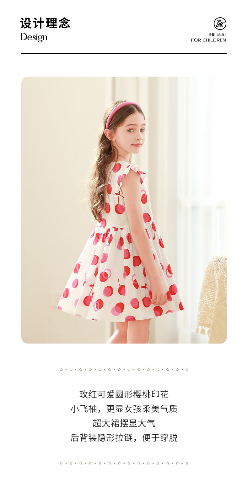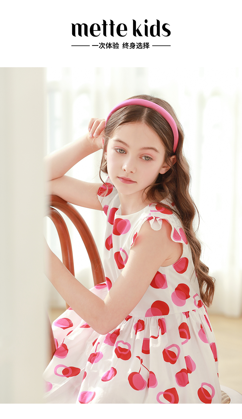 mettekids女童连衣裙2024夏季新款儿童公主裙女孩小飞袖纯棉裙子