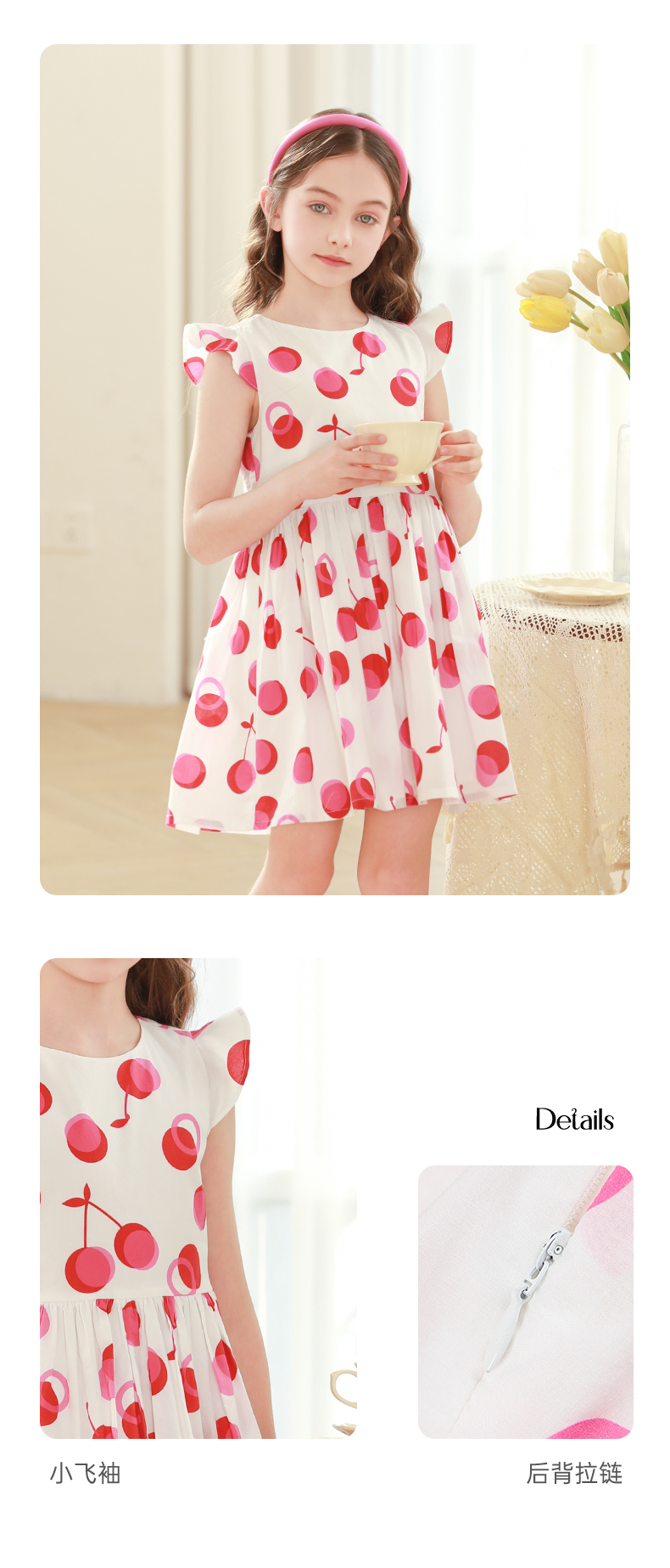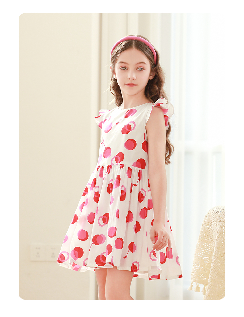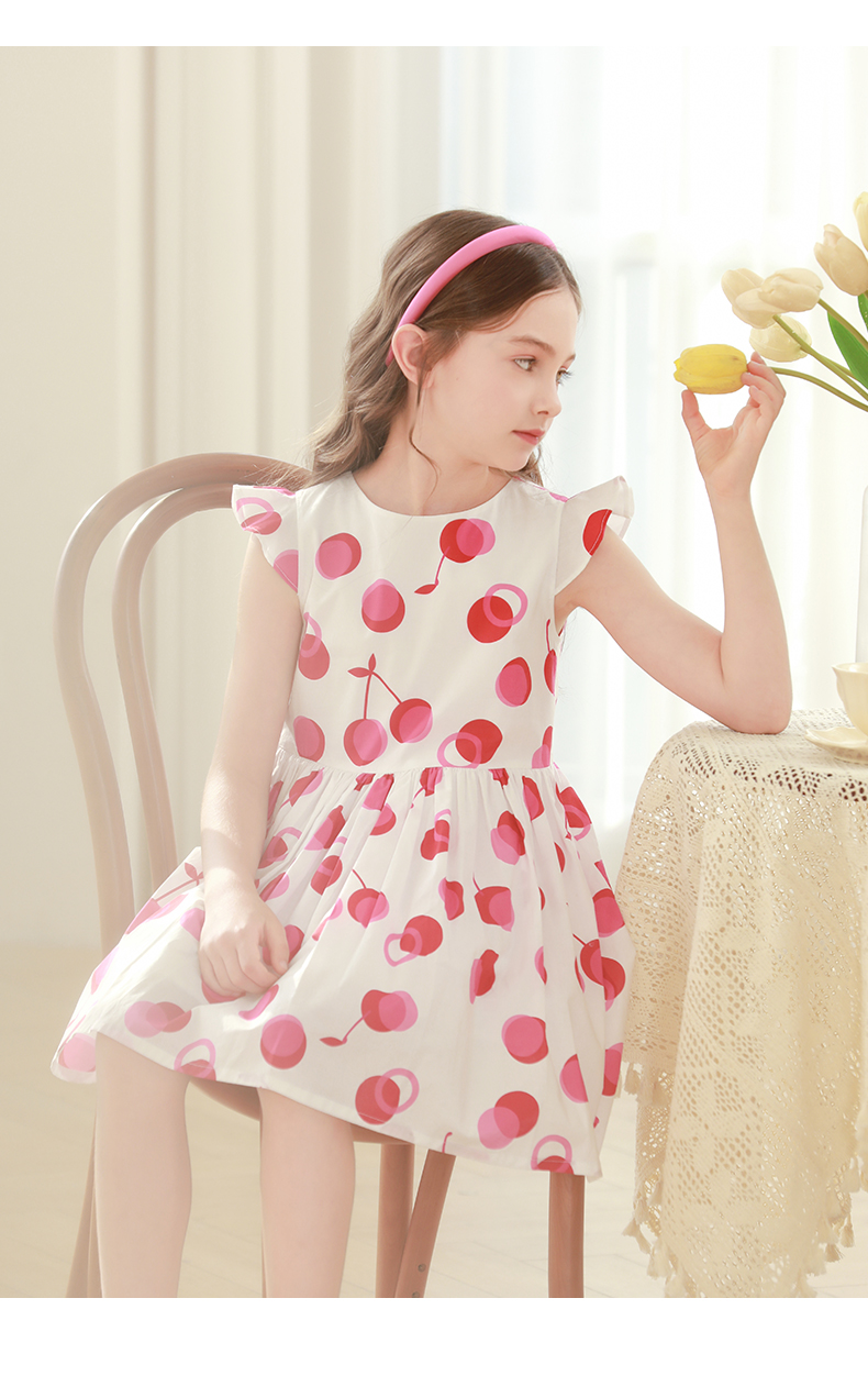 mettekids女童连衣裙2024夏季新款儿童公主裙女孩小飞袖纯棉裙子