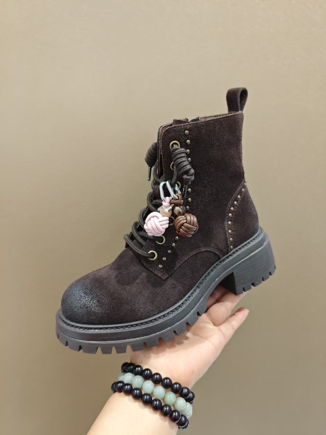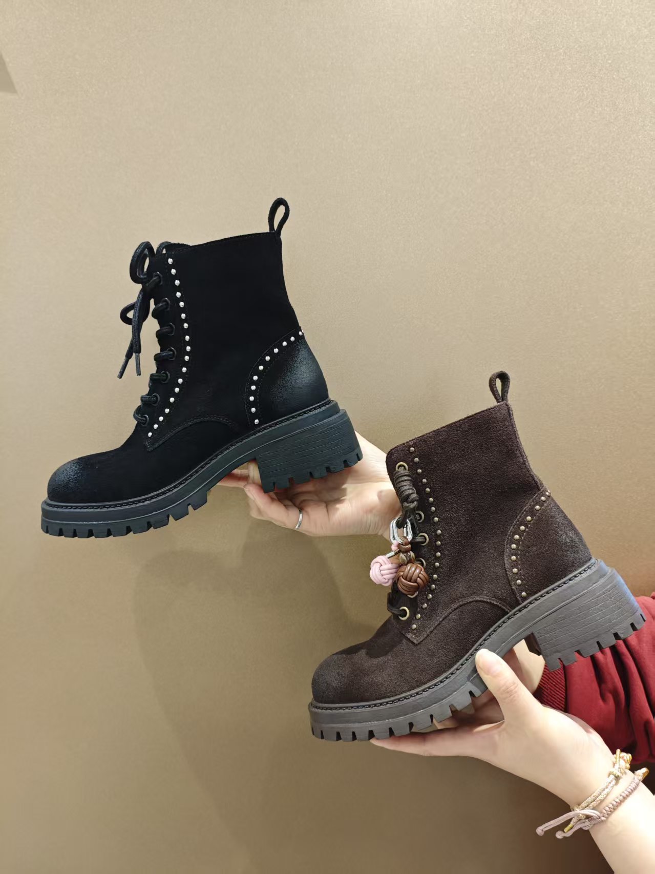 西村名物2025年冬季新款舒适厚底中跟绒底绒面马丁靴短筒靴X25D848691