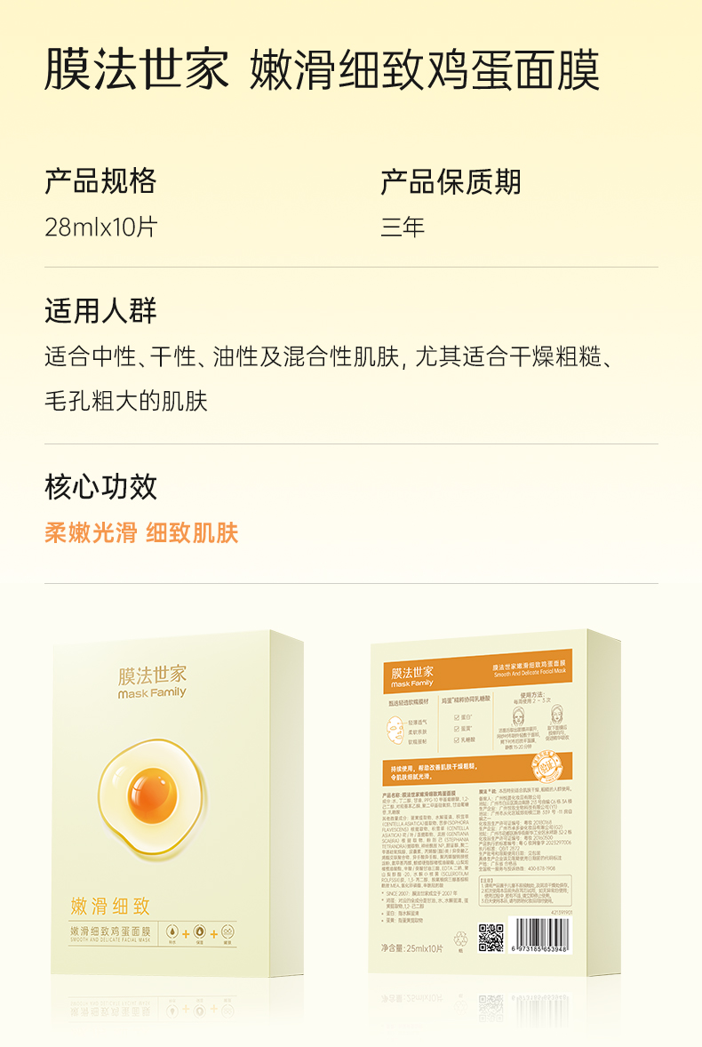 【细致嫩滑】膜法世家鸡蛋嫩滑保湿面膜10片装