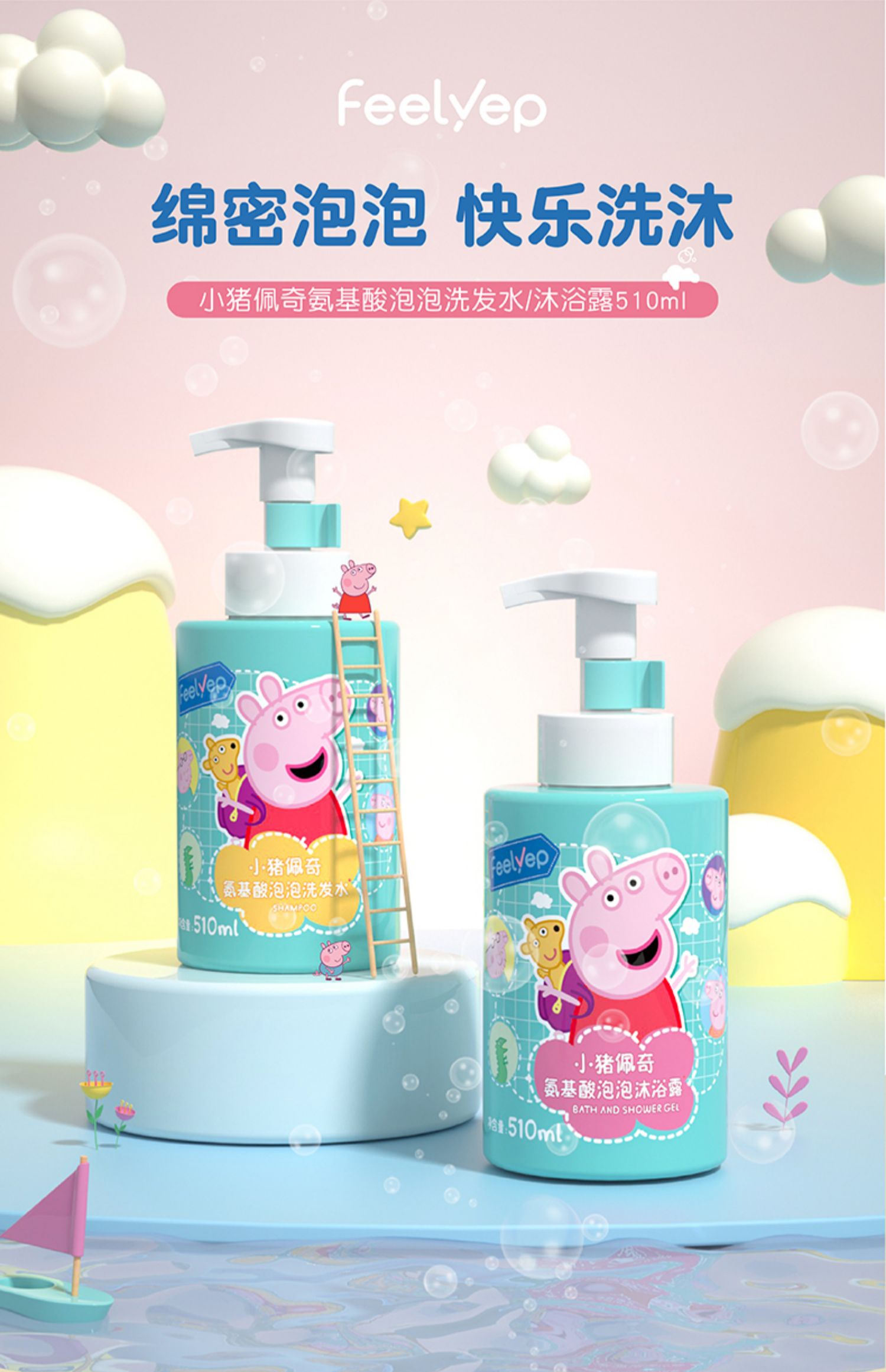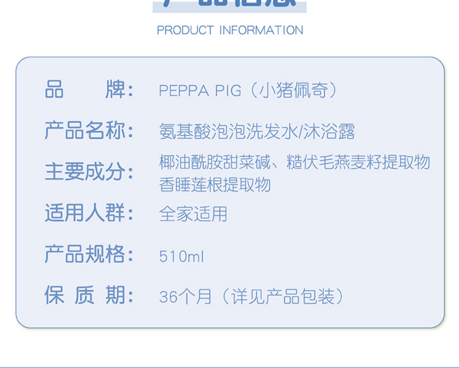小猪佩奇氨基酸型泡泡洗发水510ml