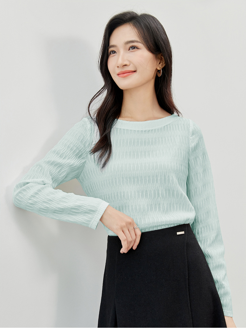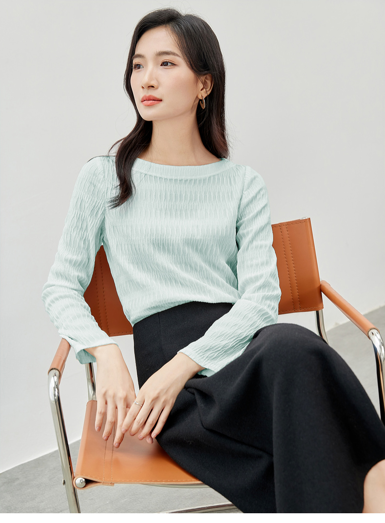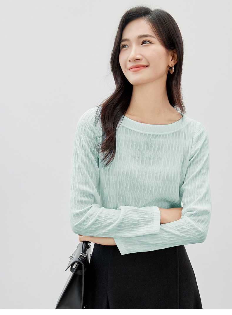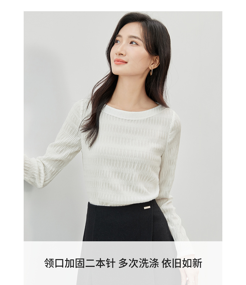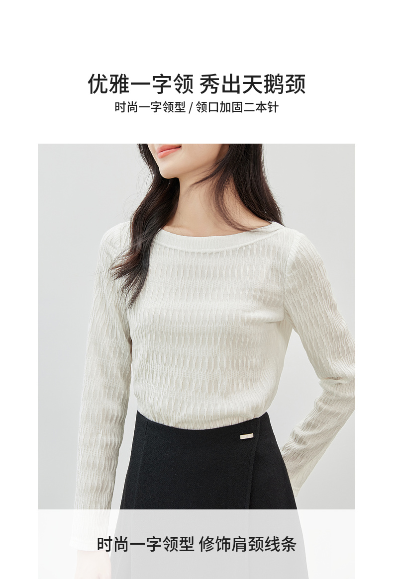 【内购】时尚通勤清爽一字领水波纹肌理弹力长袖T恤-151T57497