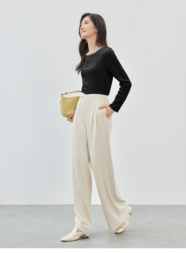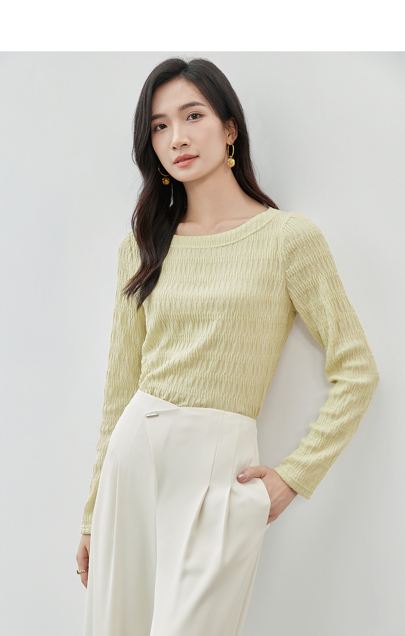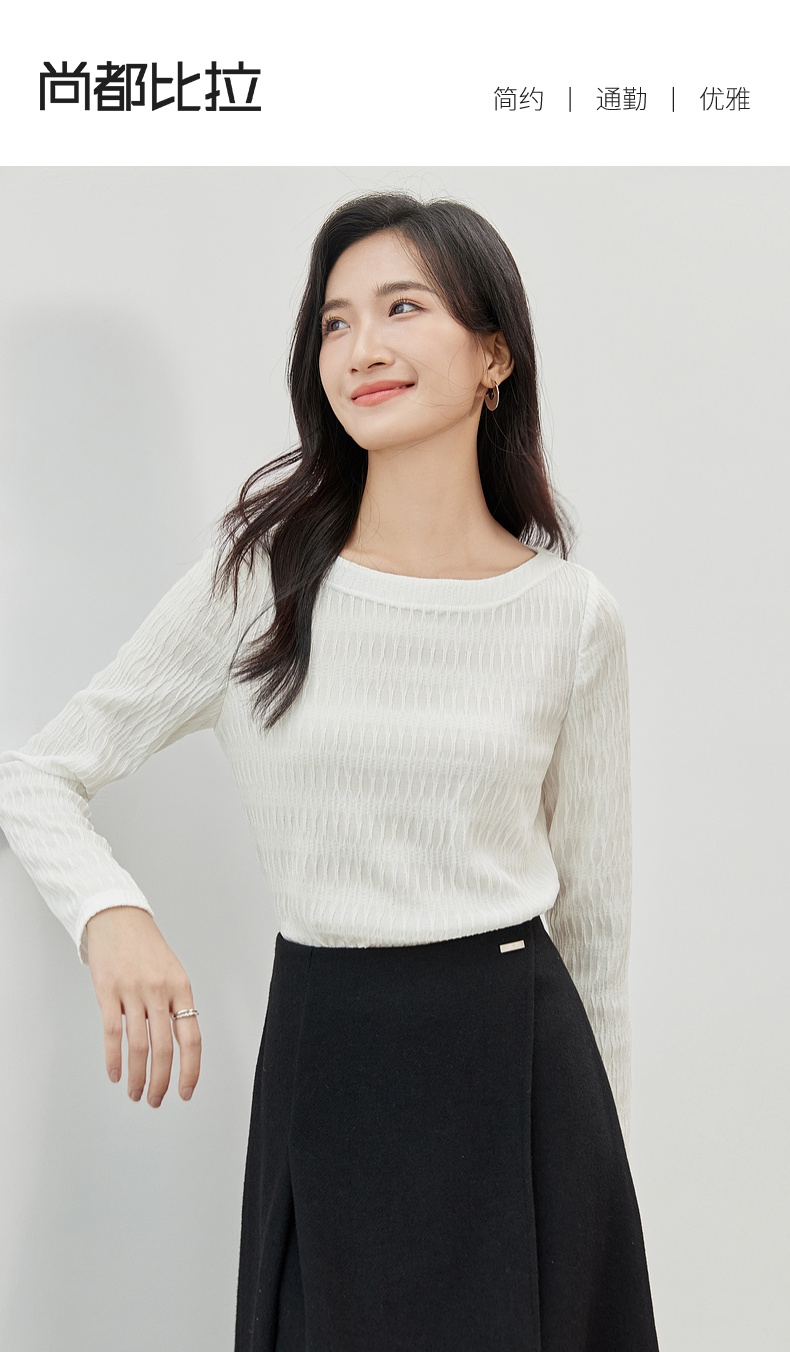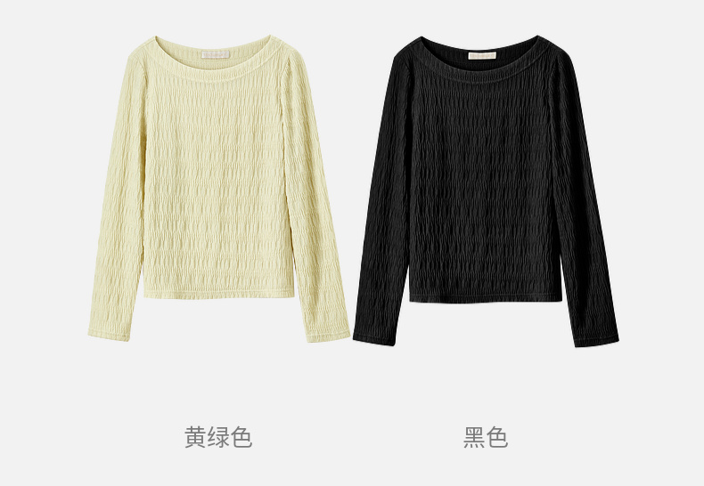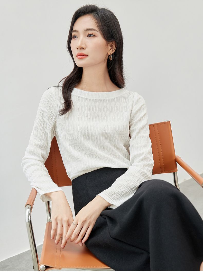 【内购】时尚通勤清爽一字领水波纹肌理弹力长袖T恤-151T57497