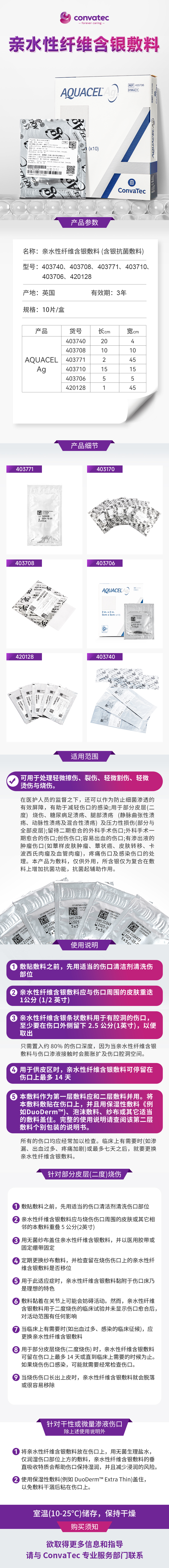 CONVATEC康维德亲水性纤维含银敷料403740 403708 403771 403710 403706 420128