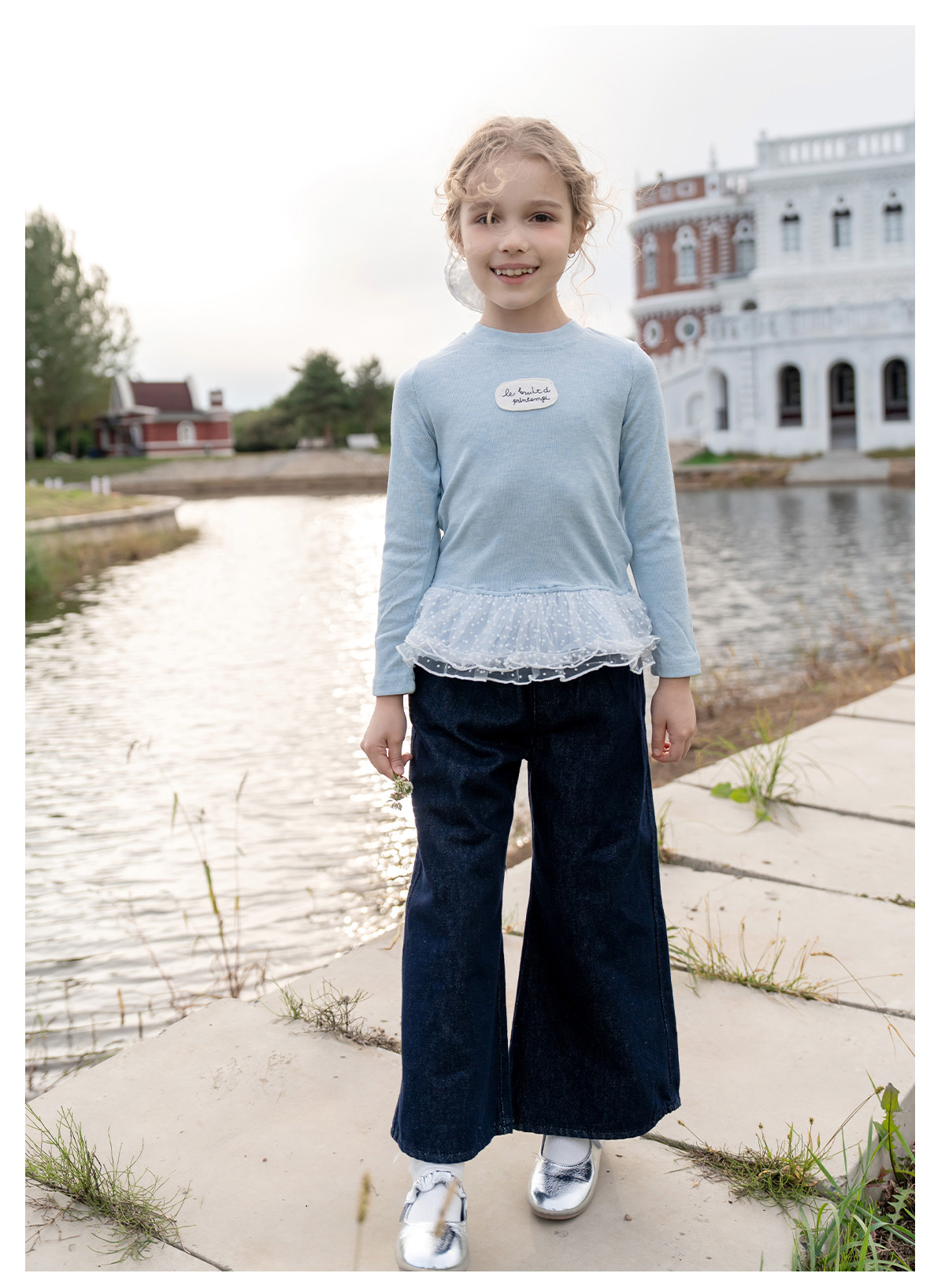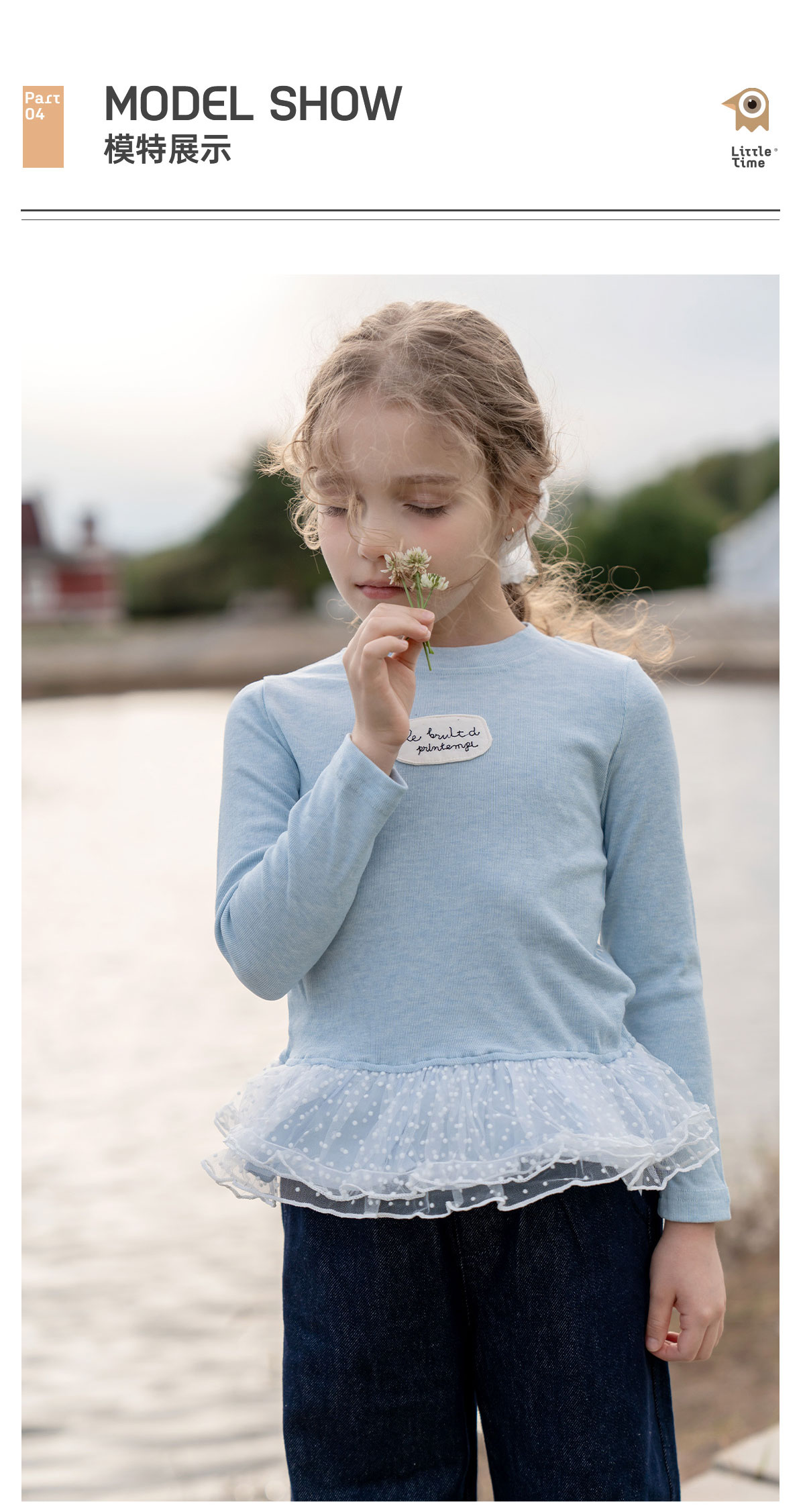 littletime女童打底衫2025秋冬新款儿童花边领长袖T恤女春秋上衣