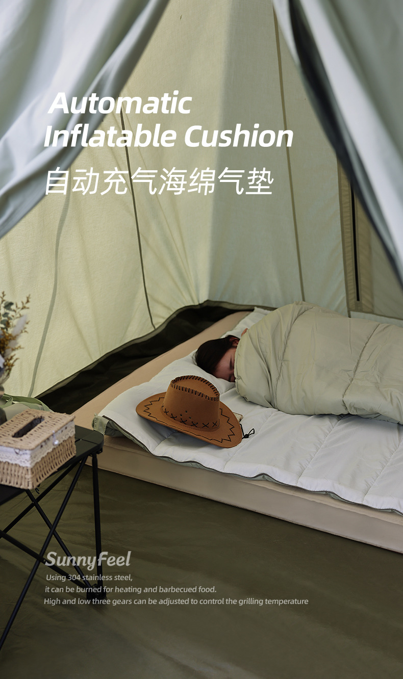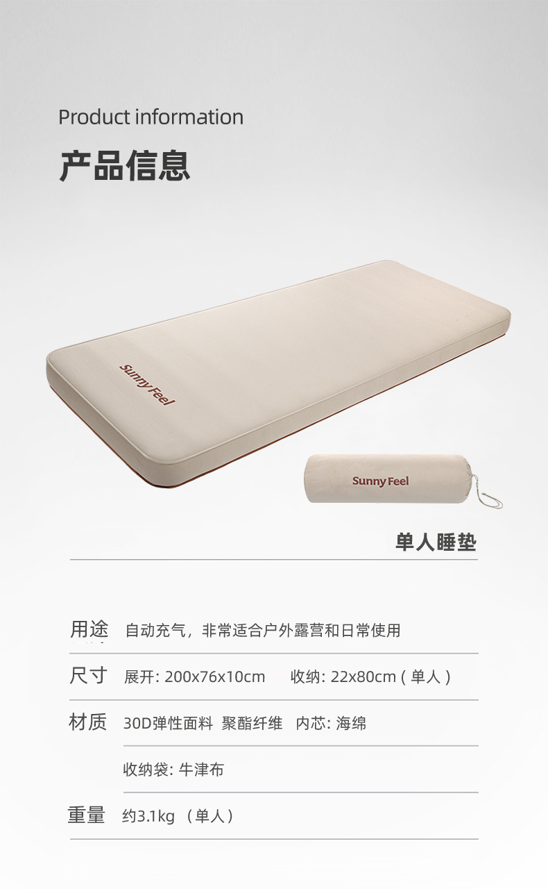 SunnyFeel户外露营充气床野营自动充气床垫_营地充气海绵垫睡垫