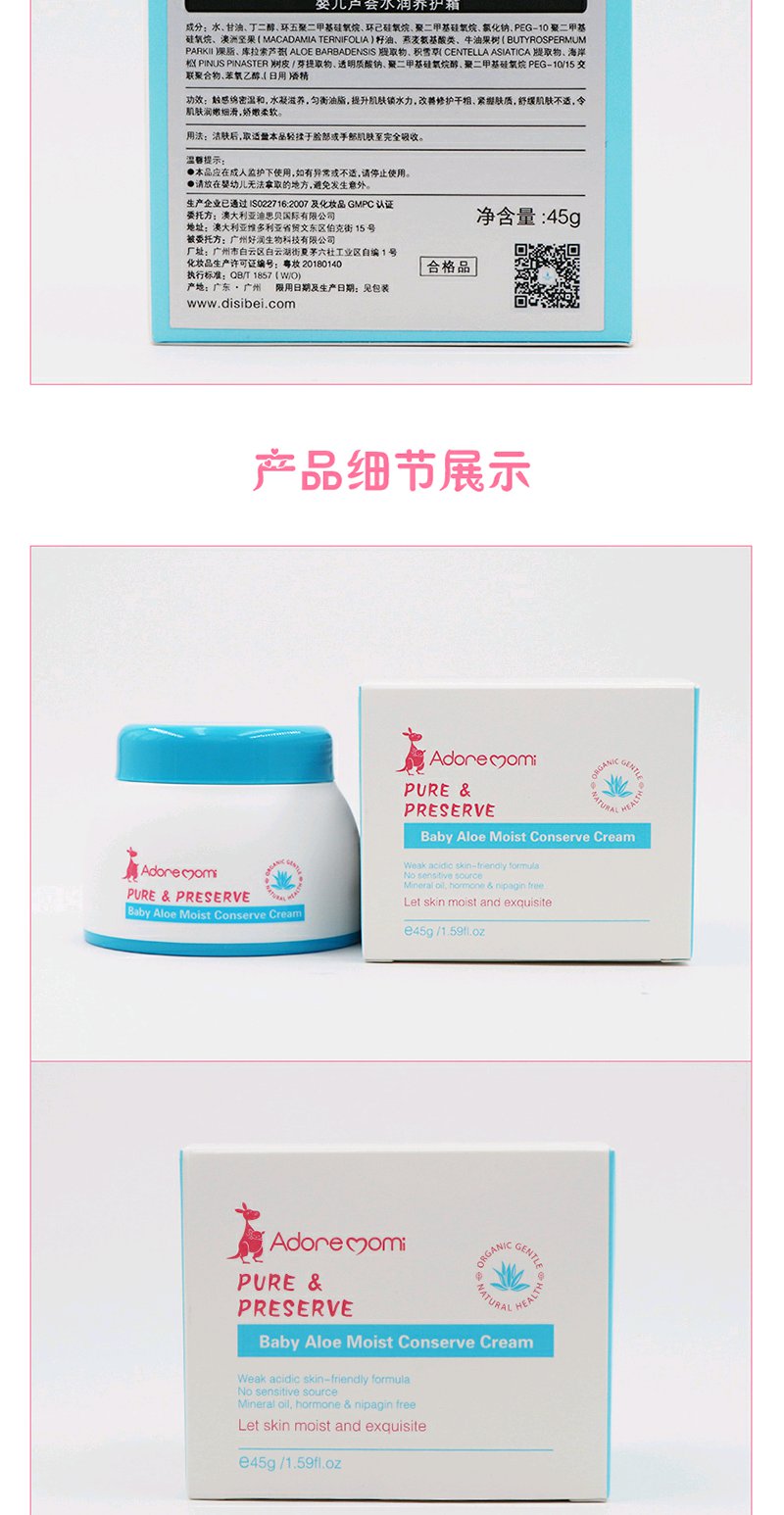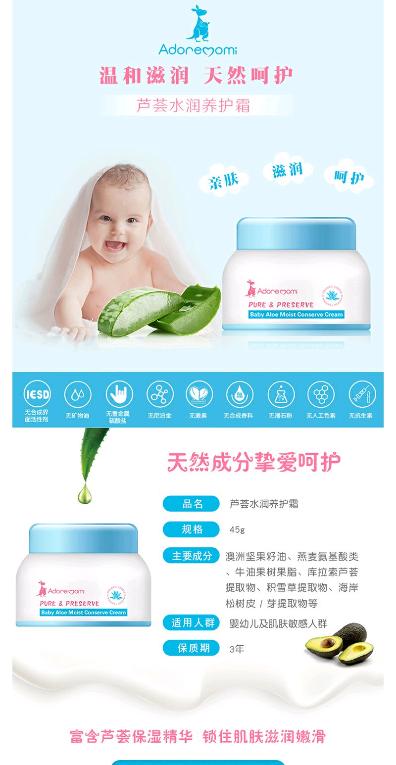澳大利亚Adore momi/爱迪妈咪 芦荟水润养护霜45g