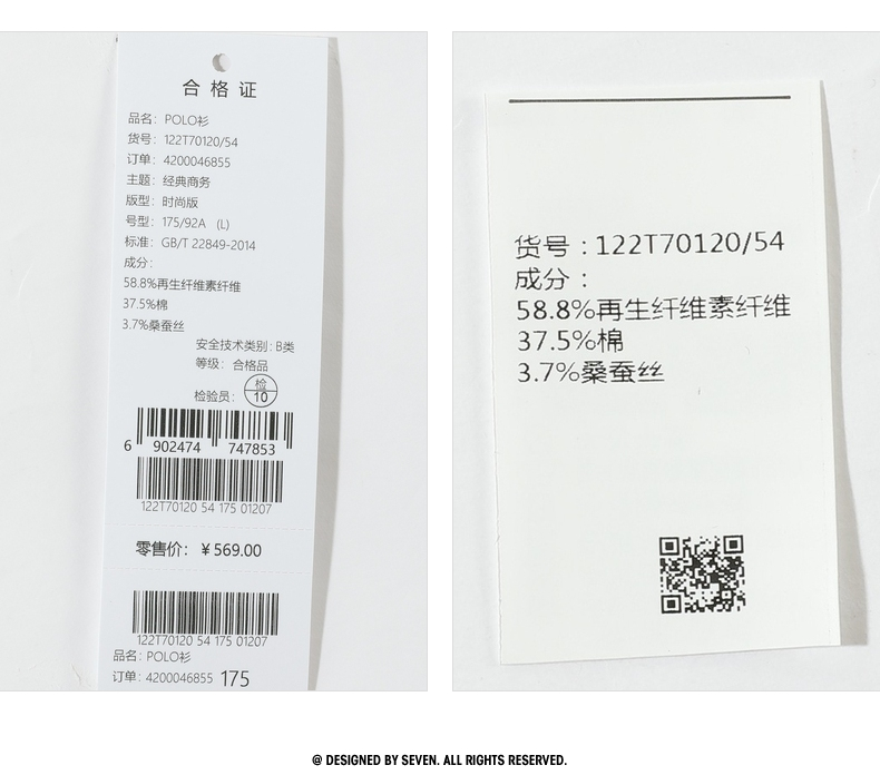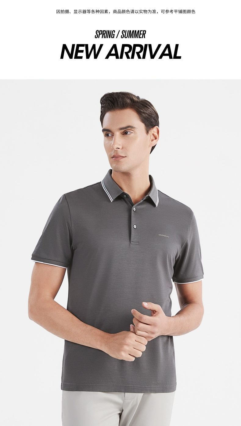 【含桑蚕丝】柒牌短袖polo衫男夏季商务休闲翻领保罗衫122T70121