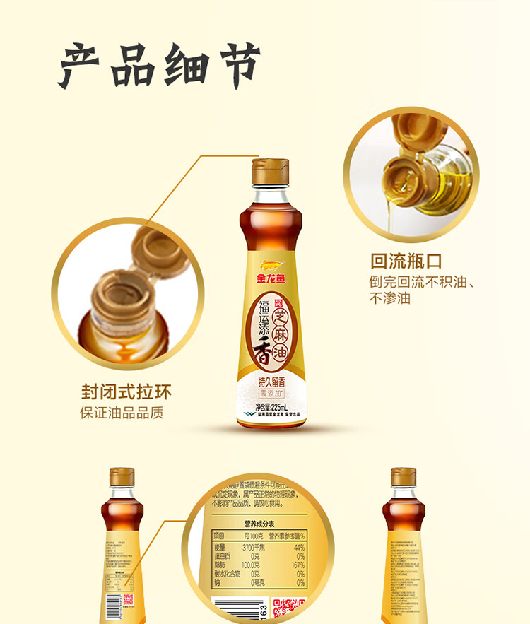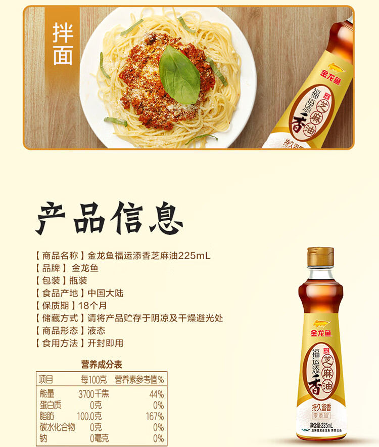 【发出后不支持拦截退货】金龙鱼 福运添香芝麻油 225ml*2