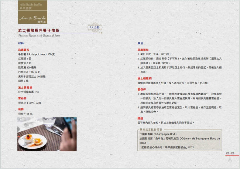 • Institut Disciples Escoffier法國烹飪藝術文憑課程畢業食譜