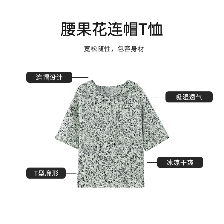 【商场同款】CNV4581 “ 腰果花帽衫 ” 手绘腰果花图案雅致经典 T型廓形包容身形 宽松舒适 纯黏胶成份透气性好 清凉不粘身 连帽衫