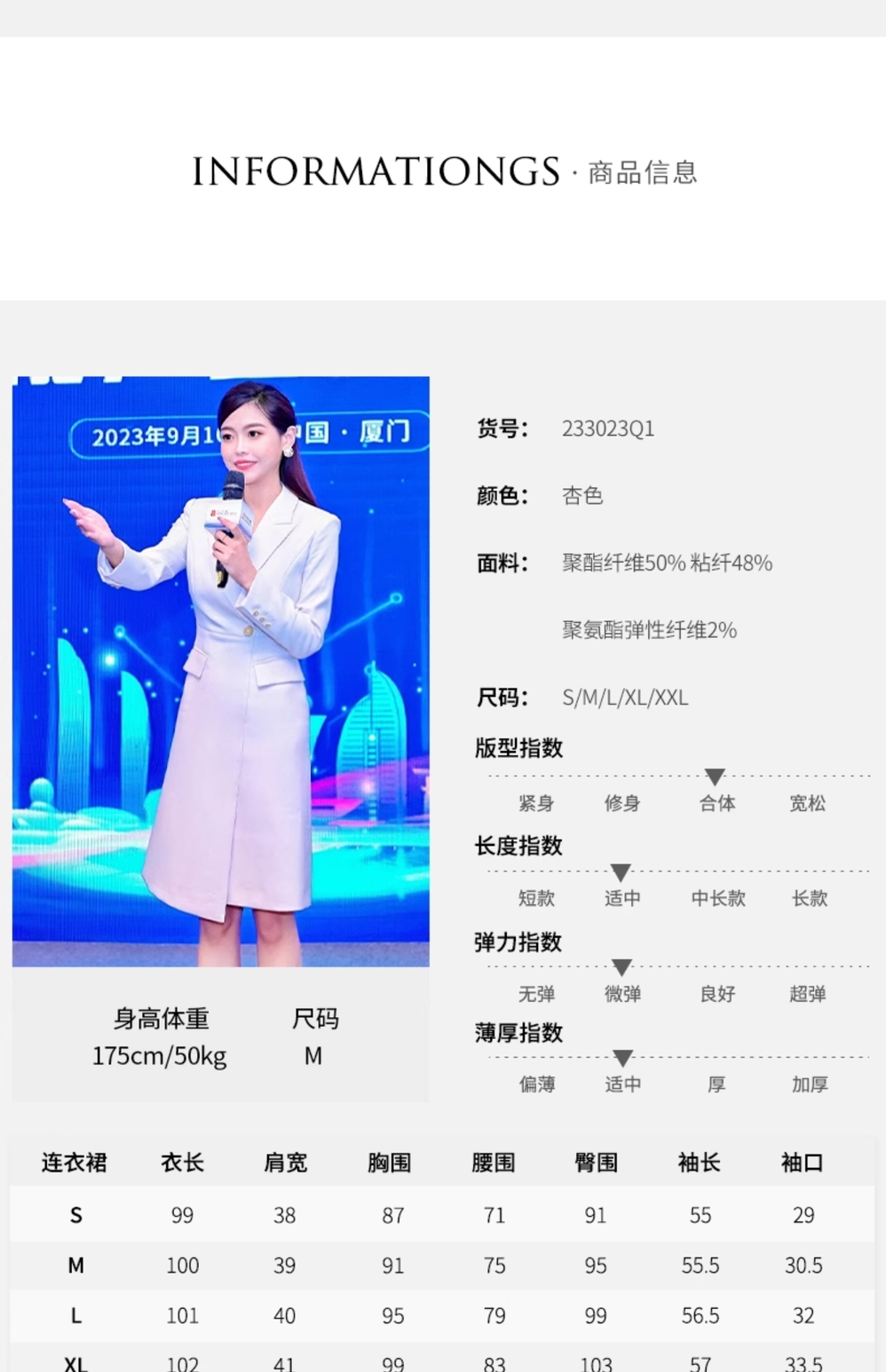 IWY/杏色端庄大气主持人正装女精英白领干练职业范西装连233023Q1