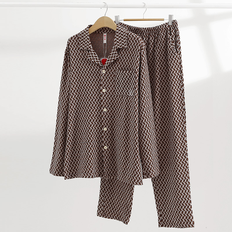 睡衣男士家居服套装中年爸爸春秋冬季翻领开衫长袖居家服男款 芬腾