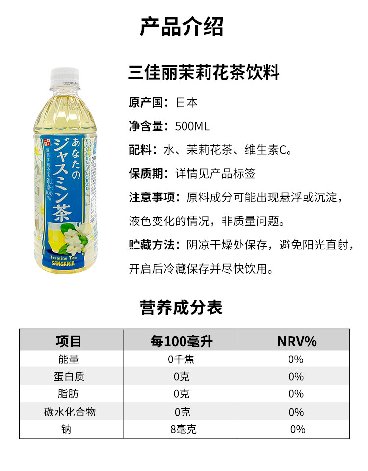 【新品限时购】三佳利你的茉莉花茶饮料 500ml / 020300
