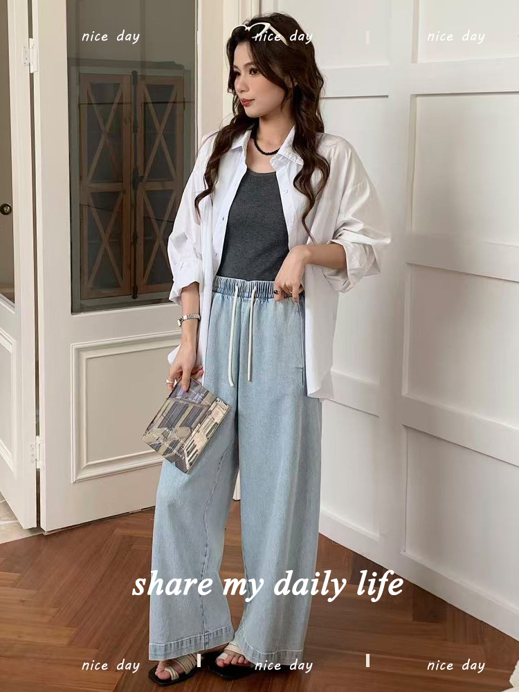K.HIP 汀蓝白牛随心裤 精选高支棉面料 多道砂洗工艺反复打磨 版型魔法 九分裤长 藏肉显高 2602