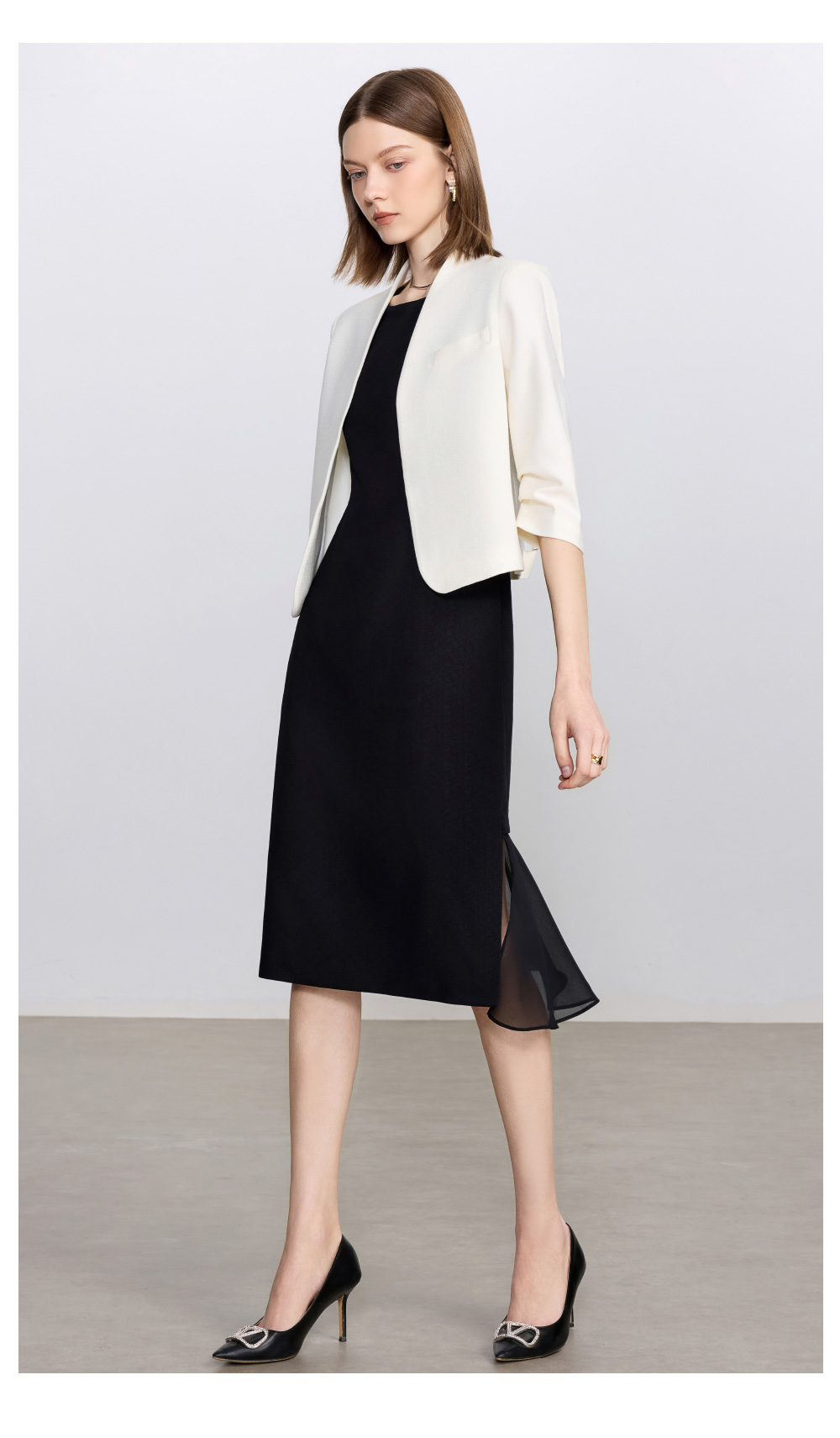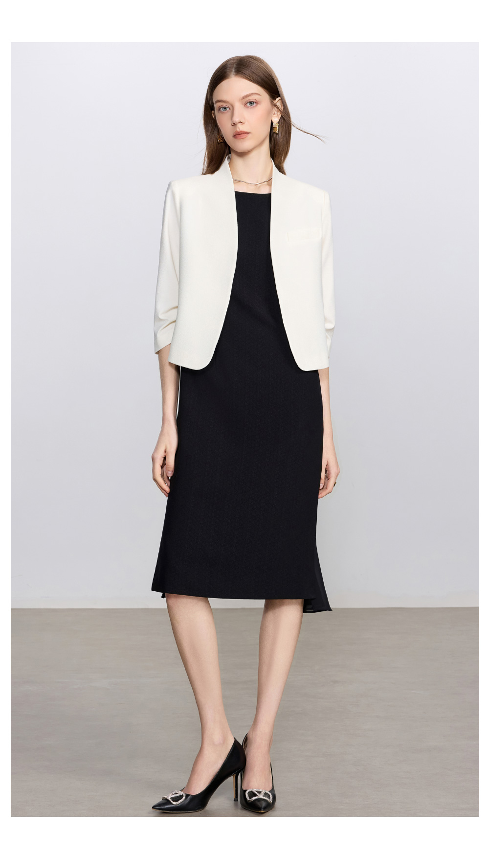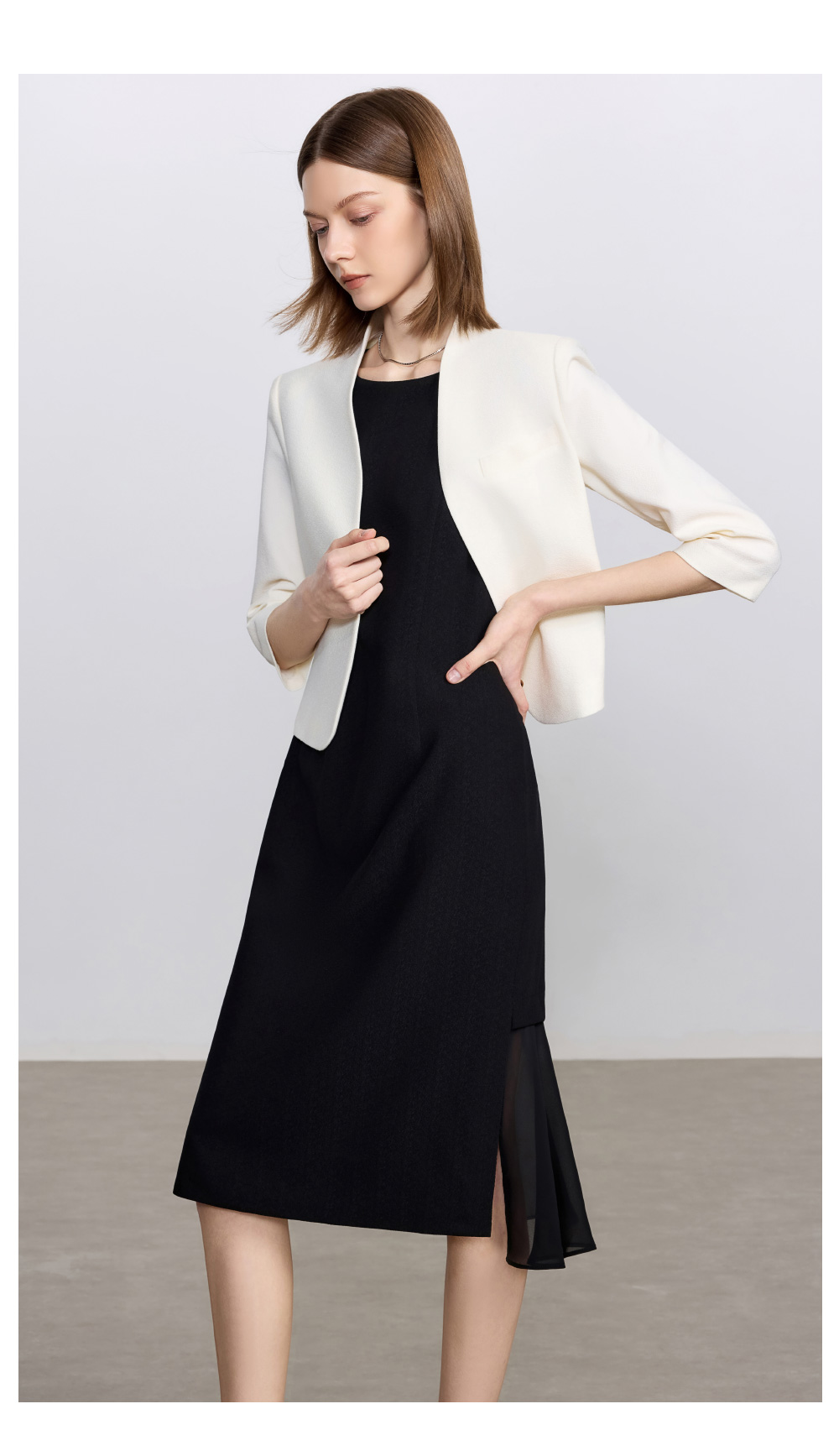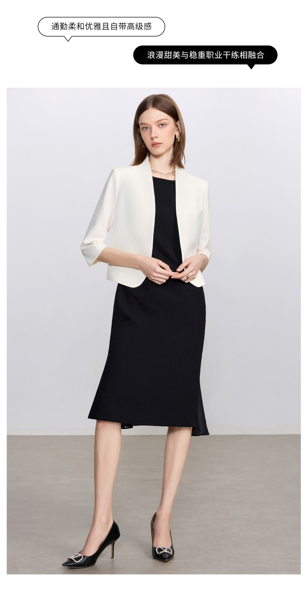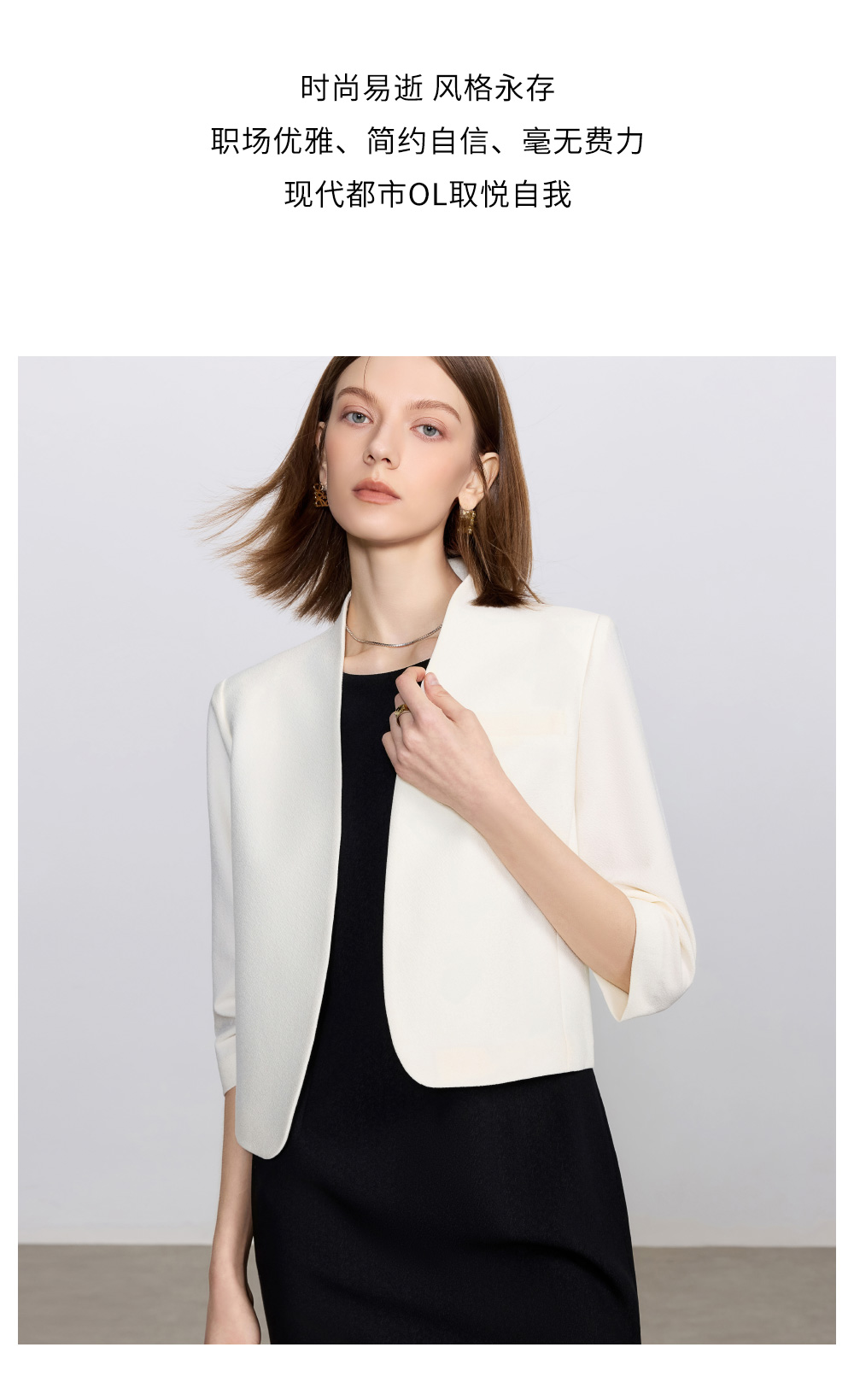 IWY/简约米白色无领西装外套女新款一粒扣职业装套装经理律师工作服C2341+Q1435