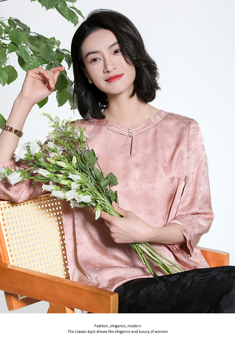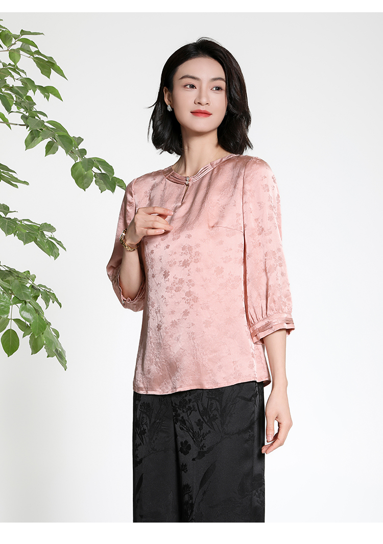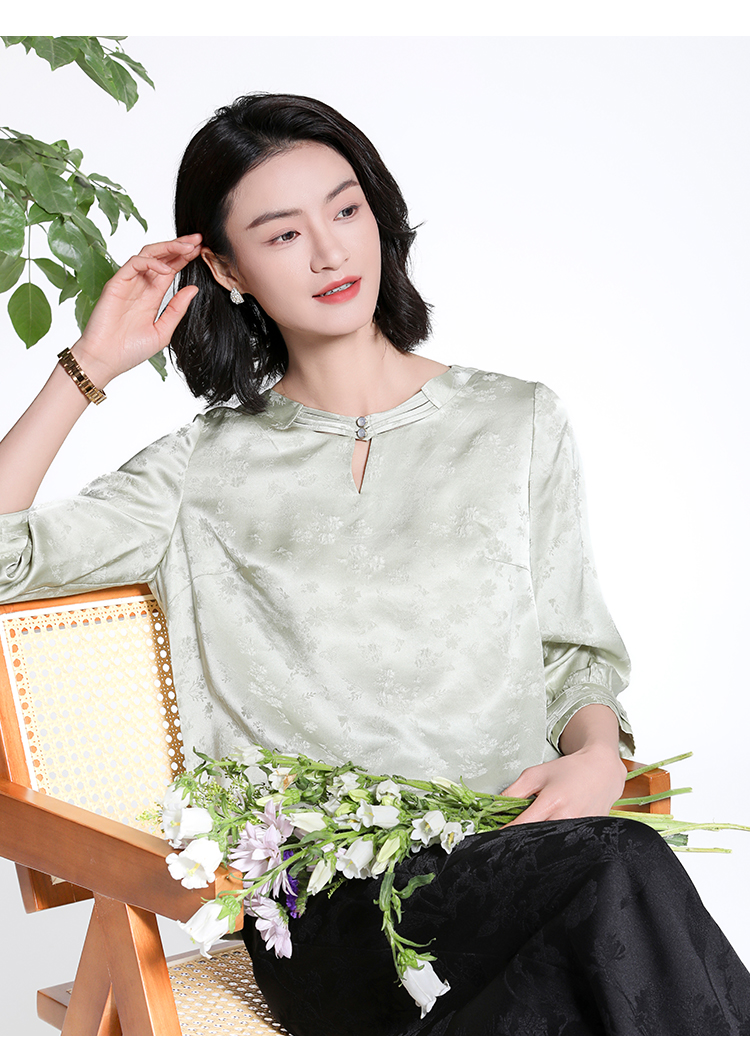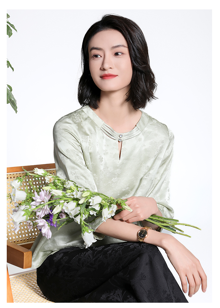 佐尔美夏季新款新中式国风时尚气质桑蚕丝衬衫女M42CS06