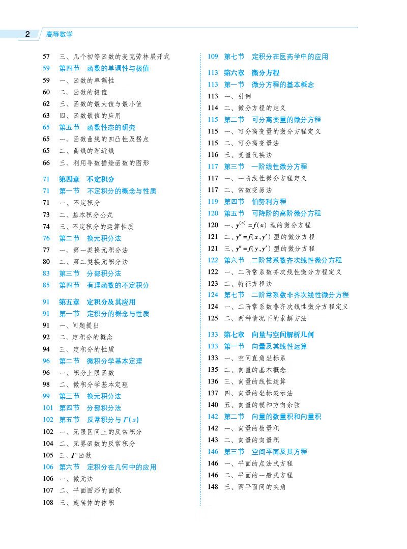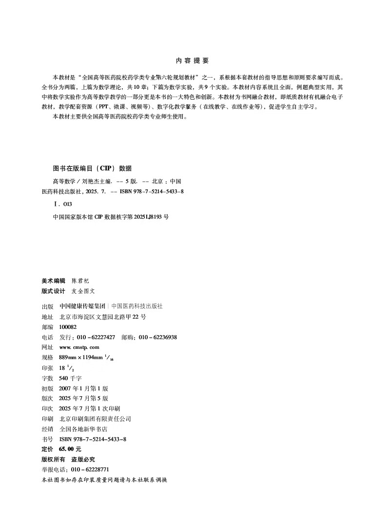 高等数学 第5五版 全国高等医药院校药学类专业第六轮规划教材 刘艳杰 主编 供医药类专业用 9787521454338中国医药科技出版社