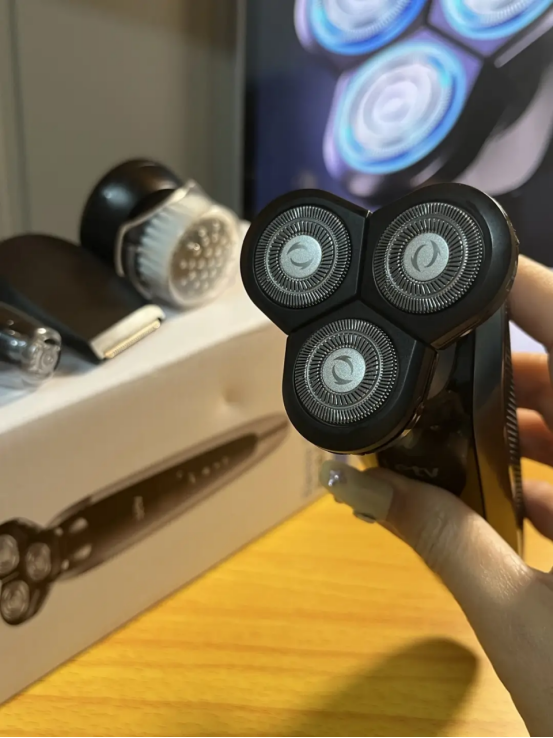 你可能想象不到,几十块钱的剃须刀,用的是3组立体浮动刀头, 在脸上游走特别顺滑,无论是脸颊、下巴、唇周,贴脸走一圈就全剃干净了。