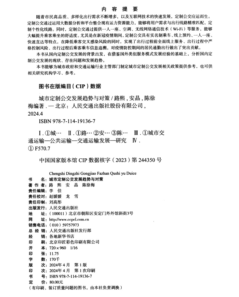 书名:城市定制公交发展趋势与对策(普装)