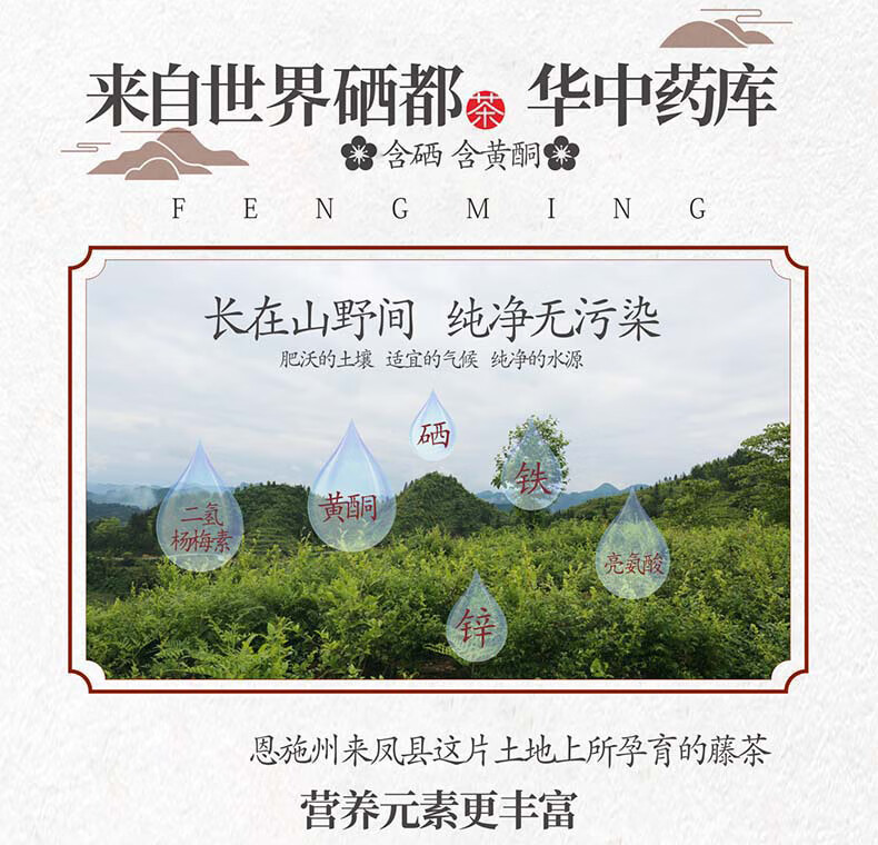 凤鸣恩施来凤藤茶土家神茶硒茶 非张家界莓茶 特级龙须50克向班贵