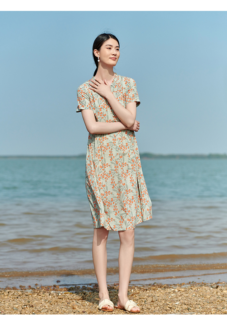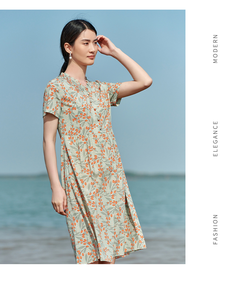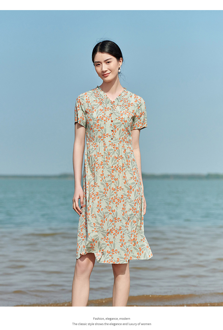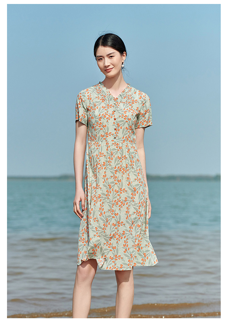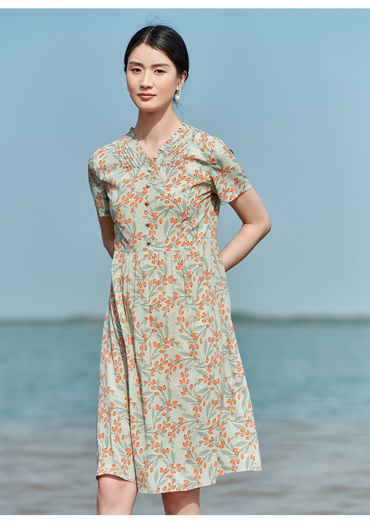 佐尔美2022夏季新款 桑蚕丝真丝弹力双绉小碎花连衣裙女E22LS32