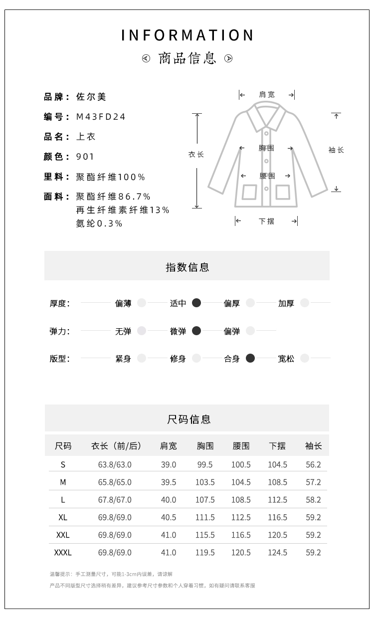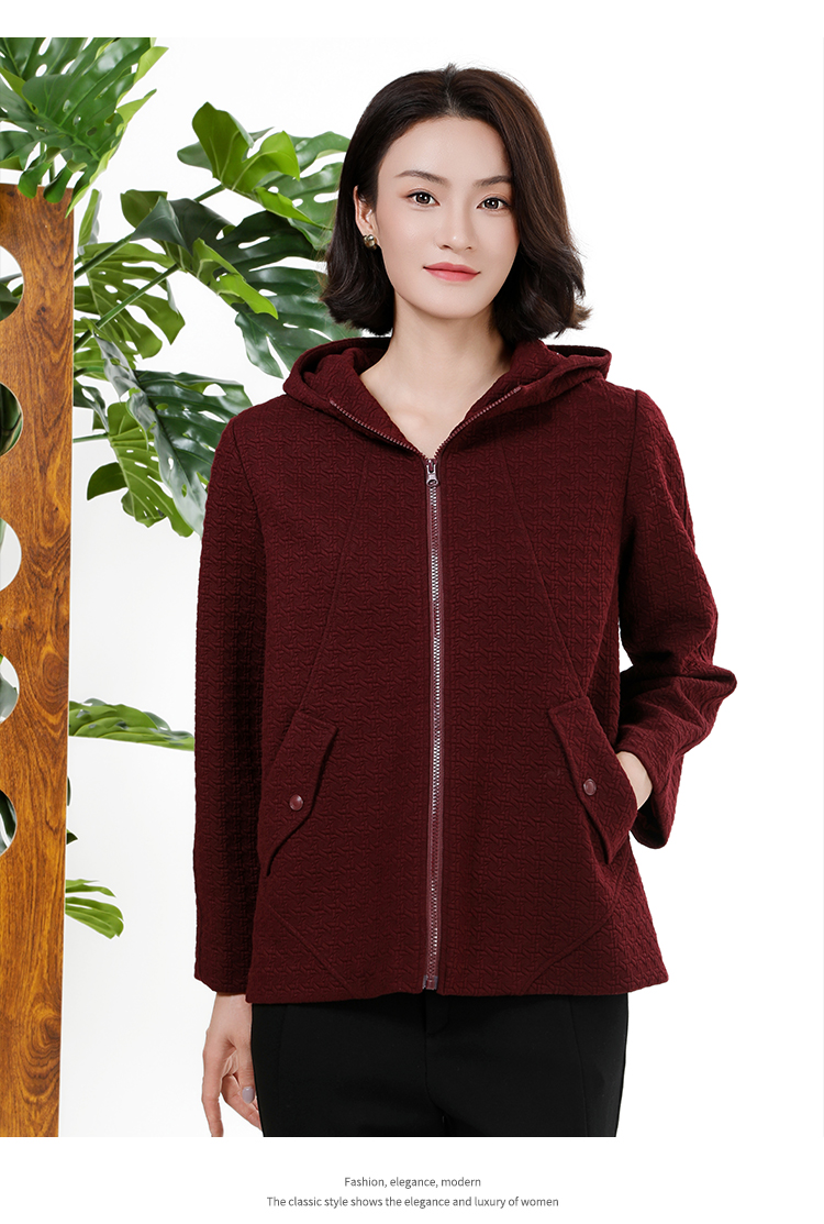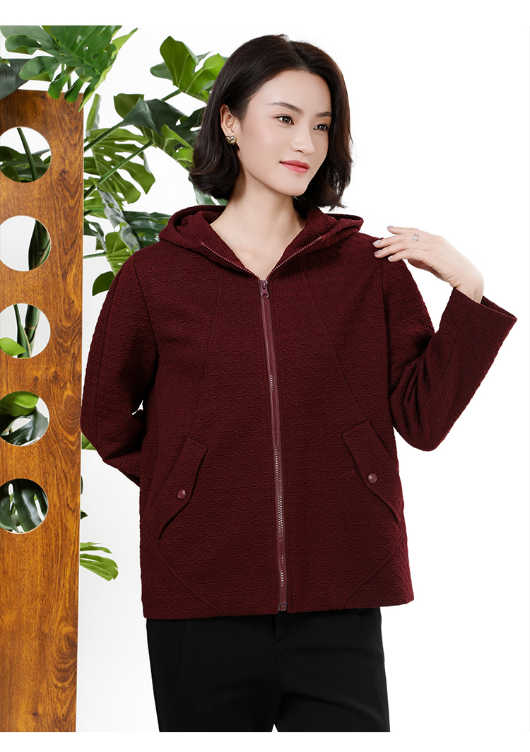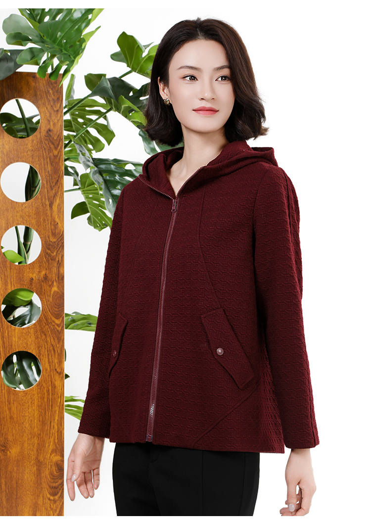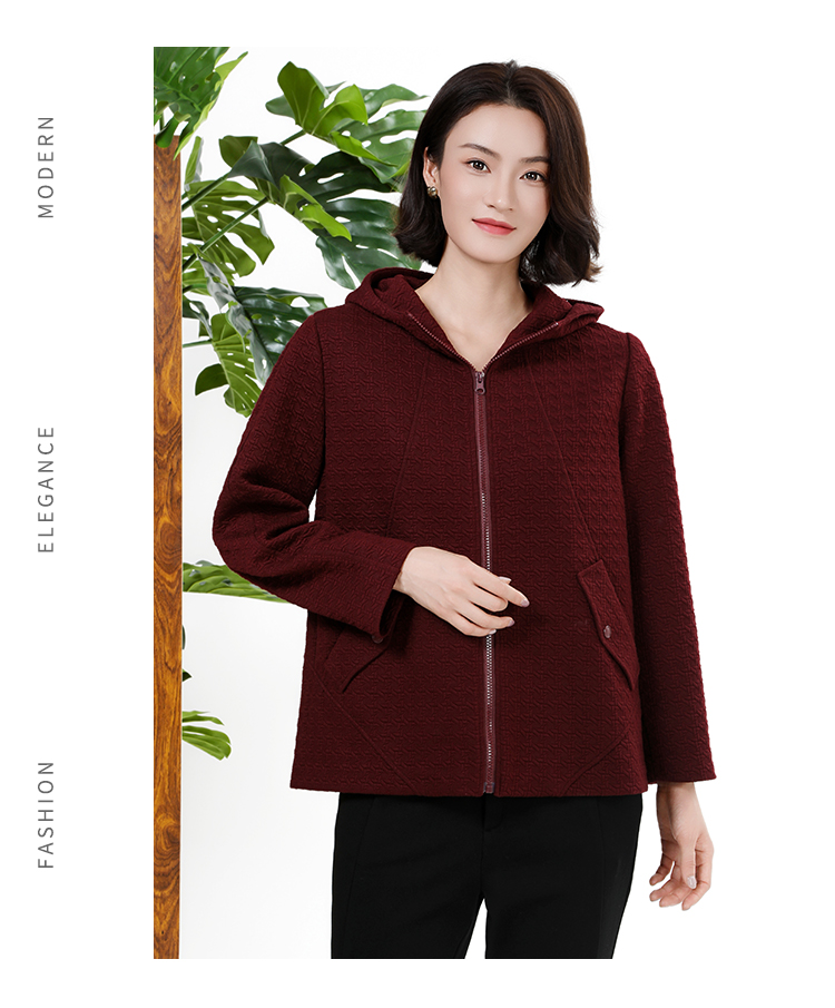 佐尔美经典老钱风连帽风衣压花外套女M43FD24