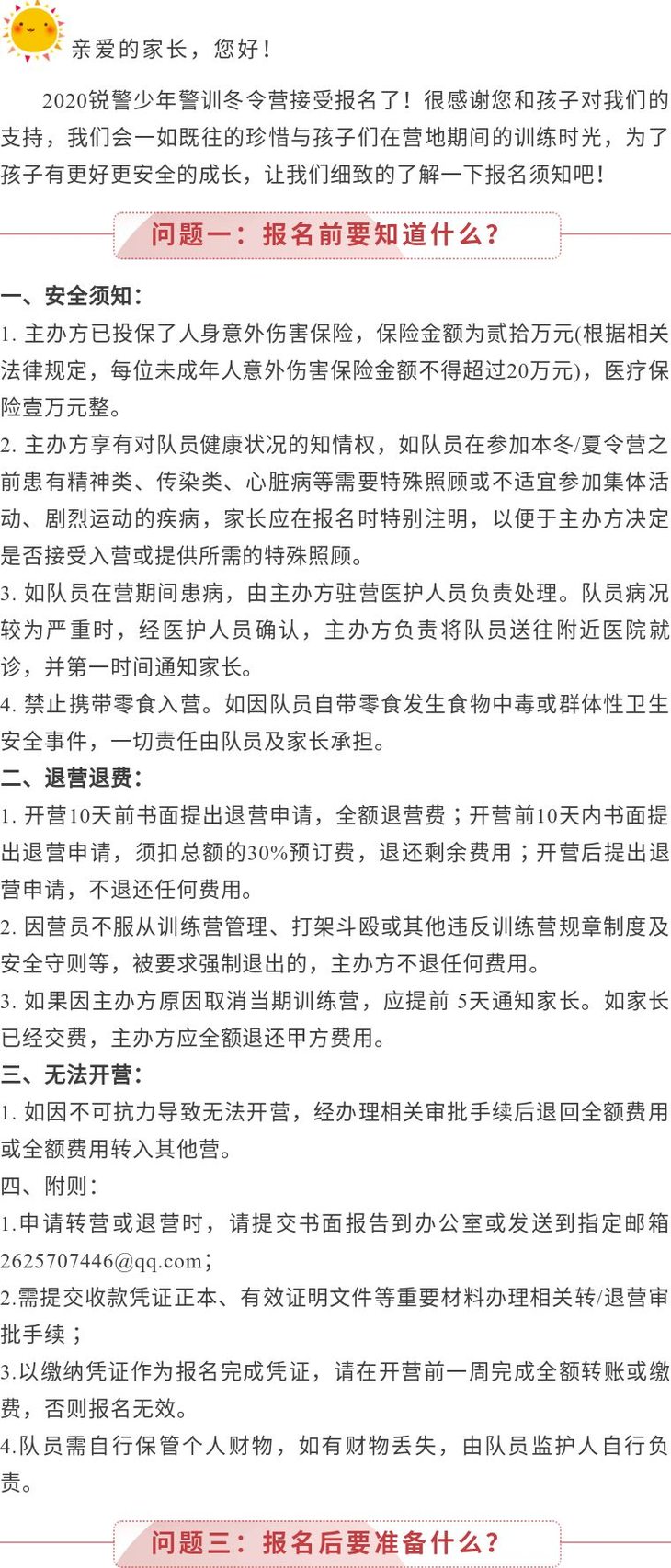 - 锐警少年警训致力于打造“营地教育+安全教育”领航品牌。以专业的警务特色课程体系,为青少年提供沉浸式安全教育,锻造外展自我、内拓素质的现代英武少年。