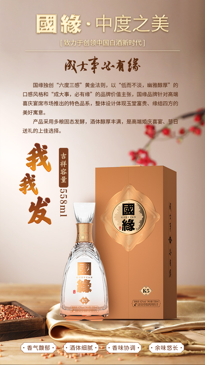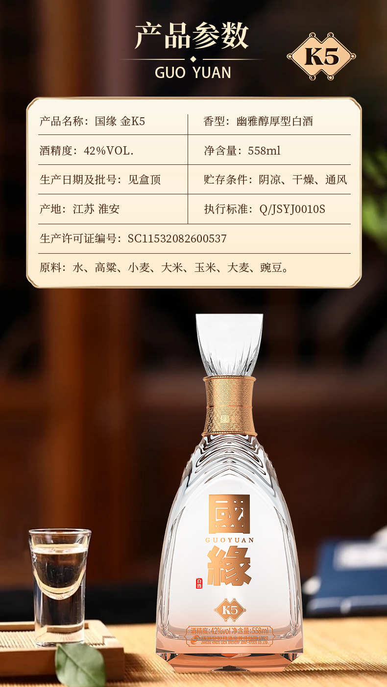 【酒厂直营】今世缘42度558ml国缘·金K5