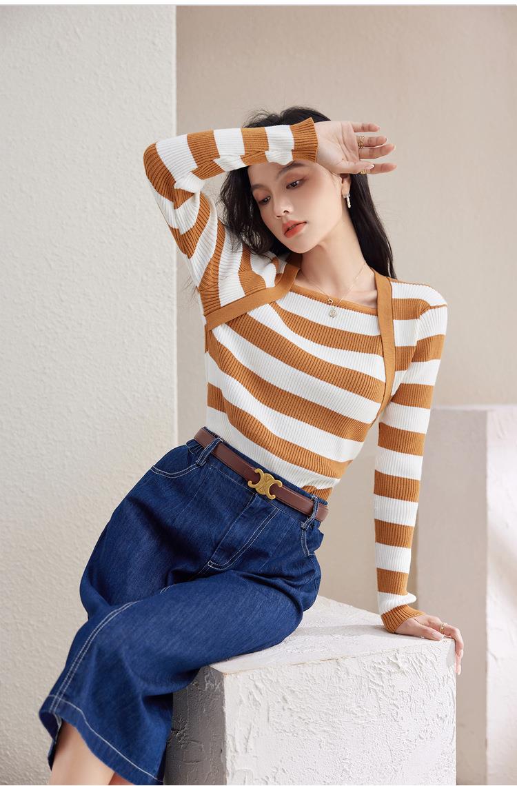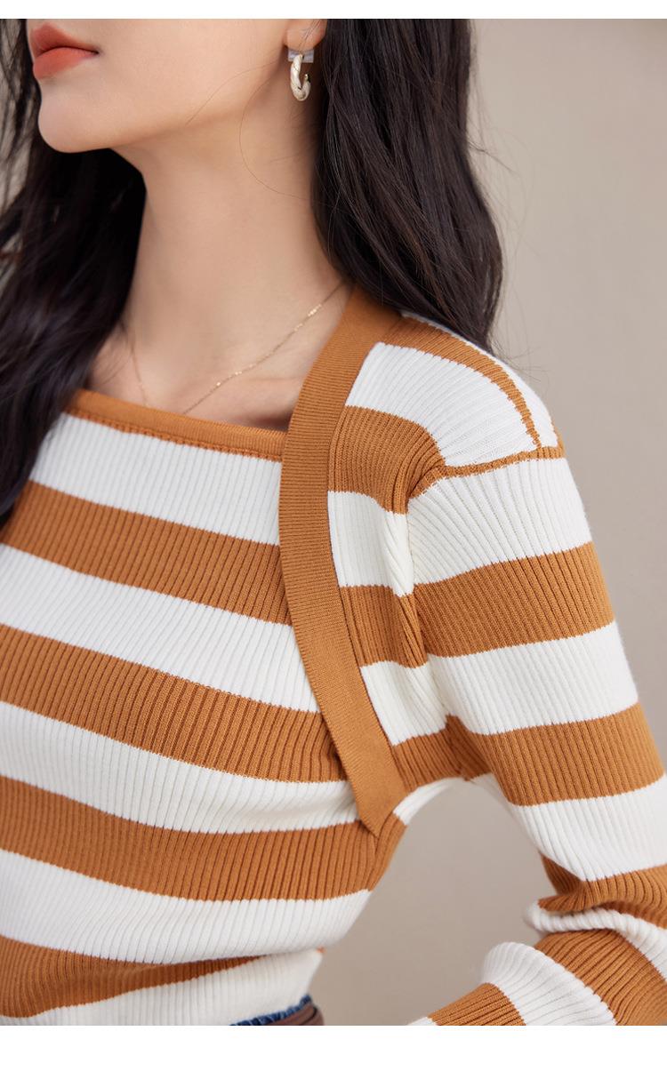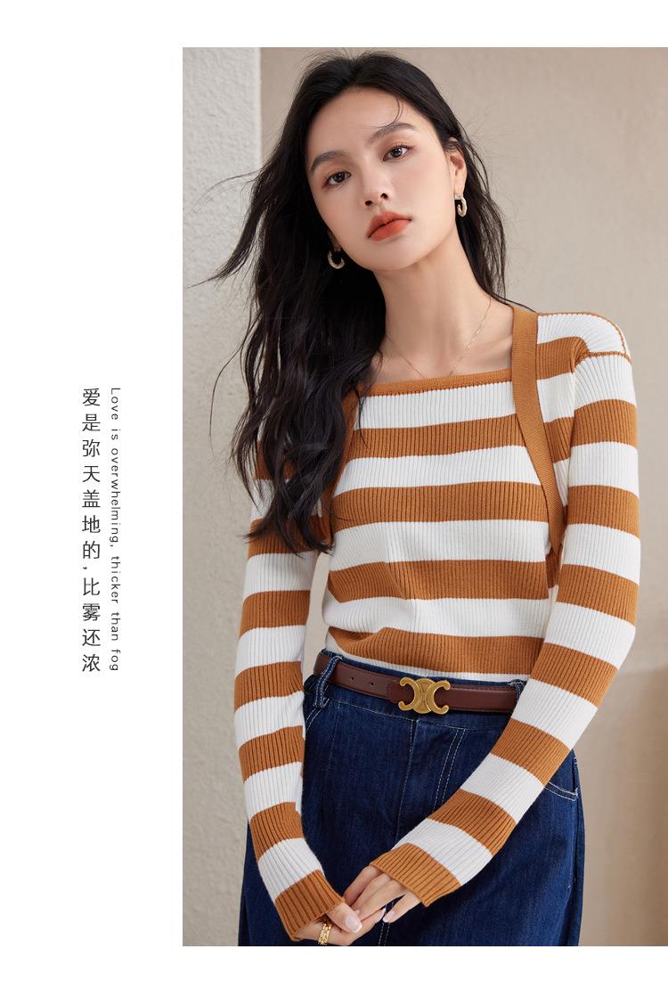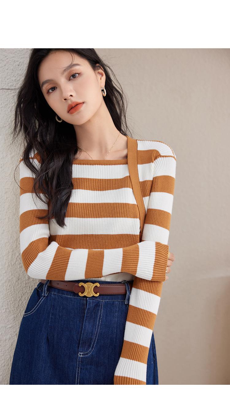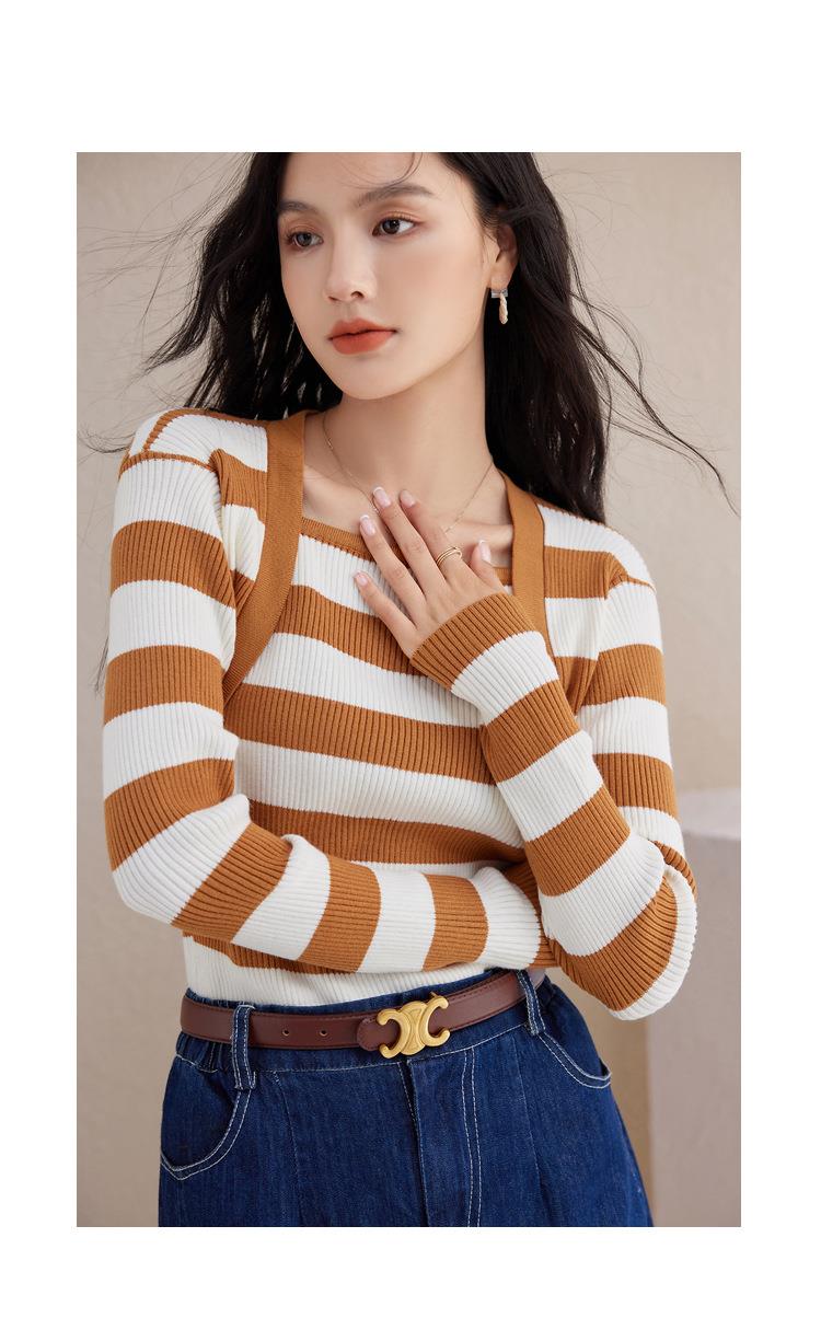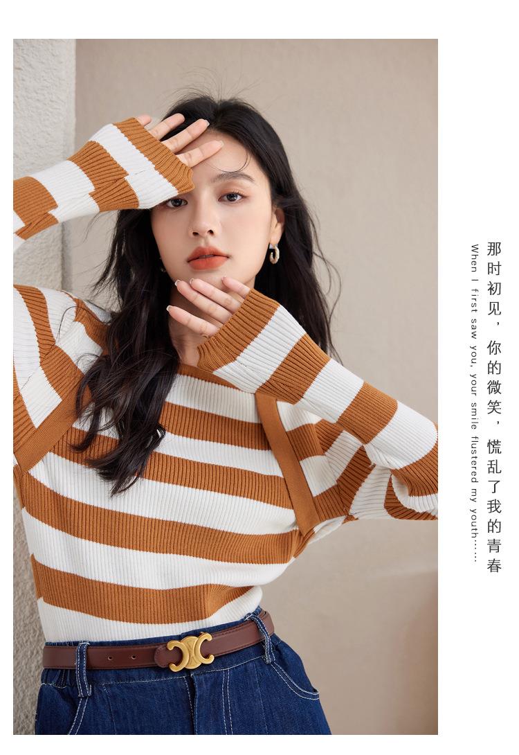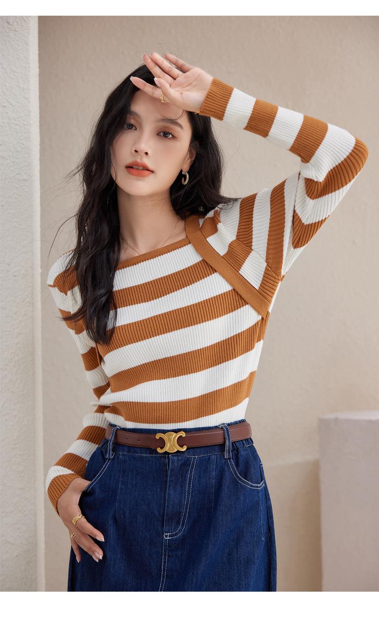 条纹针织衫女长袖秋季2023新款毛衣内搭宽松打底衫气质女人味上衣