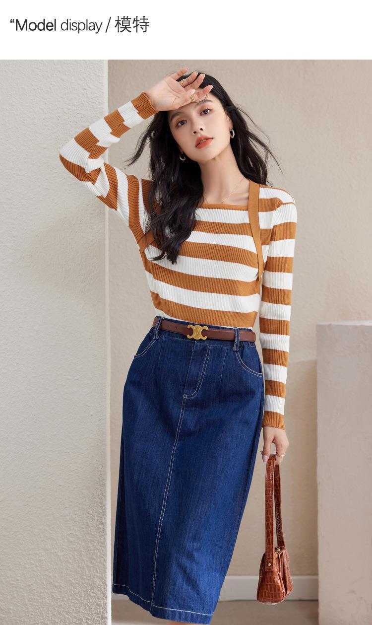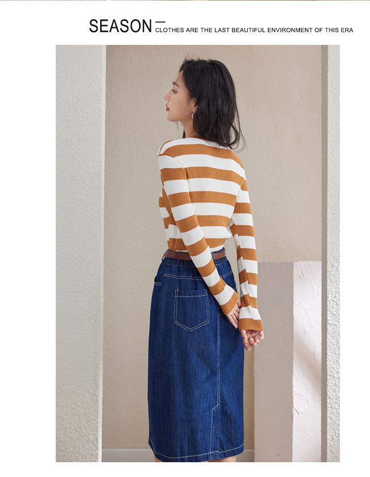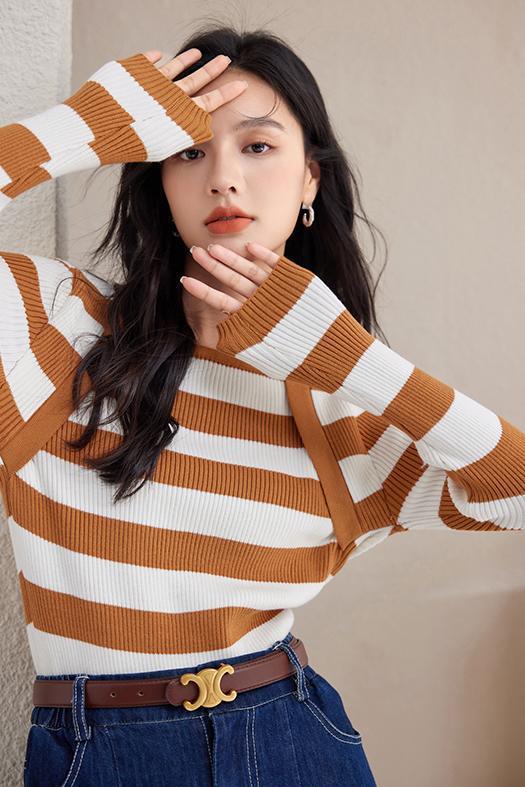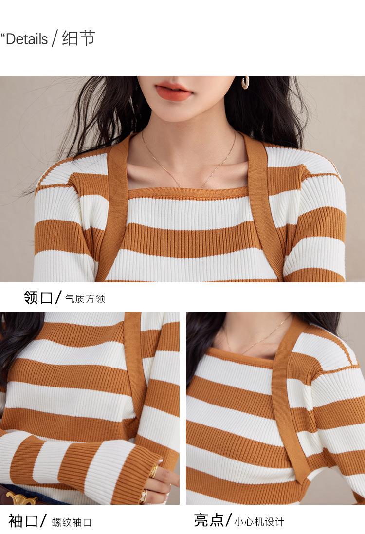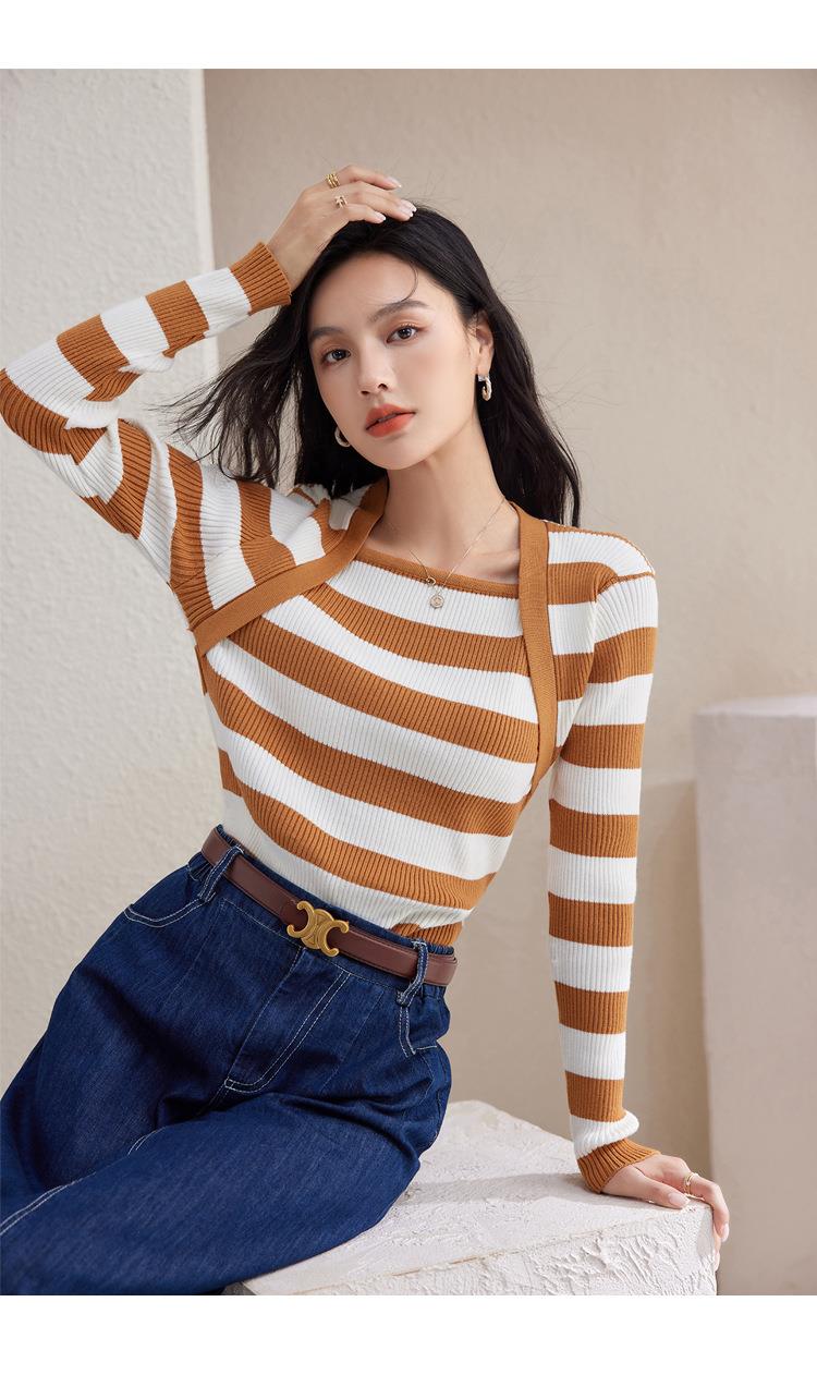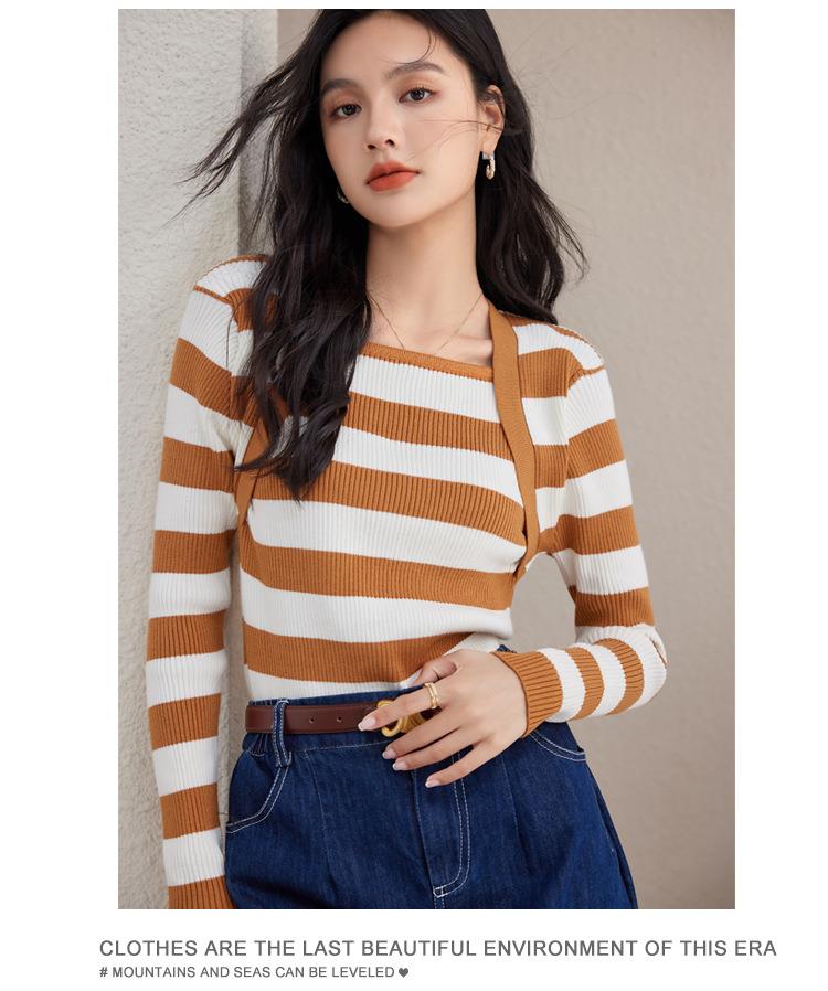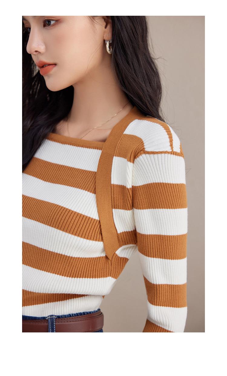 条纹针织衫女长袖秋季2023新款毛衣内搭宽松打底衫气质女人味上衣
