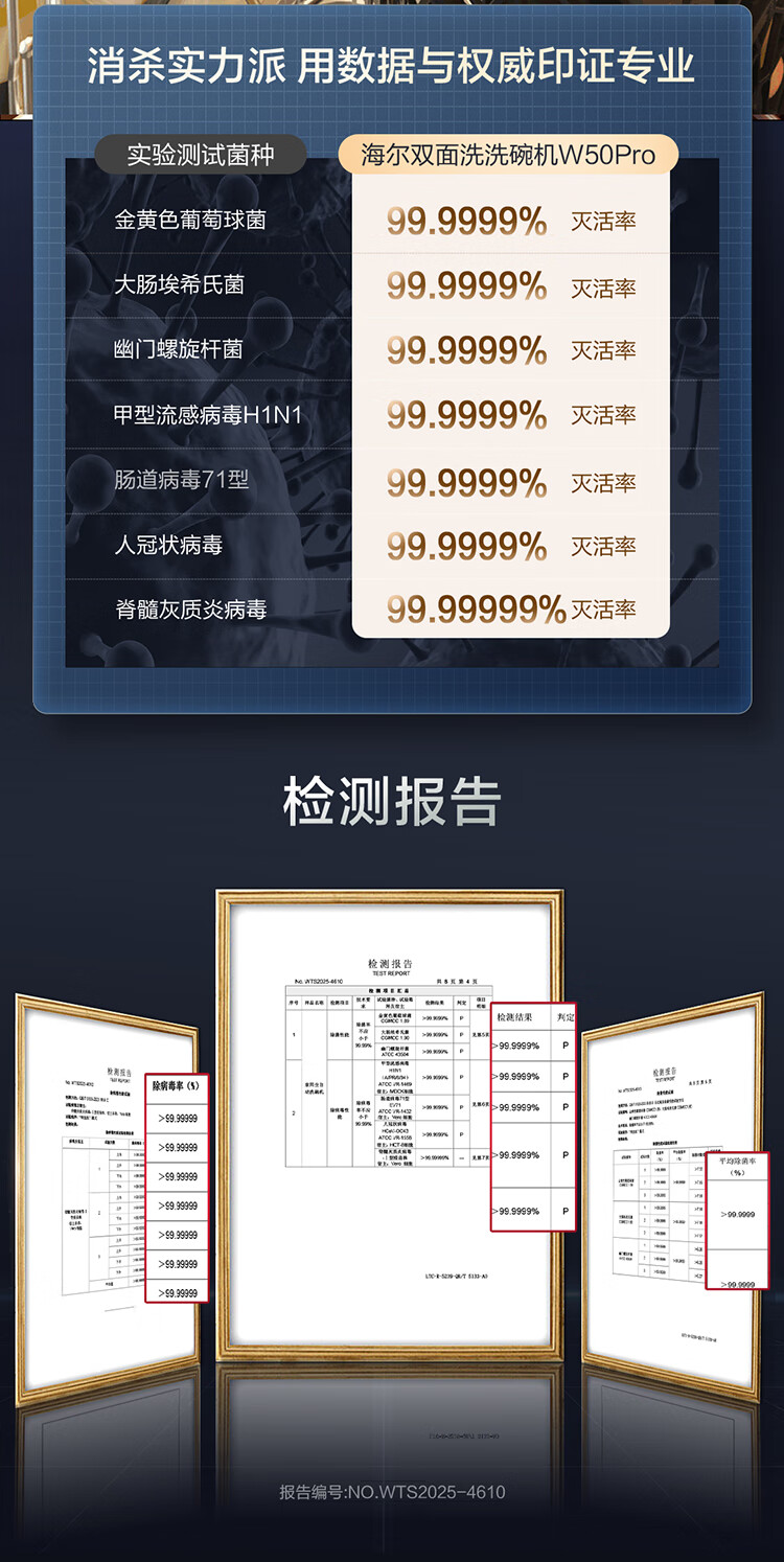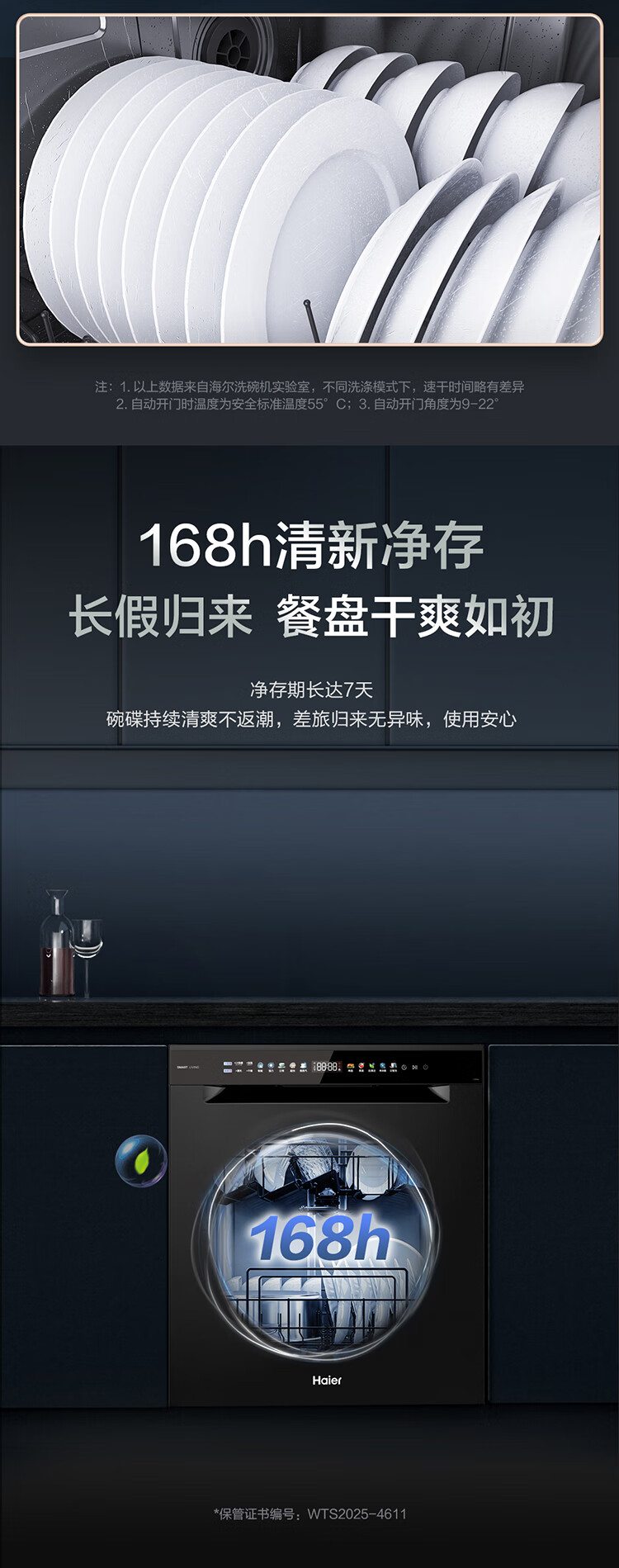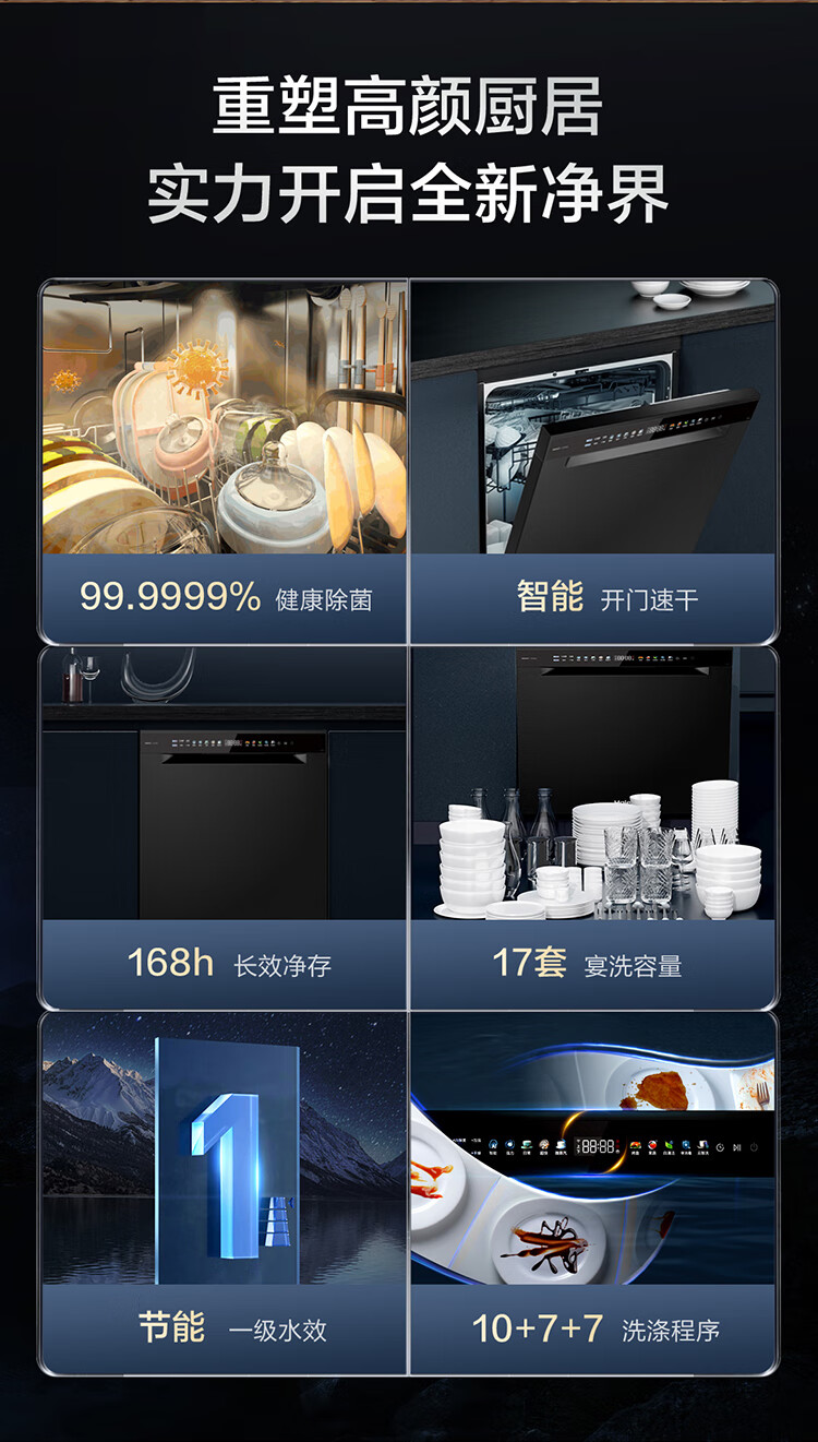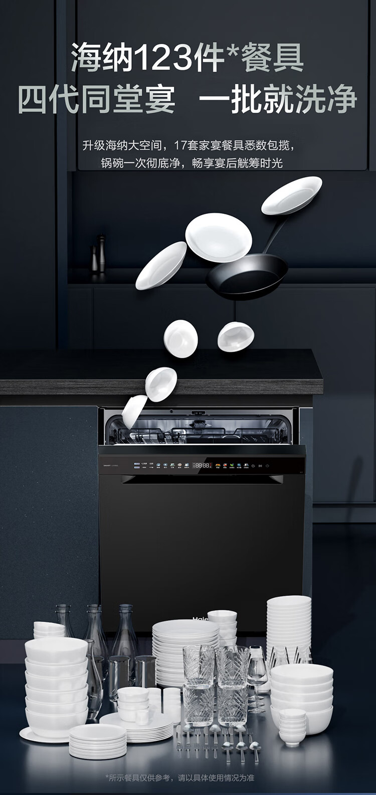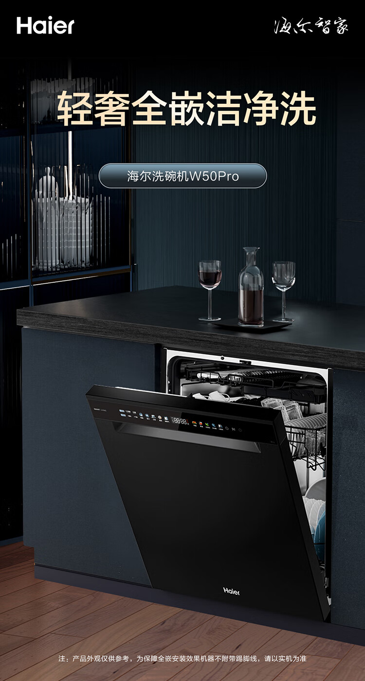 海尔洗碗机17套 W50Pro 双面洗科技2.0 高温UV杀菌 450000pa水压