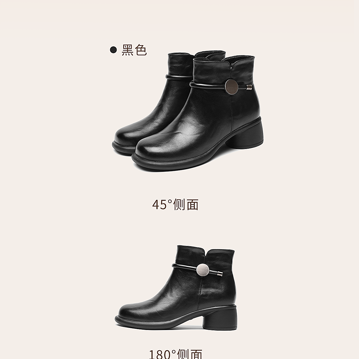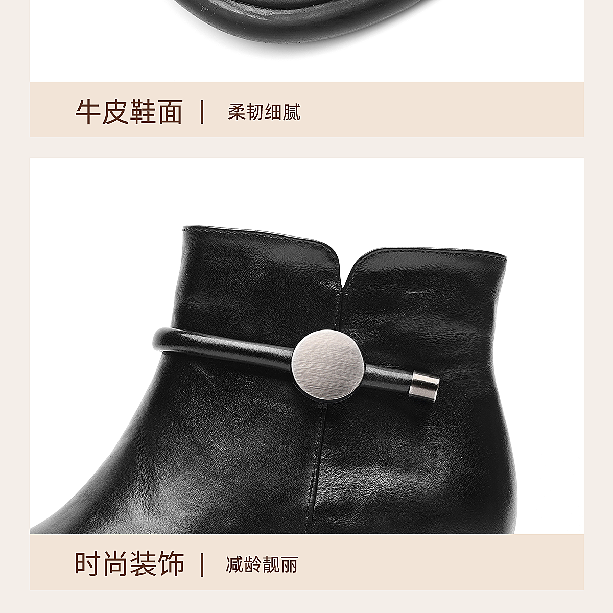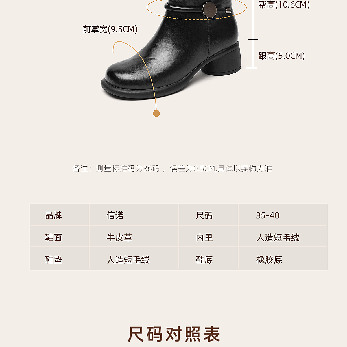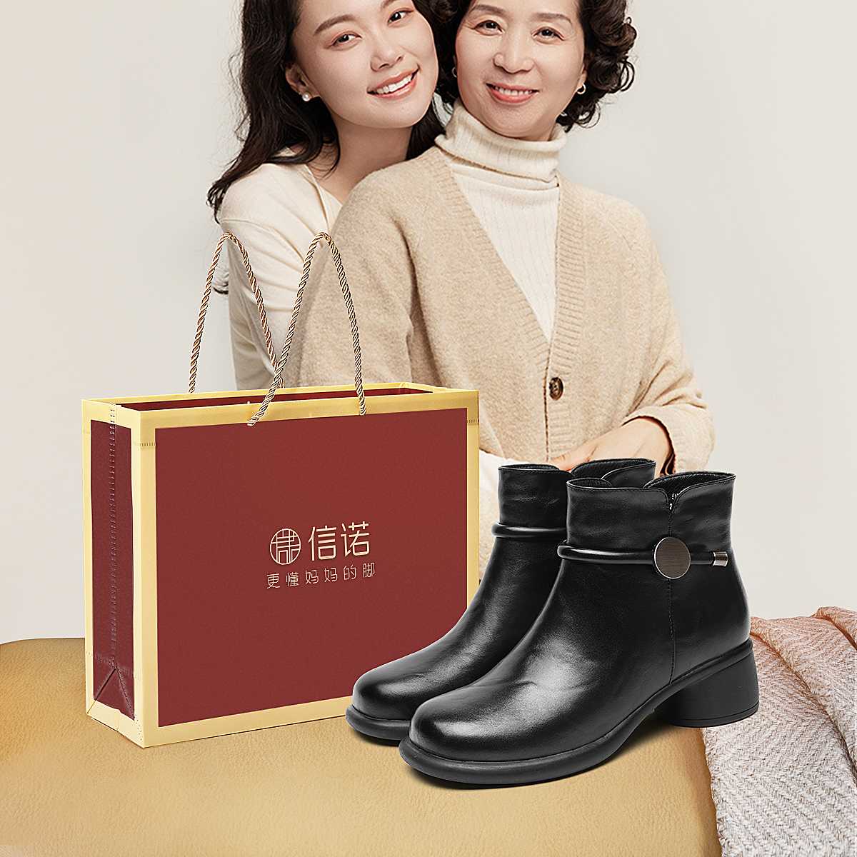 信诺真皮妈妈鞋时尚百搭粗跟短靴加绒保暖中年皮鞋女2025冬季新款5M255-1D