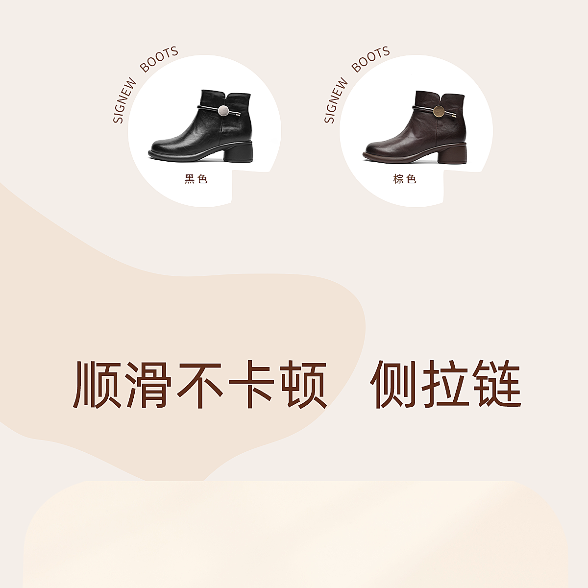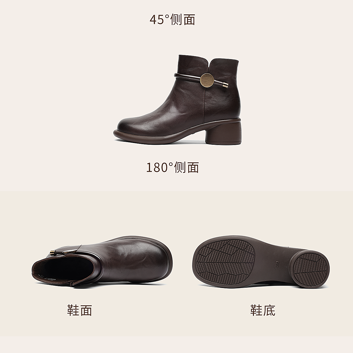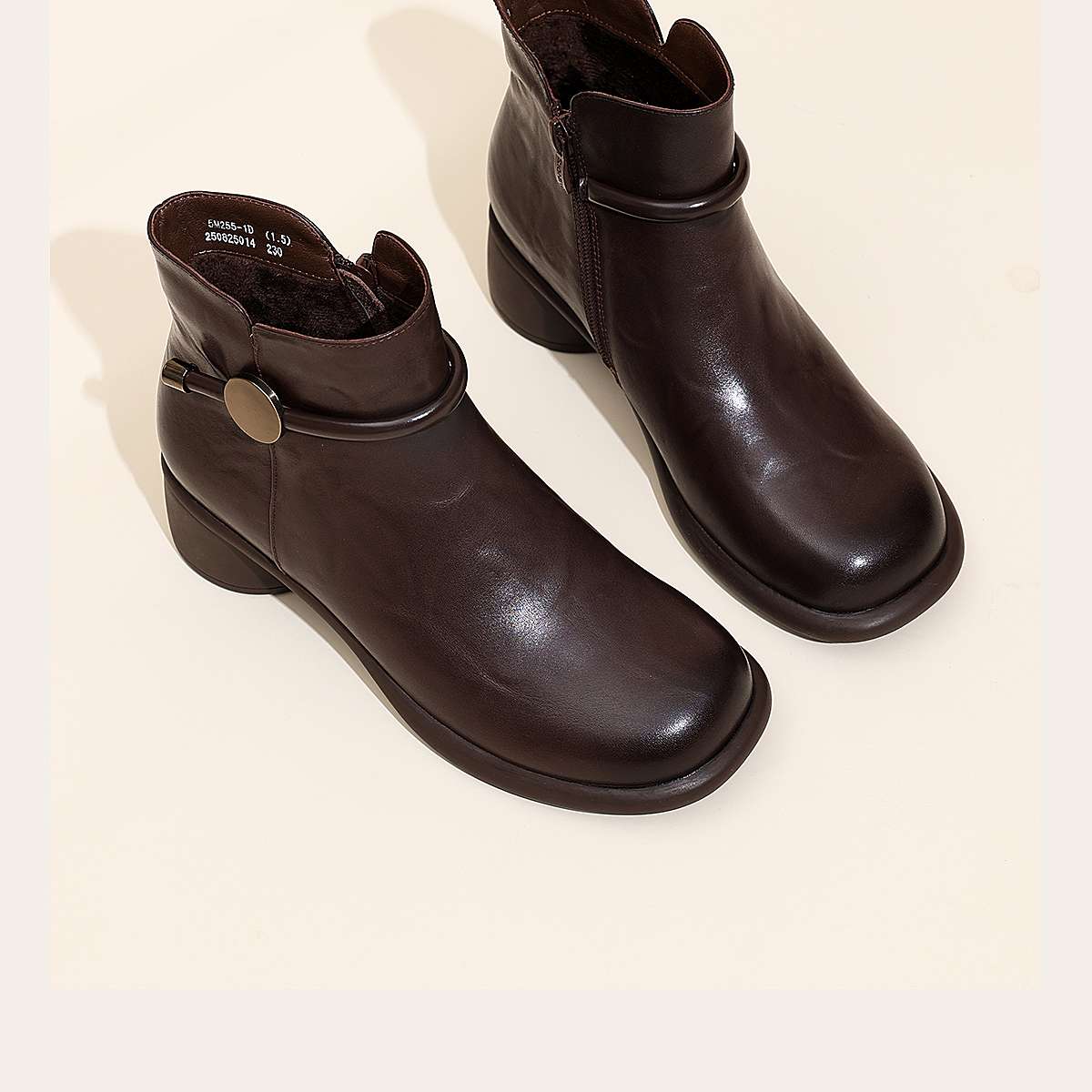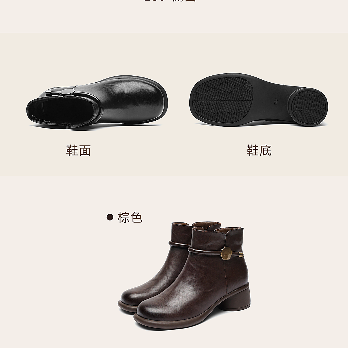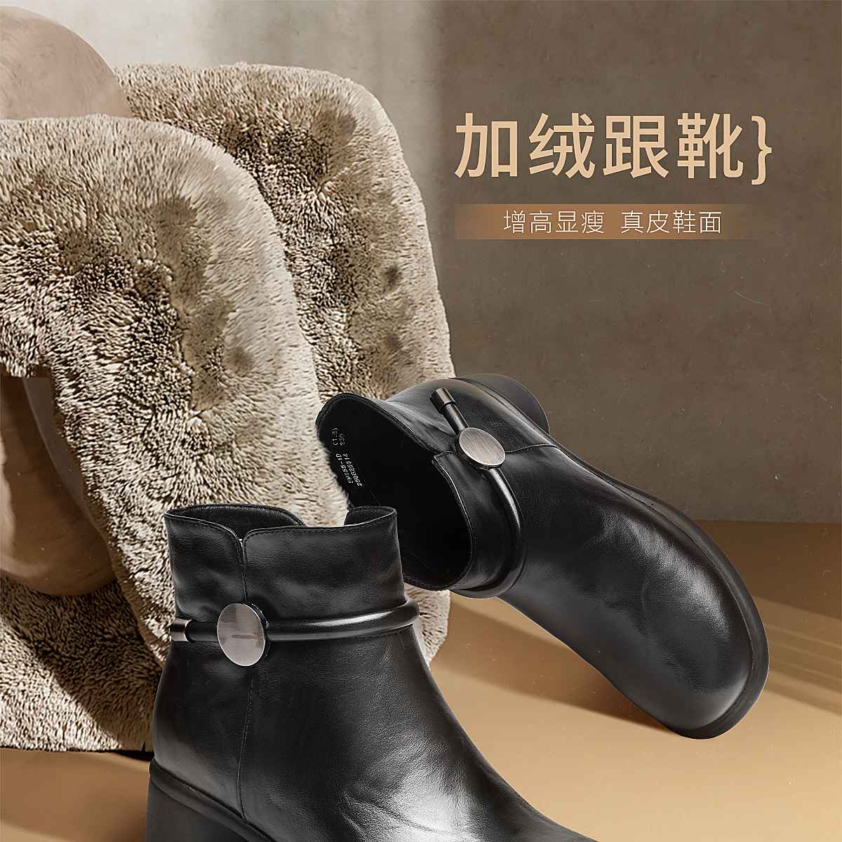 信诺真皮妈妈鞋时尚百搭粗跟短靴加绒保暖中年皮鞋女2025冬季新款5M255-1D