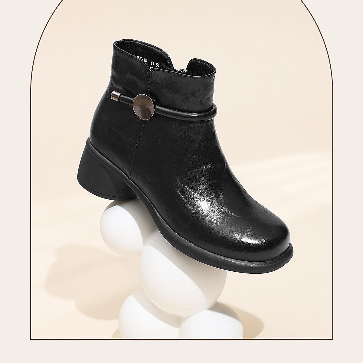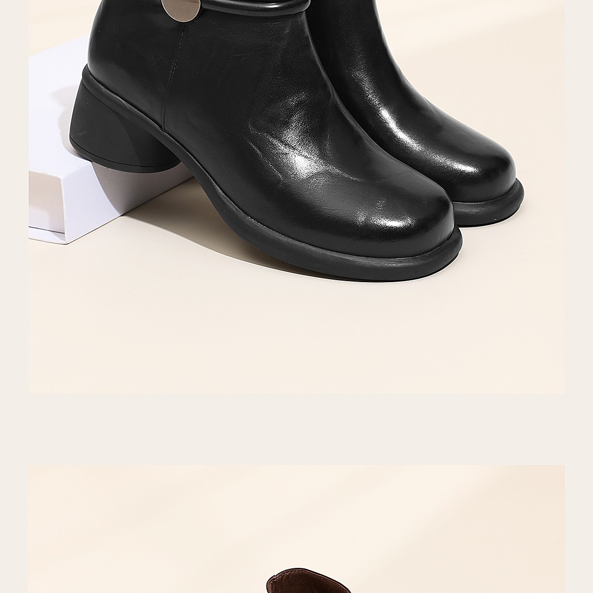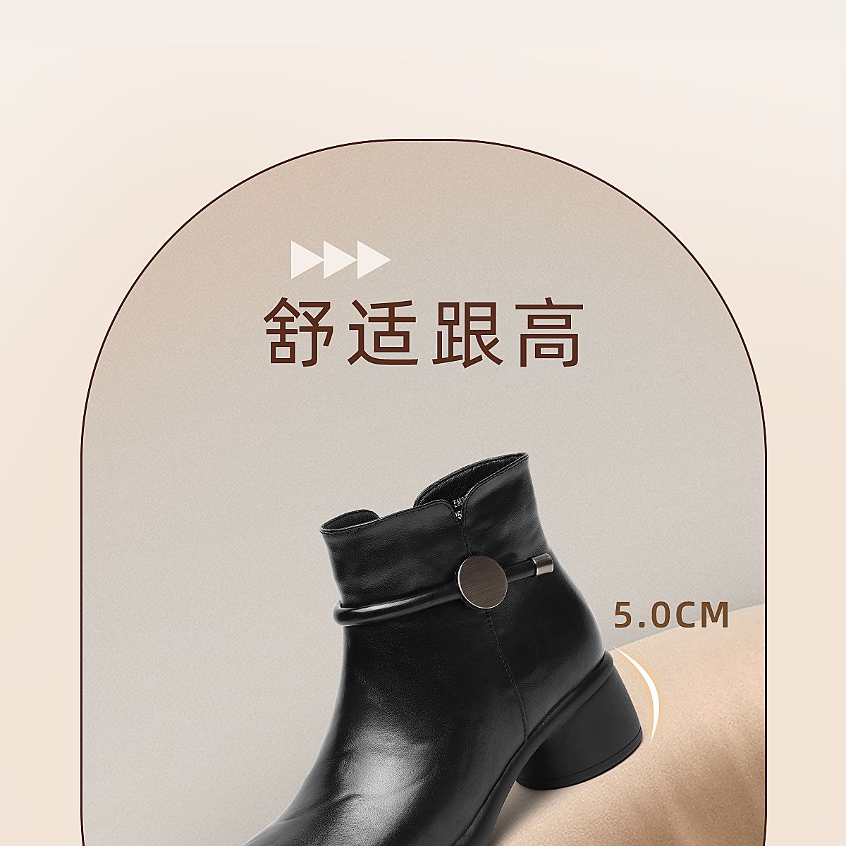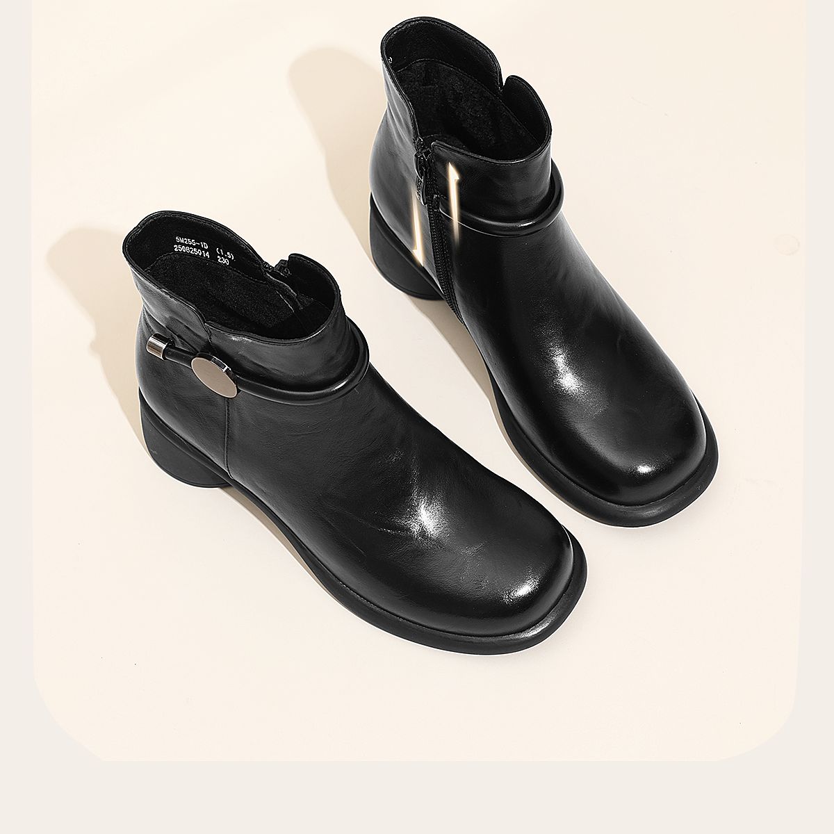 信诺真皮妈妈鞋时尚百搭粗跟短靴加绒保暖中年皮鞋女2025冬季新款5M255-1D