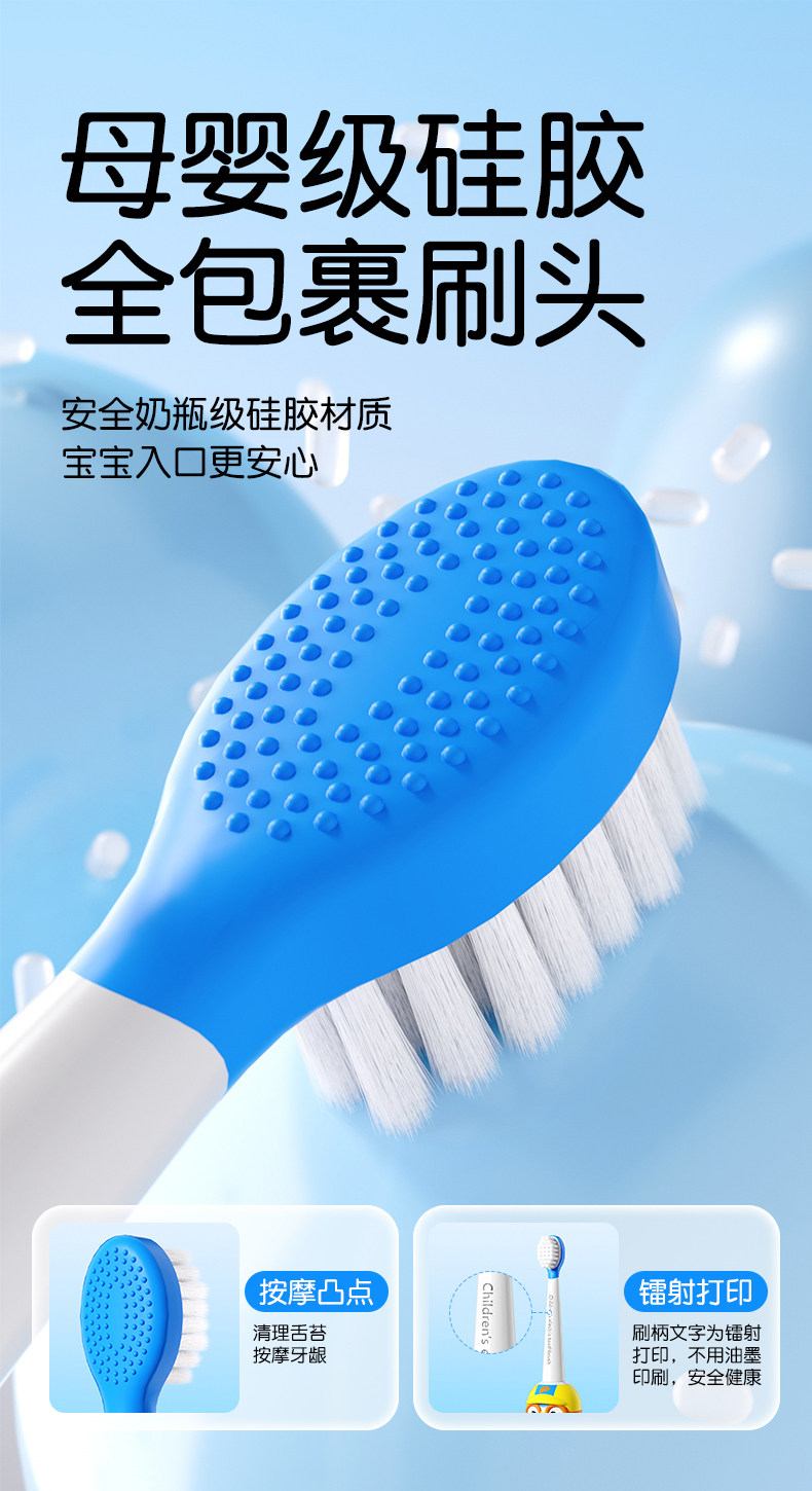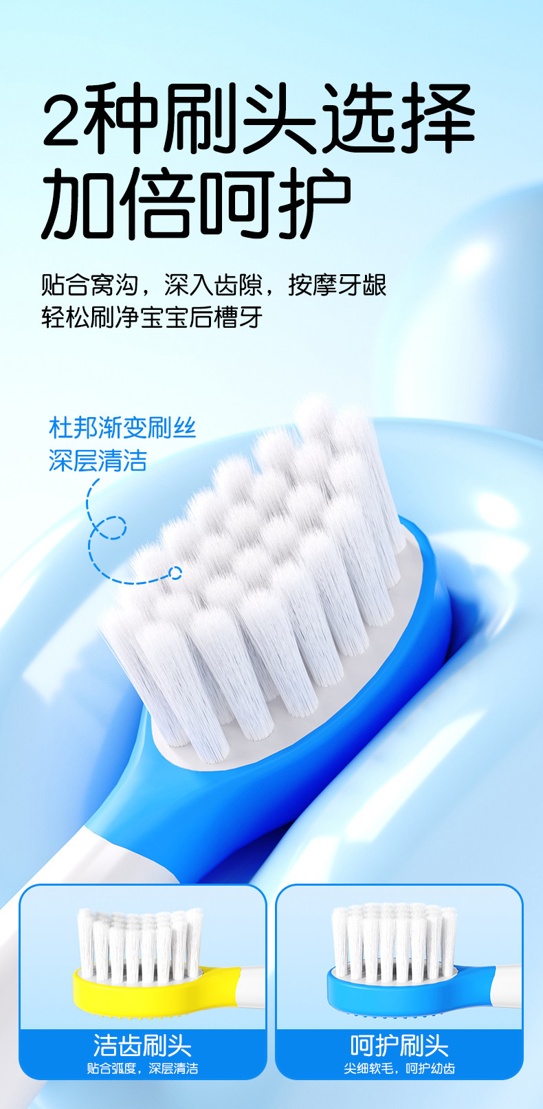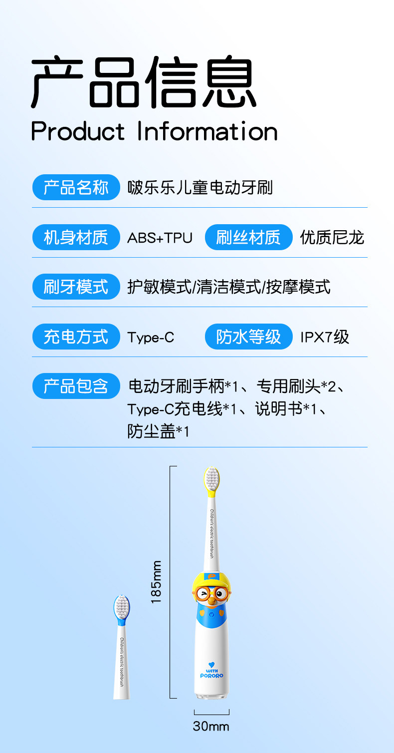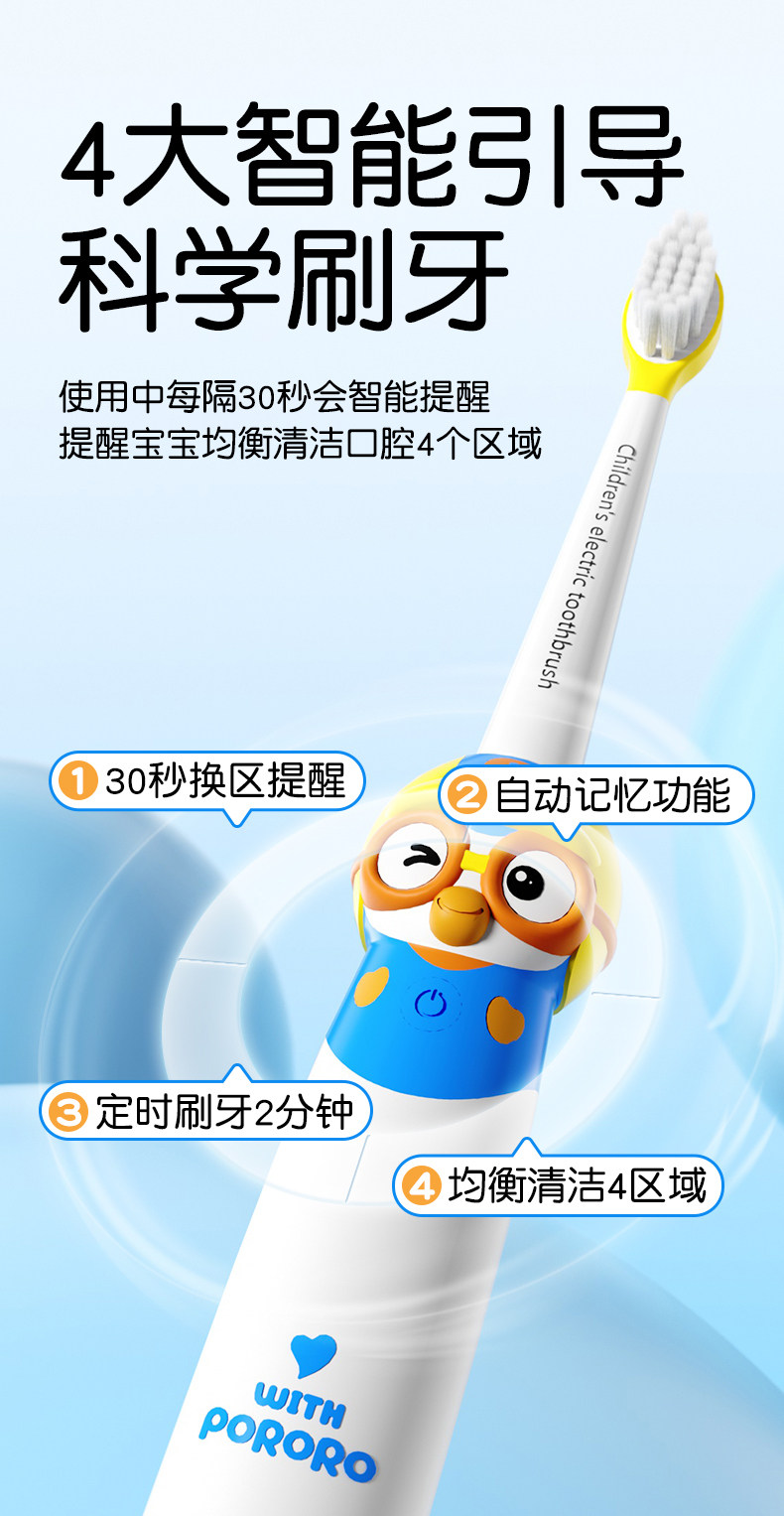 新款!【适合3-12岁儿童充1次电可连用21天】韩国啵乐乐PORORO儿童电动牙刷卡通形象可充电长待机防水替换刷头
