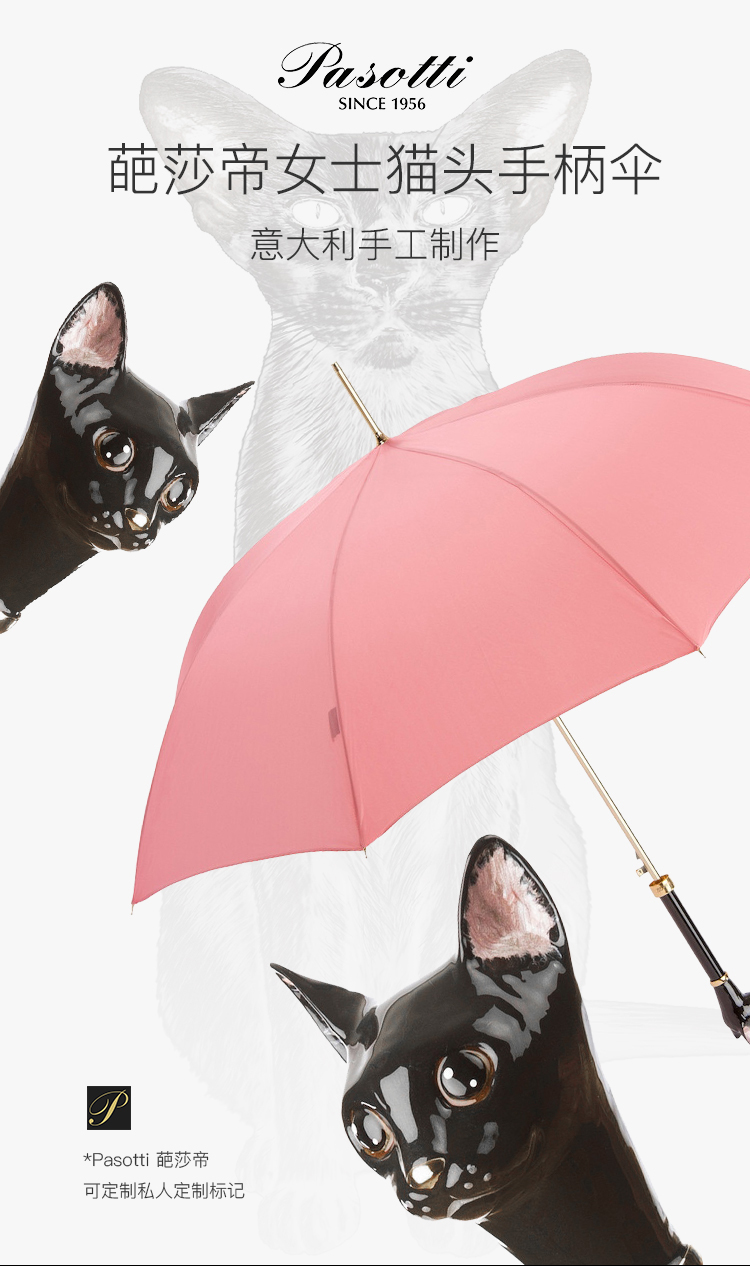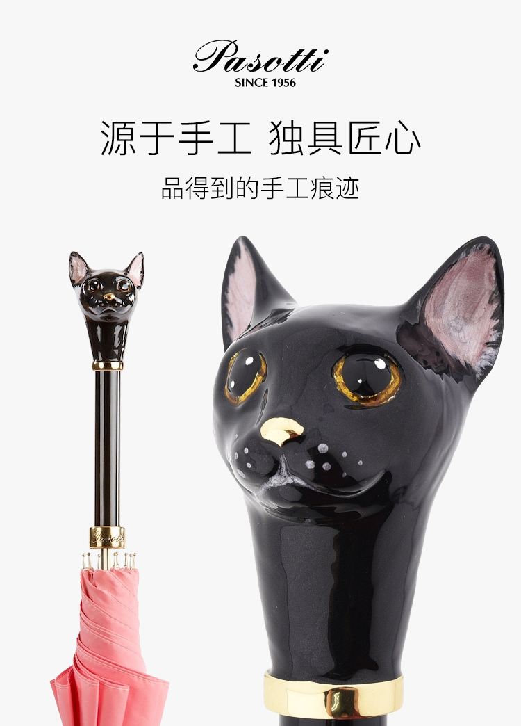 PASOTTI 意大利粉色单层伞珐琅彩绘猫咪手柄防晒折叠伞晴雨两用伞 WLX44