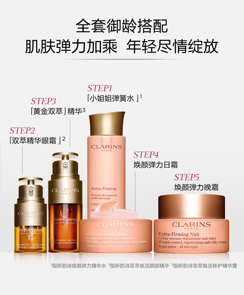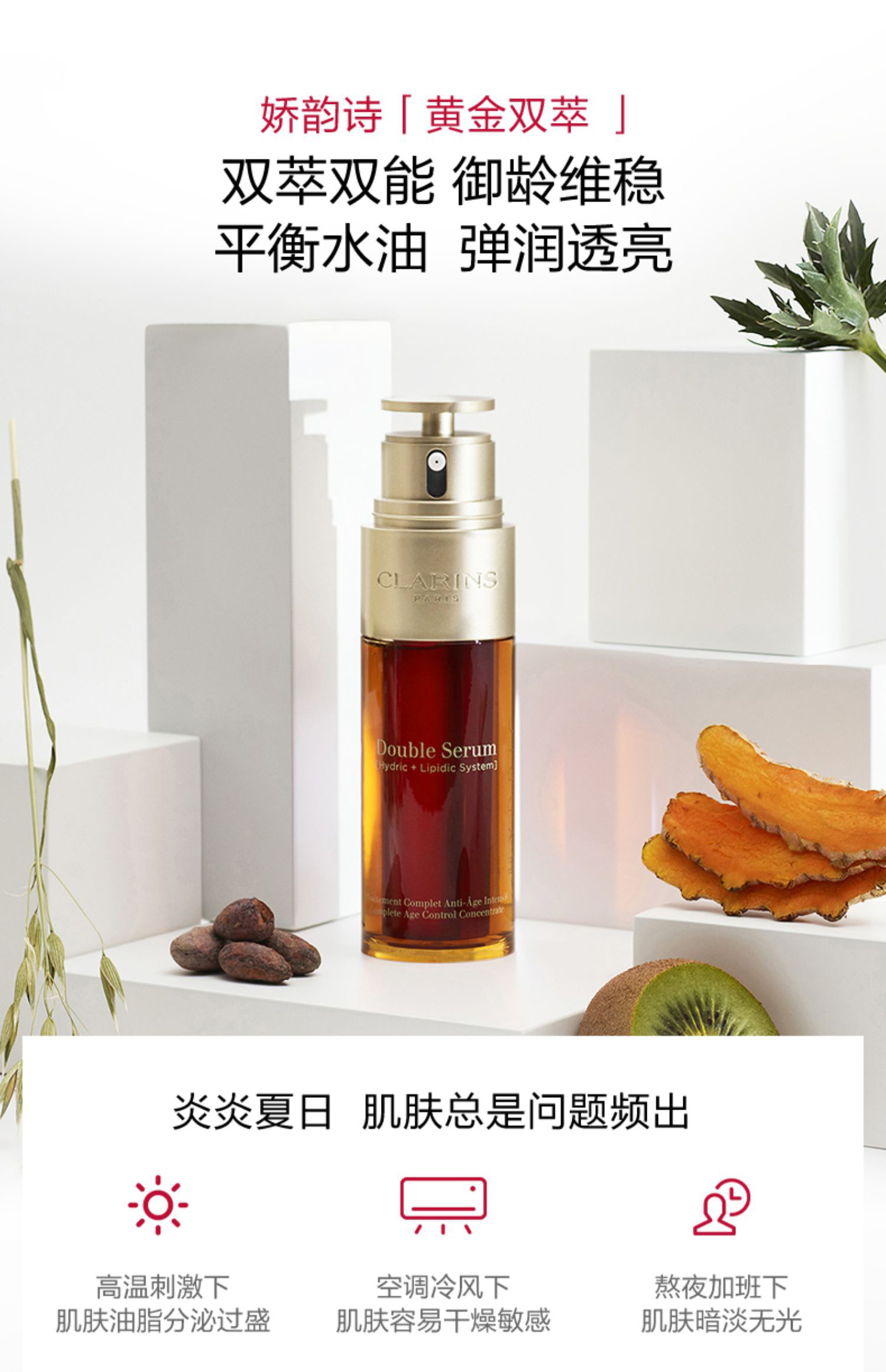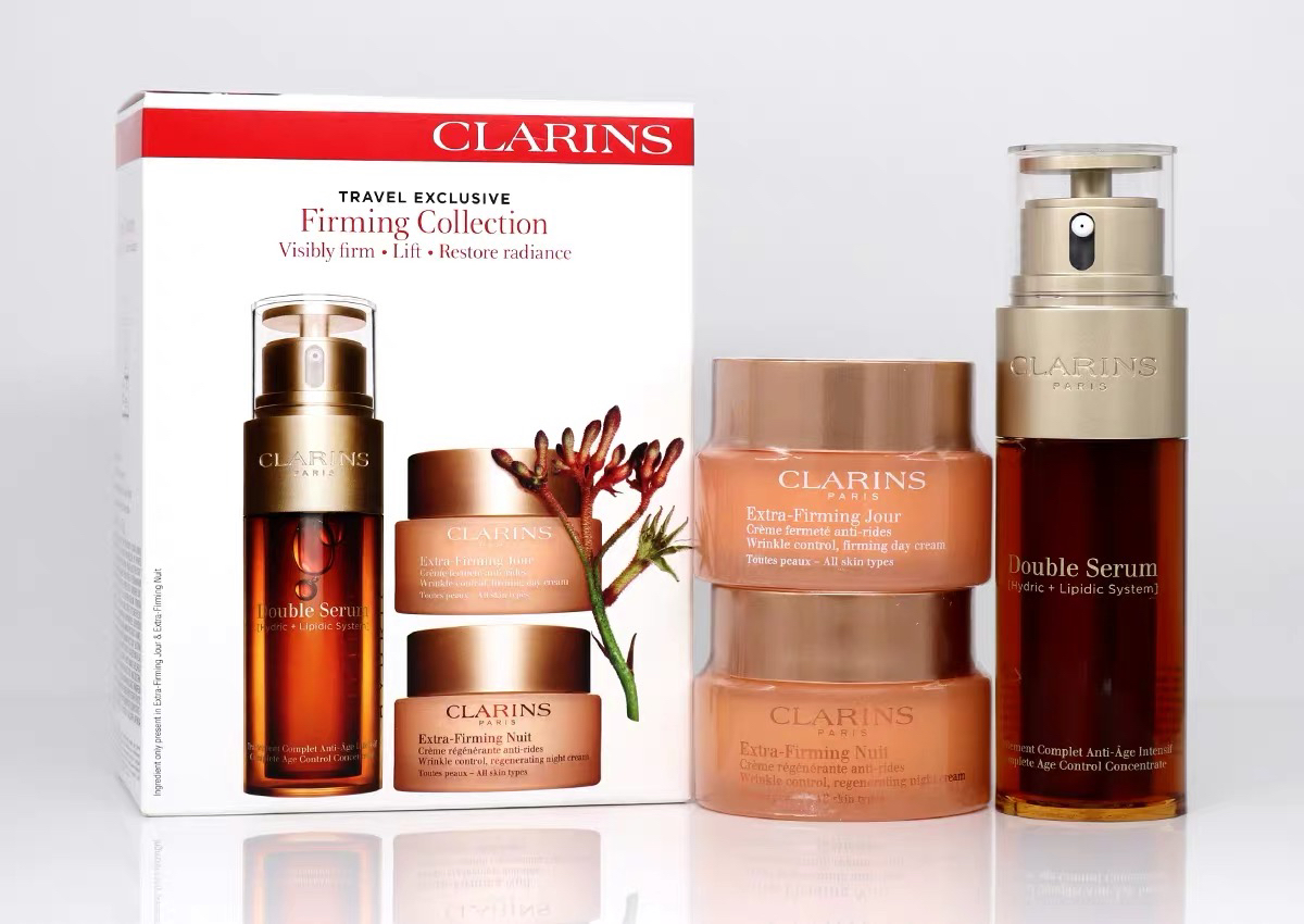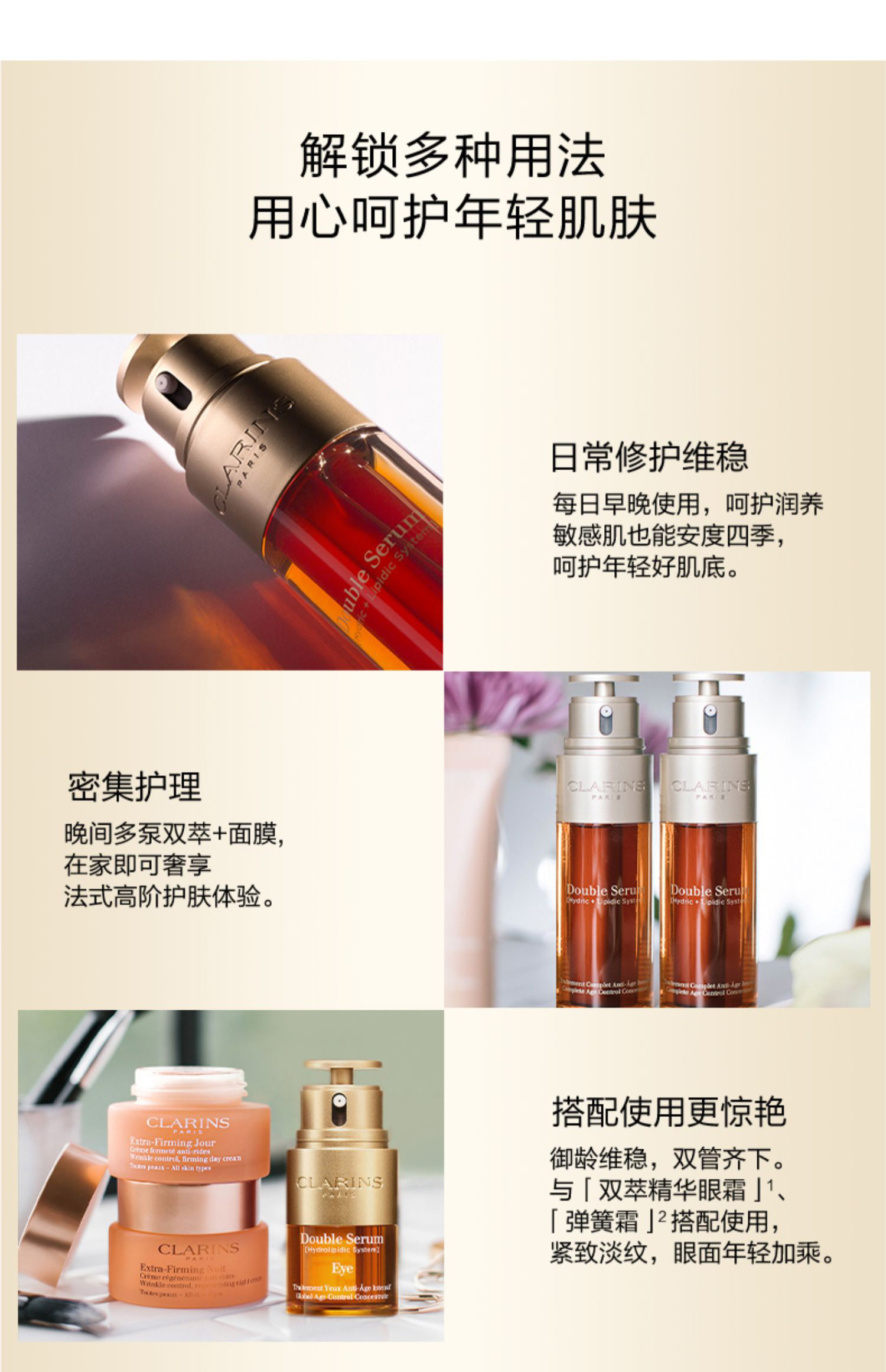法国 Clarins娇韵诗 双萃精华弹簧3件套 套装 (双萃精华50ml+弹簧日霜50ml+晚霜50ml)
